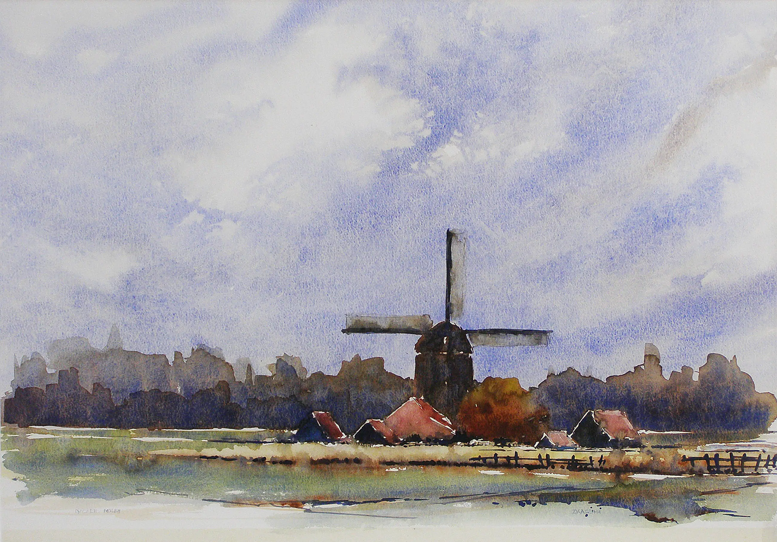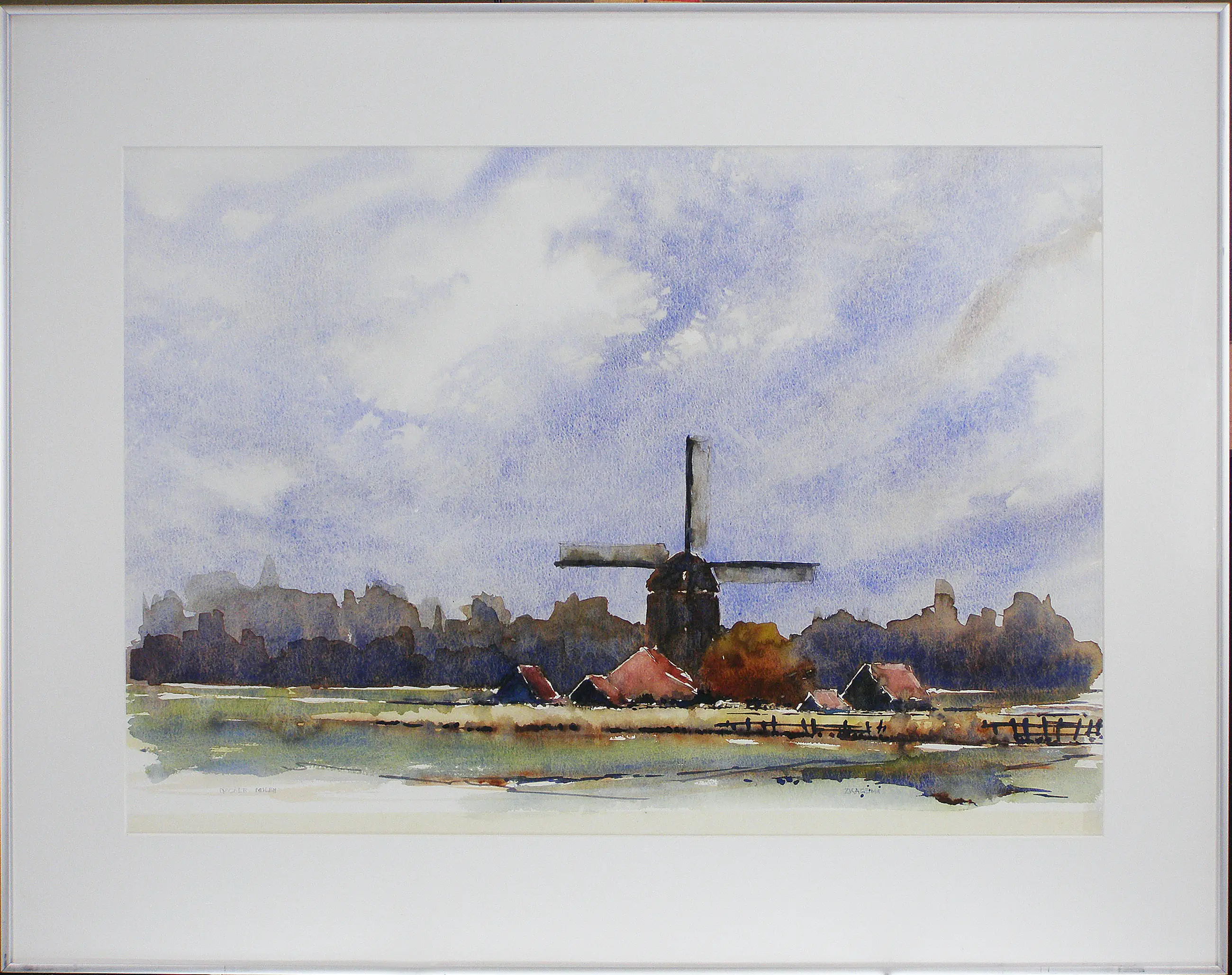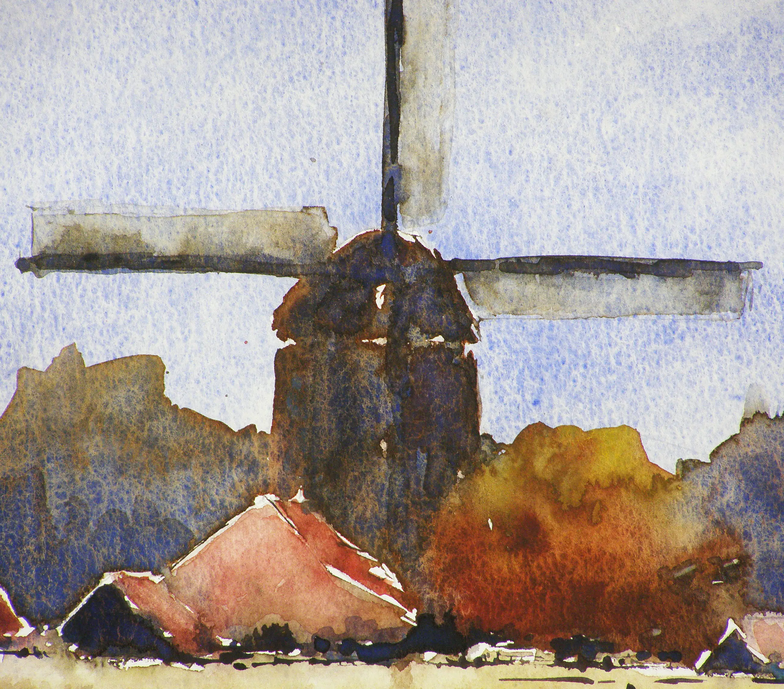 Sfeervolle aquarel van een beroemd plekje ten noorden van de Zaanstreek