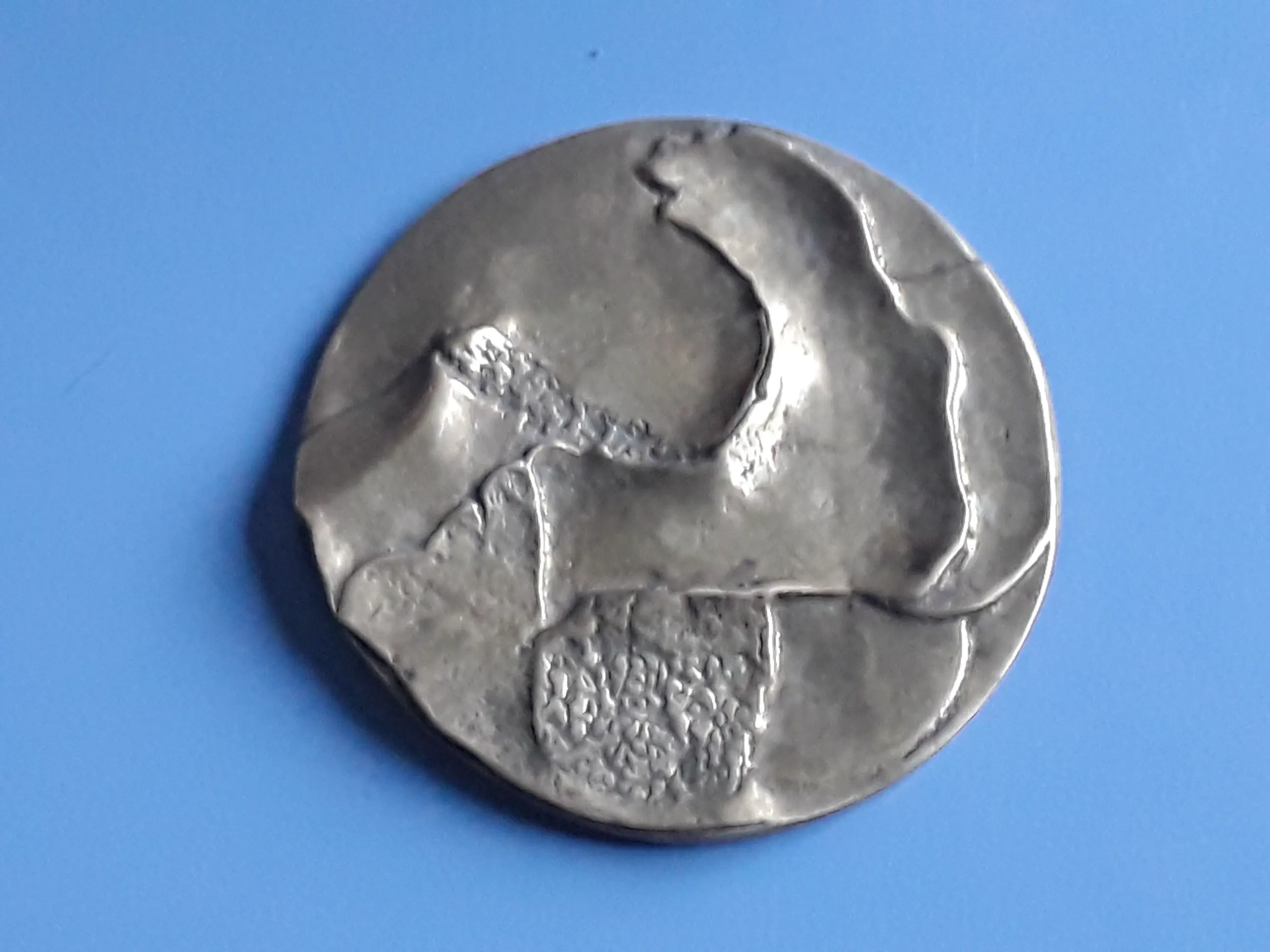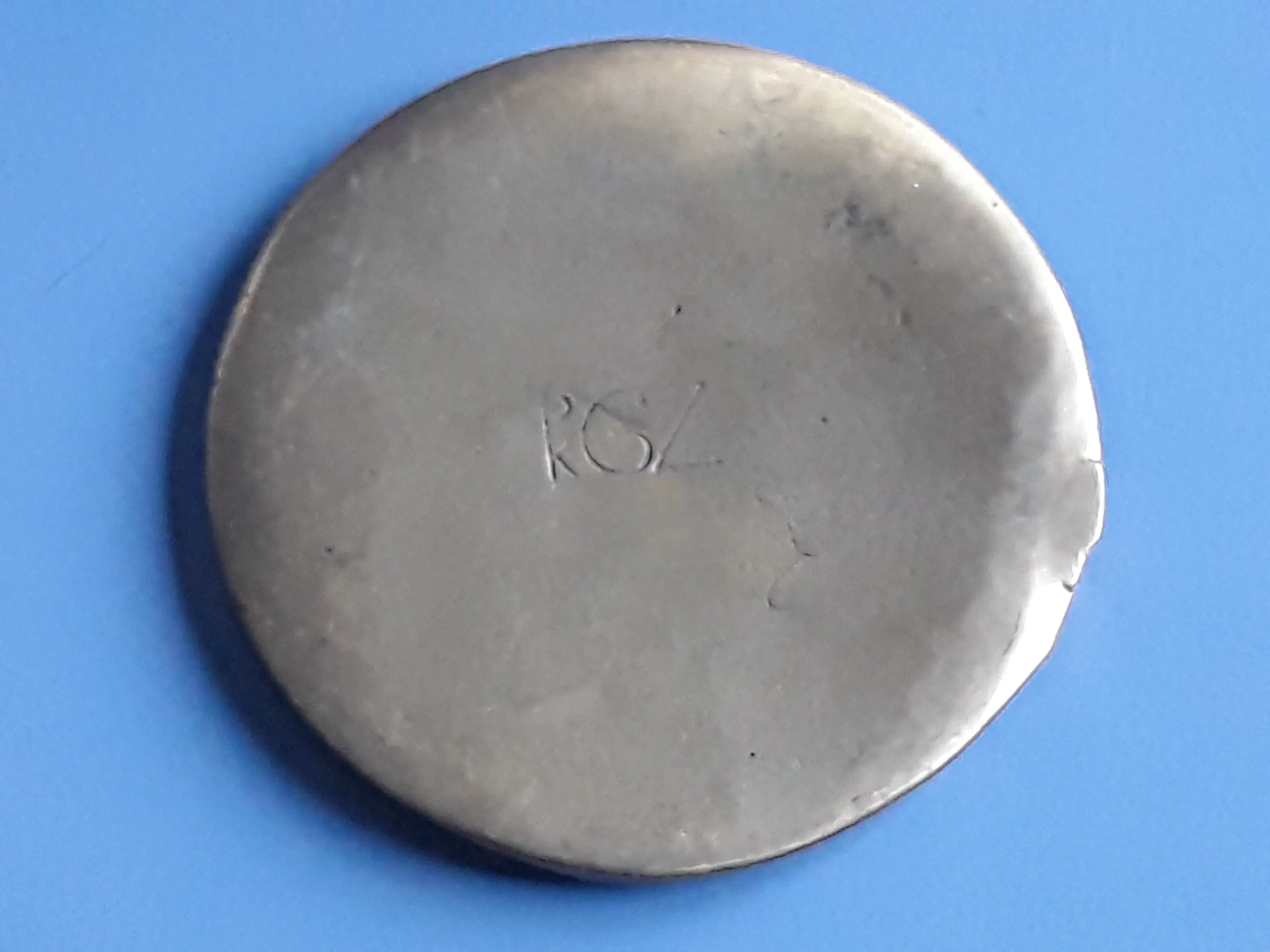 uit tot navoelen. De penning is niet helemaal rond: een klein uitsteeksel