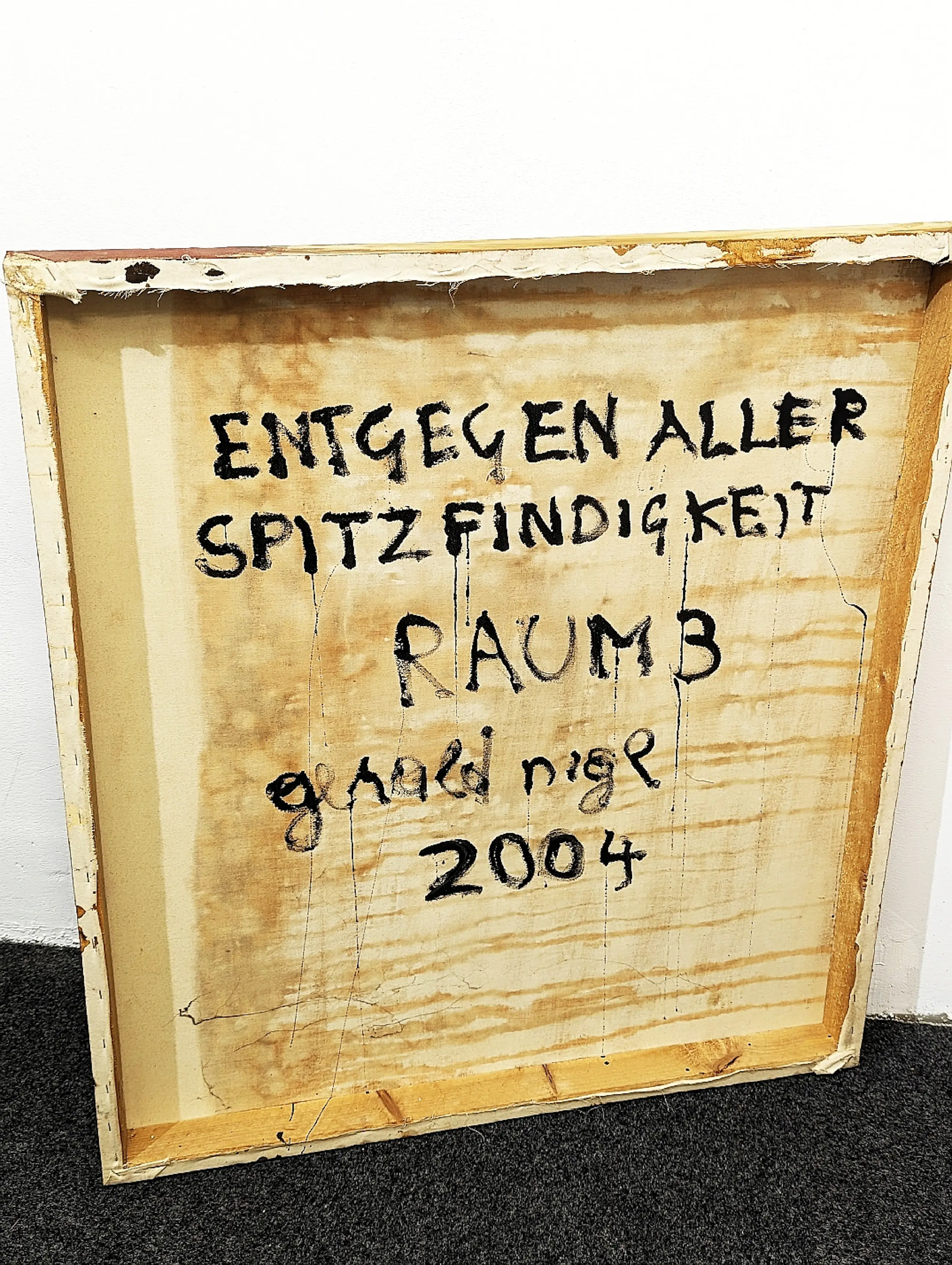 Gerald Nigl - "In tegenstelling tot alle drogredenen" Te koop een prachtig olieverfschilderij van de kunstenaar Gerald Nigl. Uniek stuk van de kunstenaar uit 2004