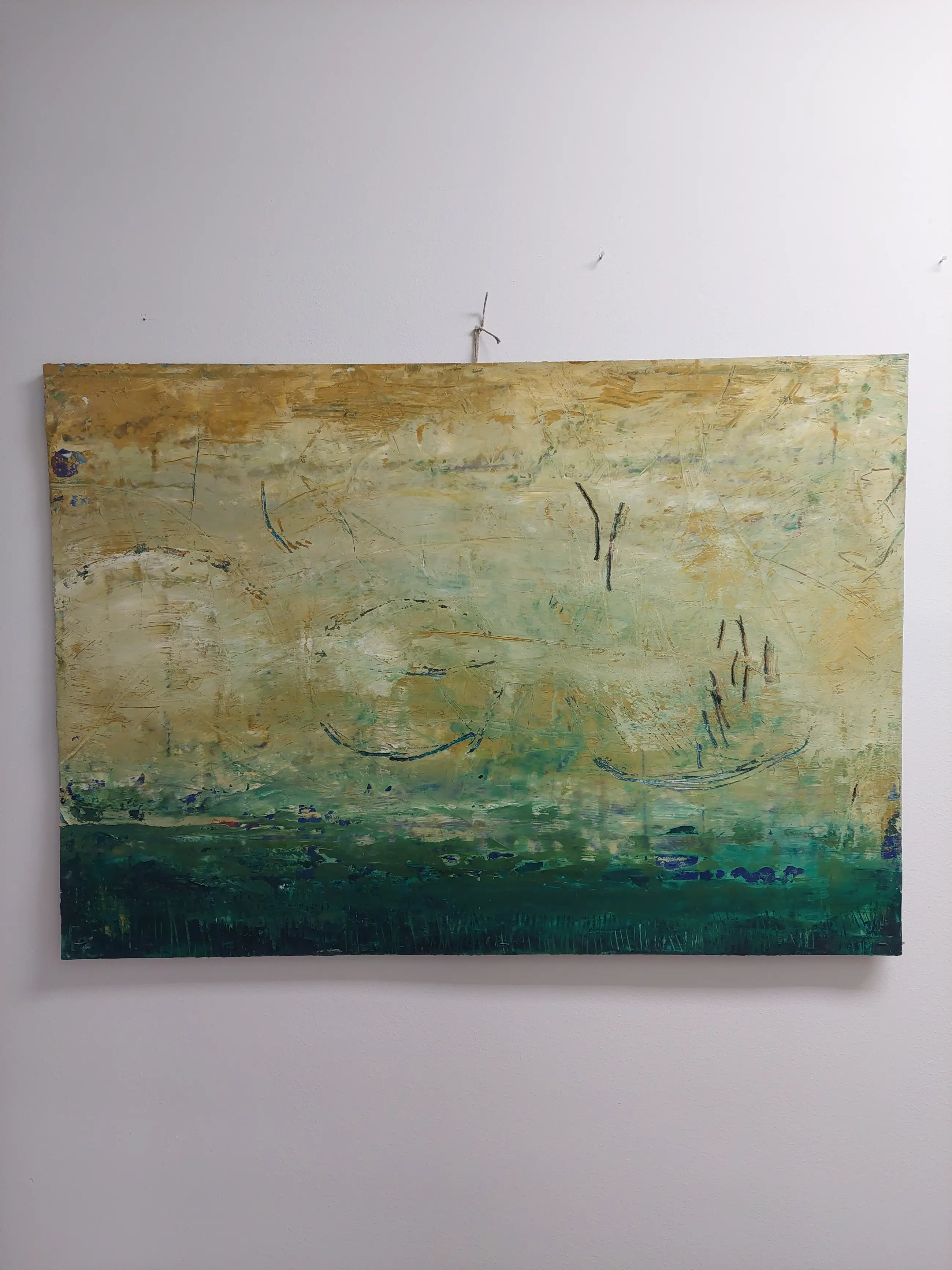 Olieverf op karton en hardboard Breedte: 100 cm Hoogte: 70cm Gesigneerd en gedateerd