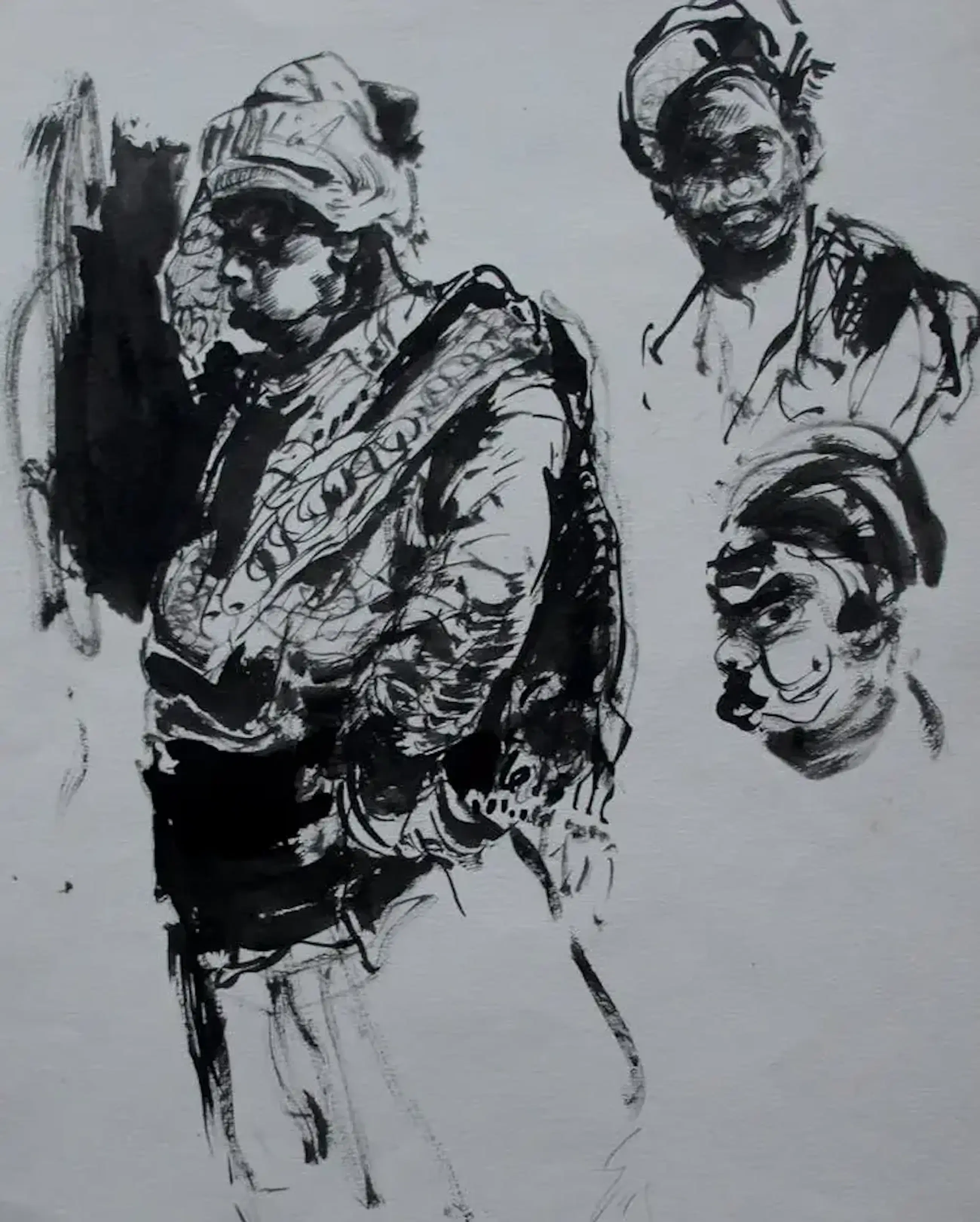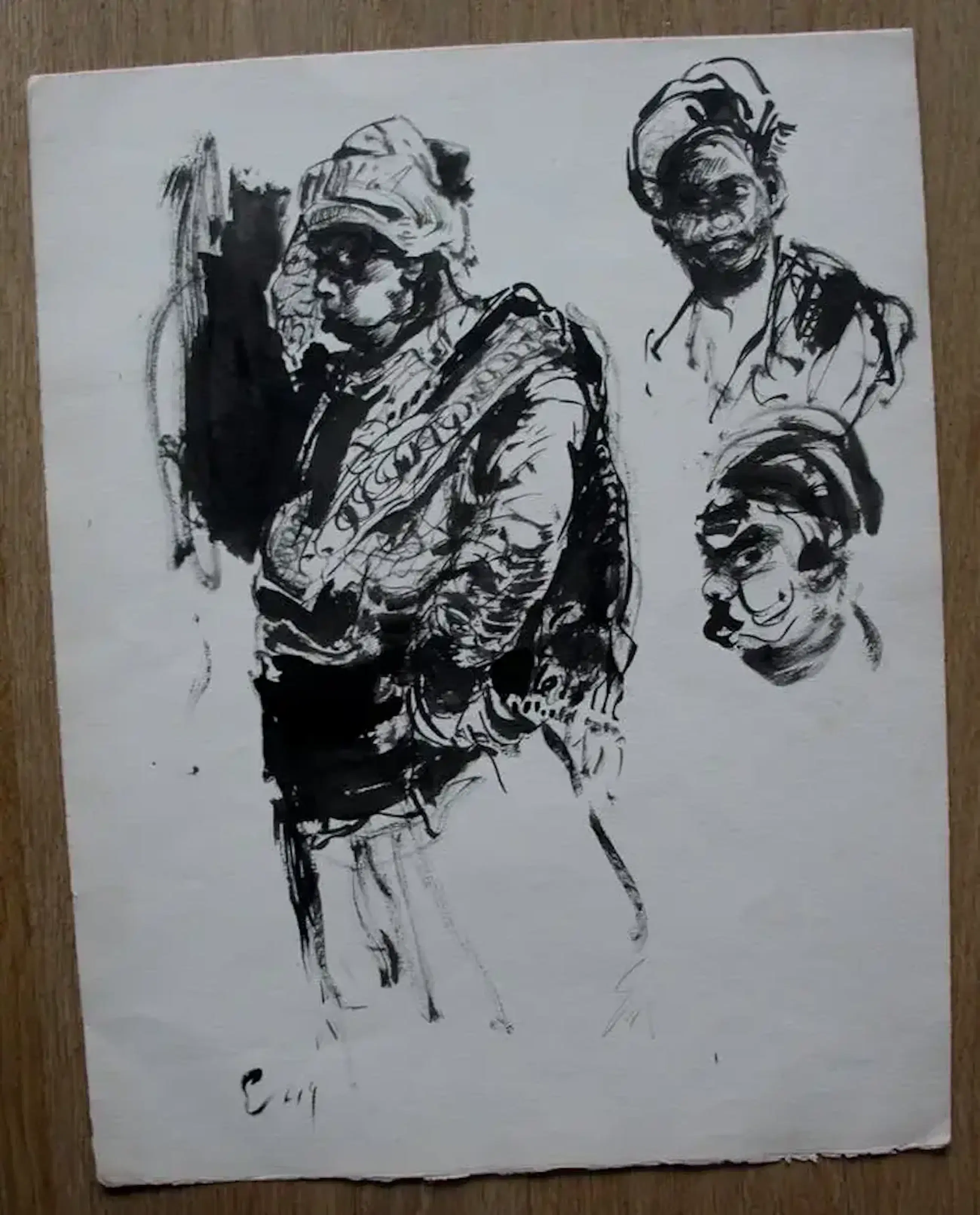 Inkttekeningen op papier van Gerard Adolfs. "Figuren". Afmetingen blad: H32 x b25cm. Het werk is onderaan gesigneerd, met een initiaal, door de kunstenaar. De authenticiteit van het aangeboden werk wordt volledig gegarandeerd. Een certificaat van echtheid kan, op aanvraag, worden gemaild.
