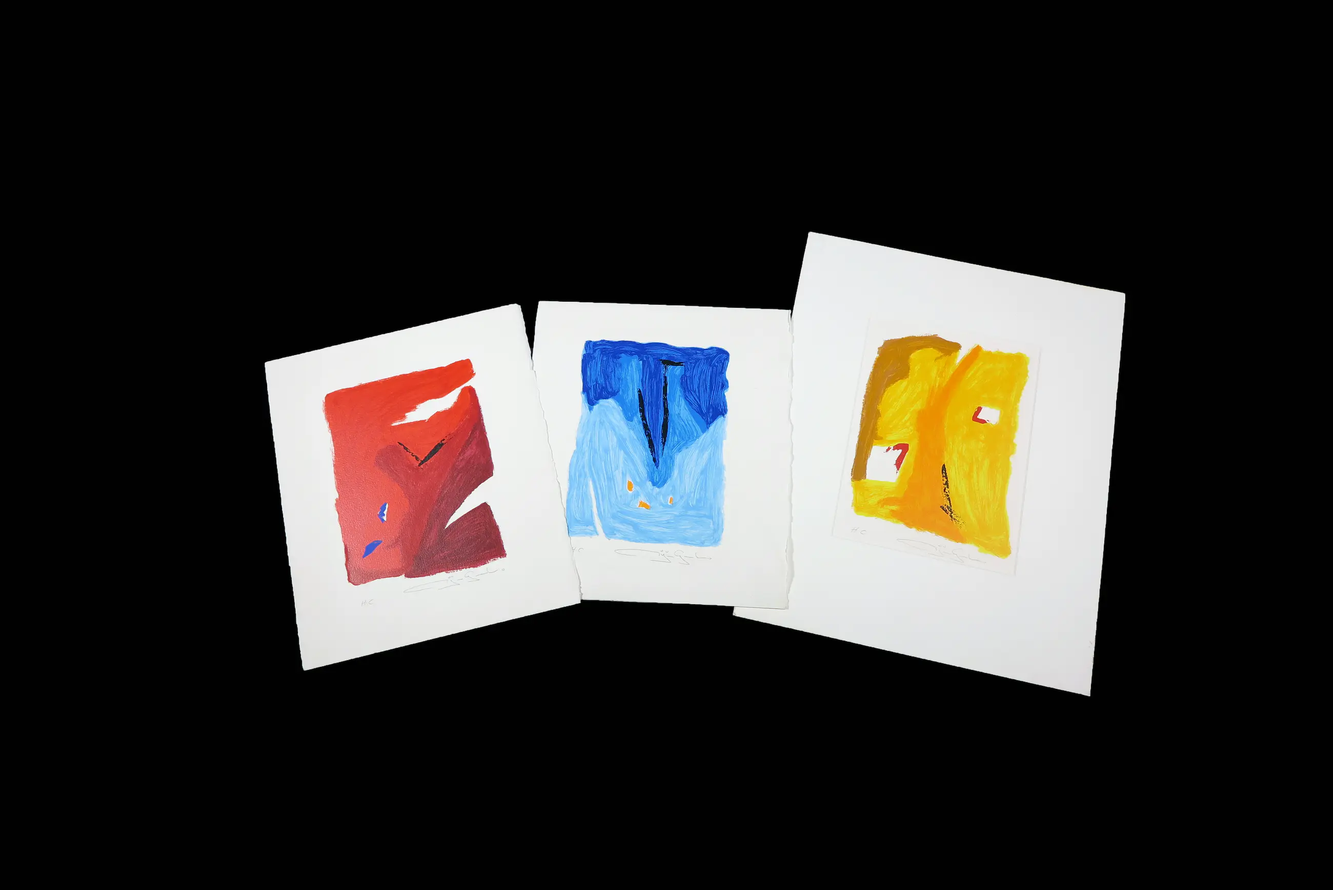 | De werken zonder PAsse-partout hebben wat lichte papierschade in het witte raster, als resultaat van een verwijderd Passe-partout. Het werk met Passe-partout is daar wat licht vuil. | |||||||||||