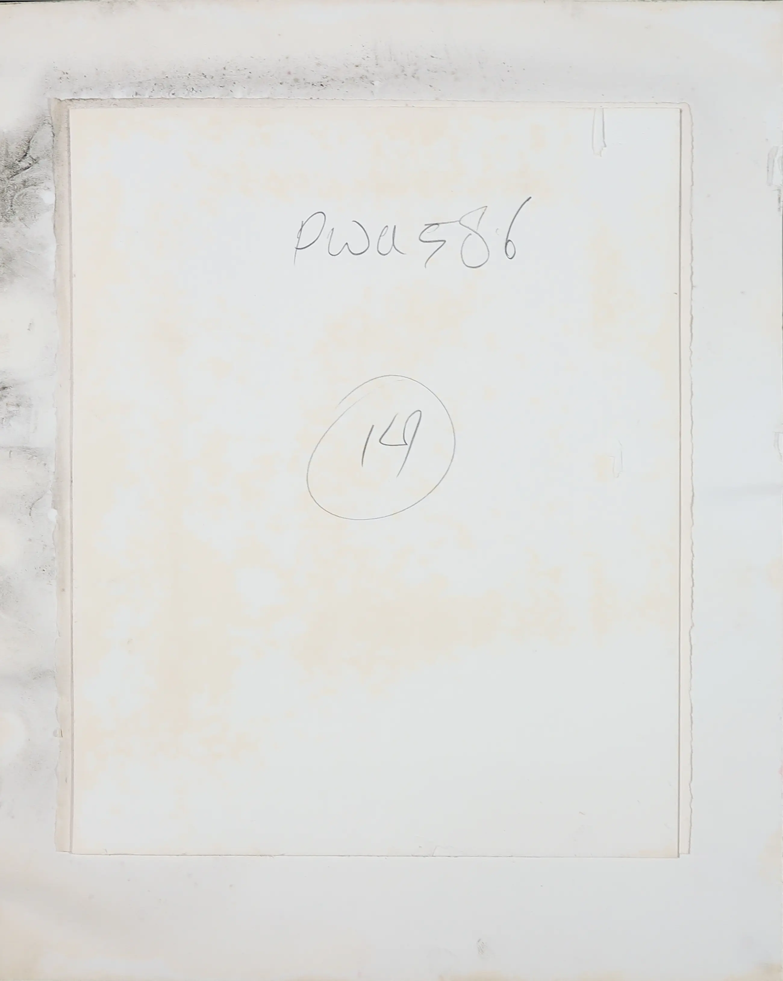 | Het werk zelf is in goede staat, alleen bobbelt het papier aan de weerzijden van de voorstelling. Het passe-partout dient echter vervangen te worden, doordat het licht beschimmeld maar vooral vuil is. | |||||||||||