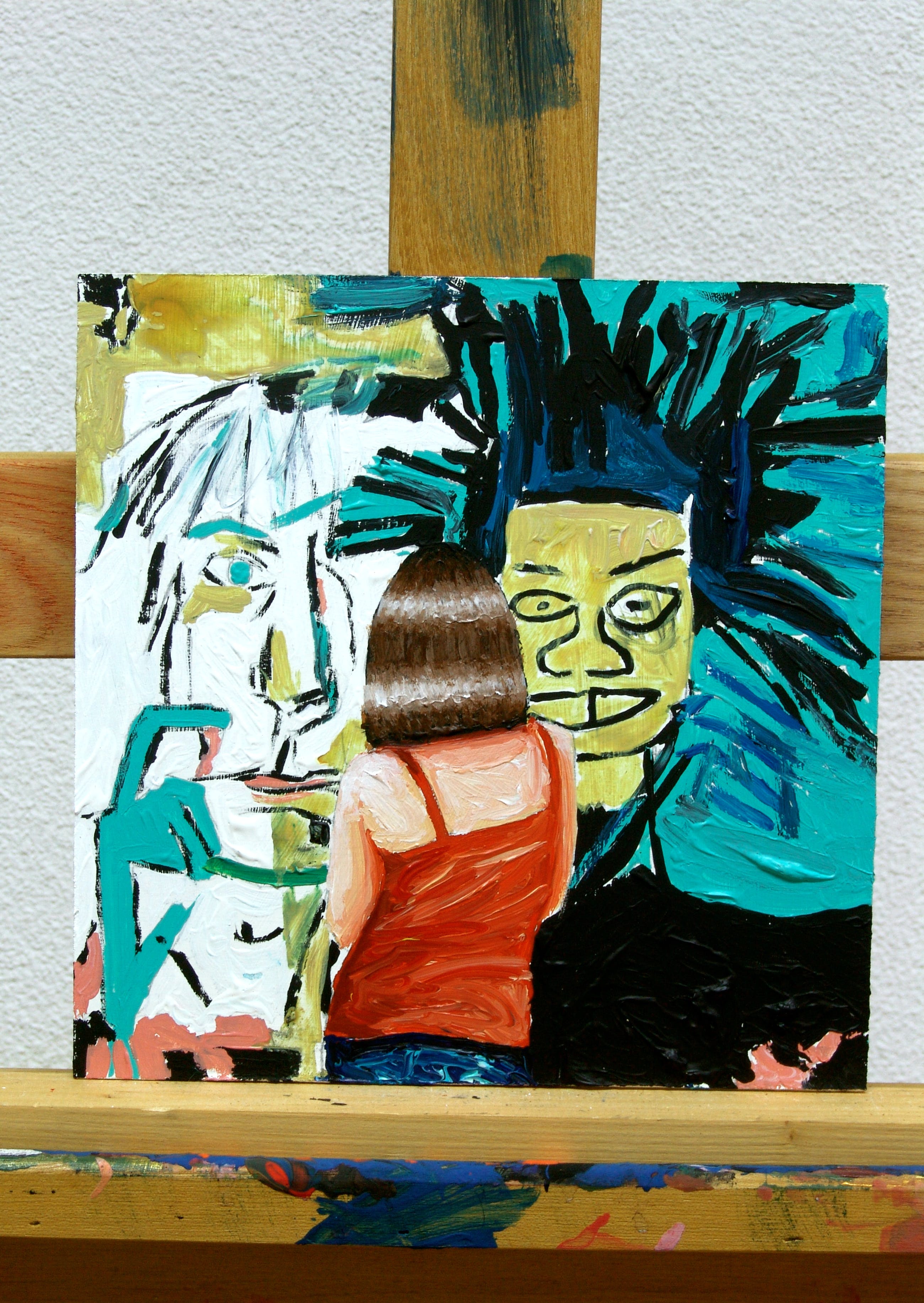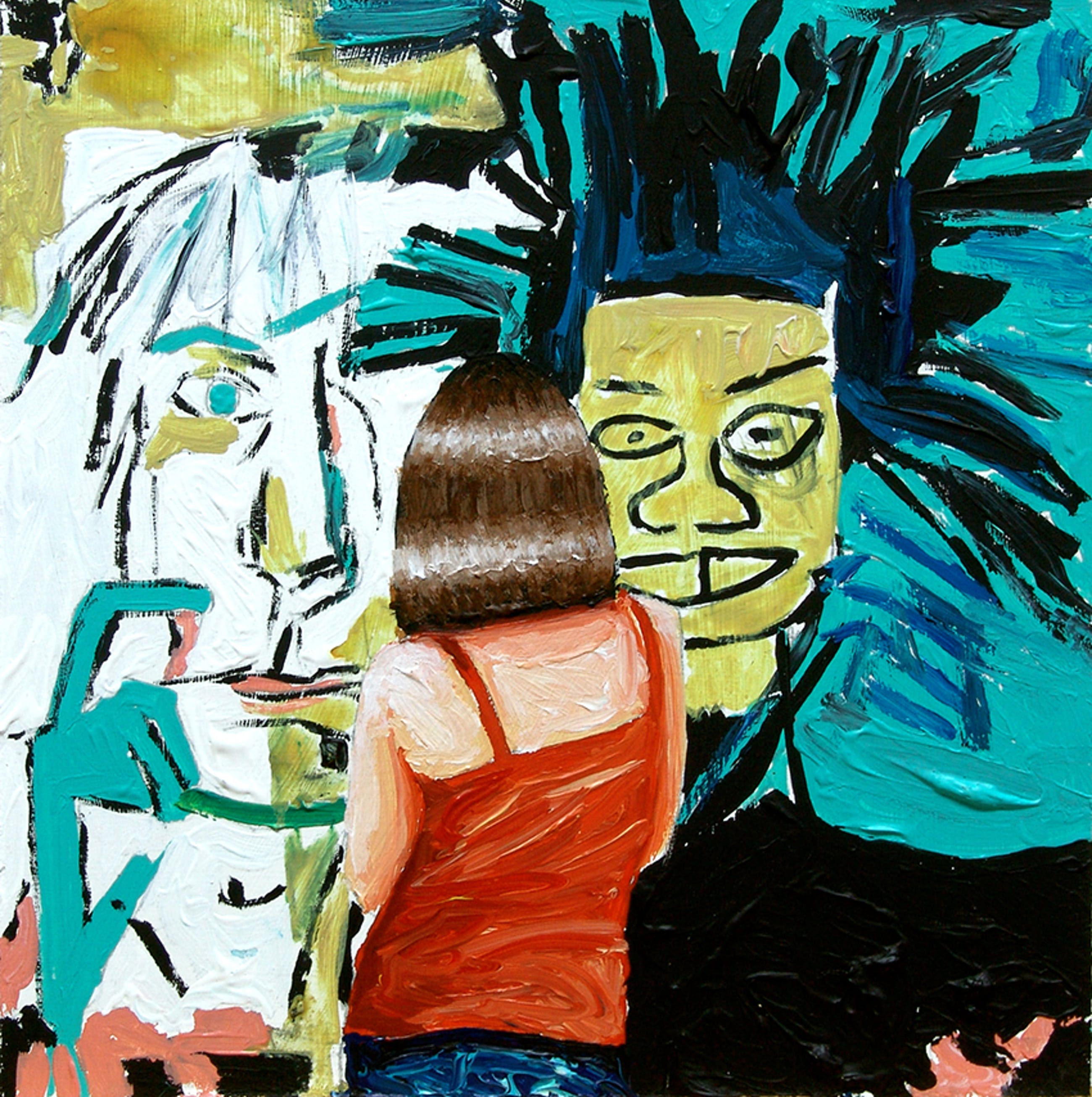 Gerard Boersma staat bekend om zijn schilderijen van mensen die naar bekende schilderijen kijken in musea. Dit werk van 20 x 20 cm toont een vrouw kijkend naar een portret van Andy Warhol en zelfportret door Jean-Michel Basquiat. Het werk dateert uit 2020 en is gemaakt met acryl op masonite. Gesigneerd op achterkant. Het schilderij is voorzien van een label van de kunstenaar en wordt geleverd met certificaat van echtheid.