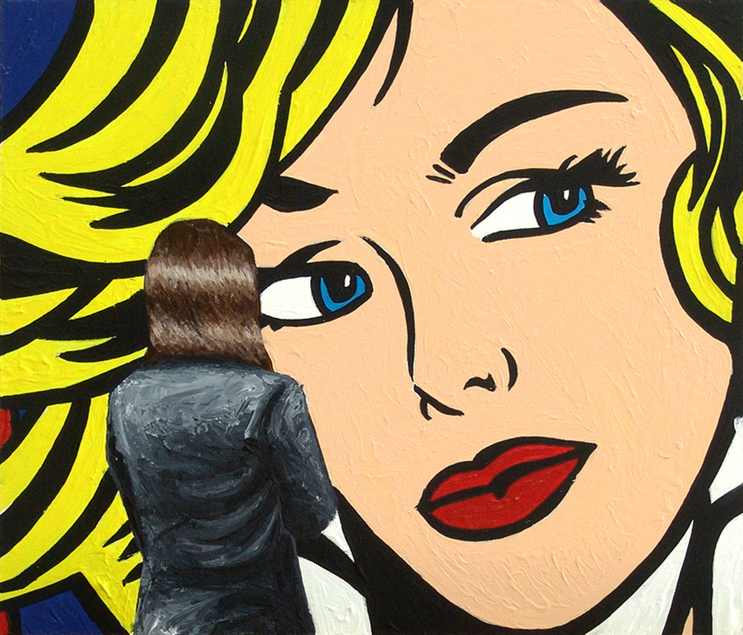 Gerard Boersma staat bekend om zijn schilderijen van mensen die naar bekende schilderijen kijken in musea. Dit werk van 25 x 20,5 cm toont een vrouw kijkend naar een schilderij van Roy Lichtenstein. Het werk dateert uit 2021 en is gemaakt met acryl op mdf. Gesigneerd op achterkant. Het schilderij is voorzien van een label van de kunstenaar en wordt geleverd met certificaat van echtheid.