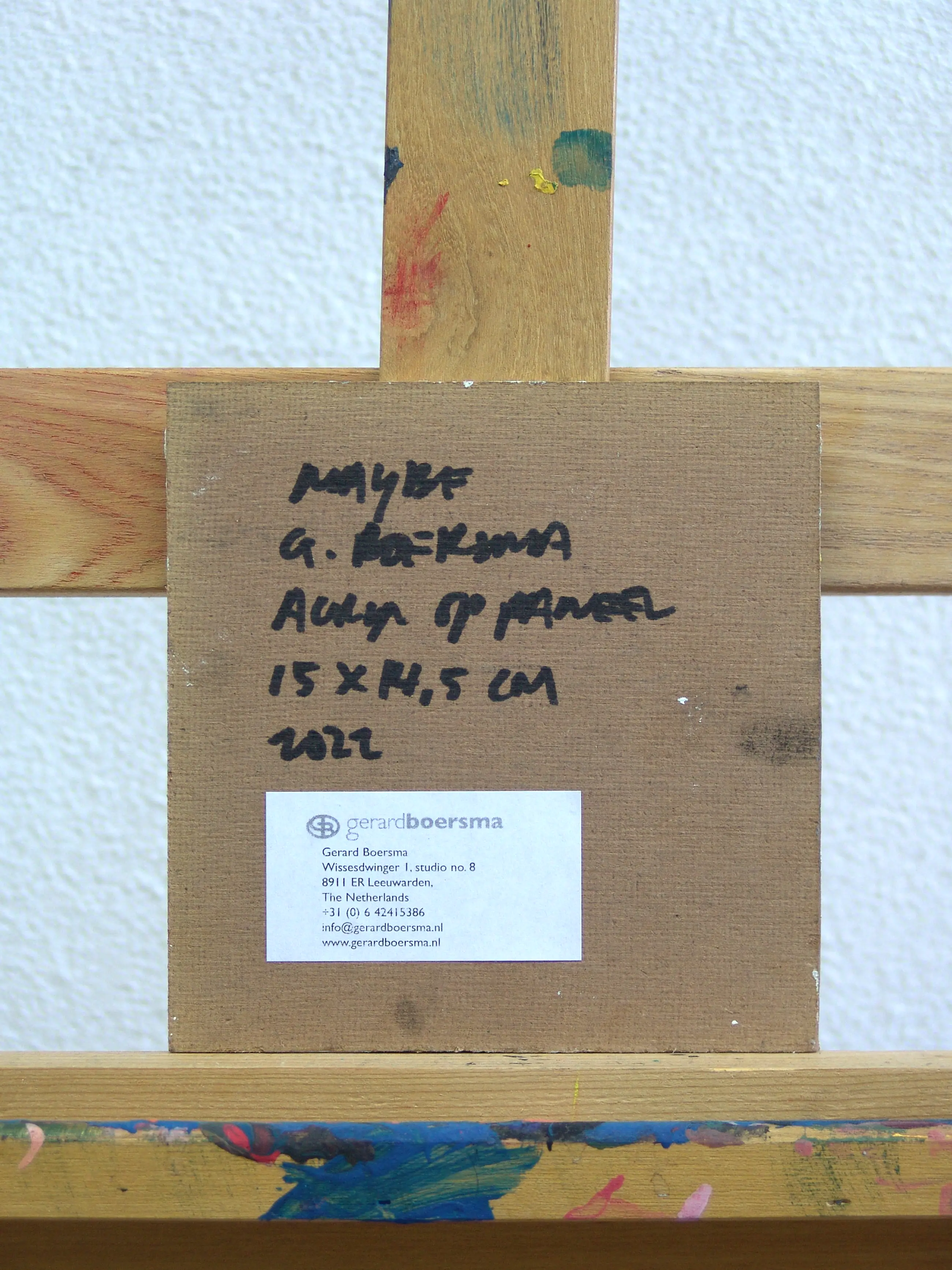 Het werk dateert uit 2022 en is gemaakt met acryl op paneel (masonite). Gesigneerd op achterkant. Het schilderij is voorzien van een label van de kunstenaar en wordt geleverd met certificaat van echtheid.