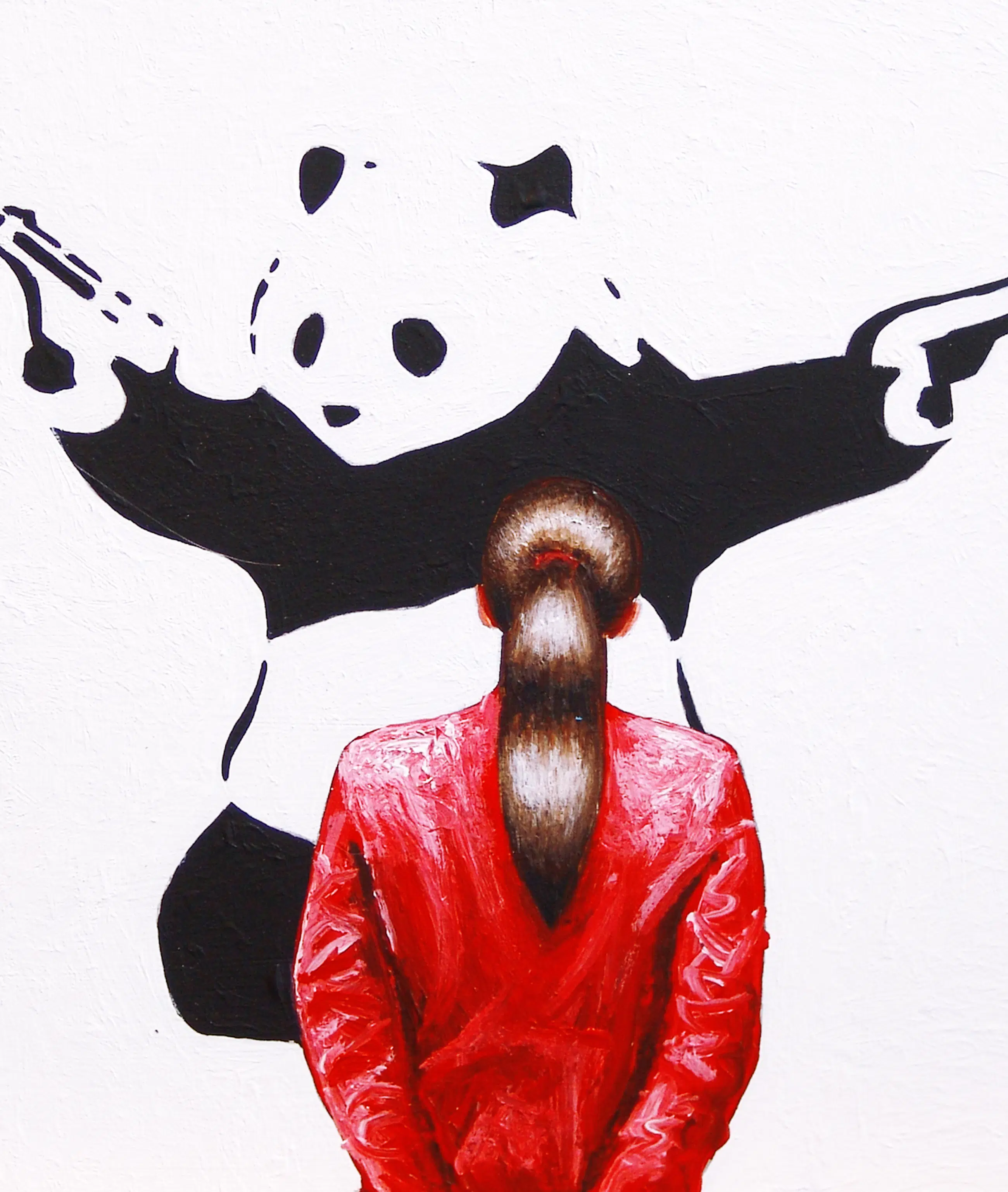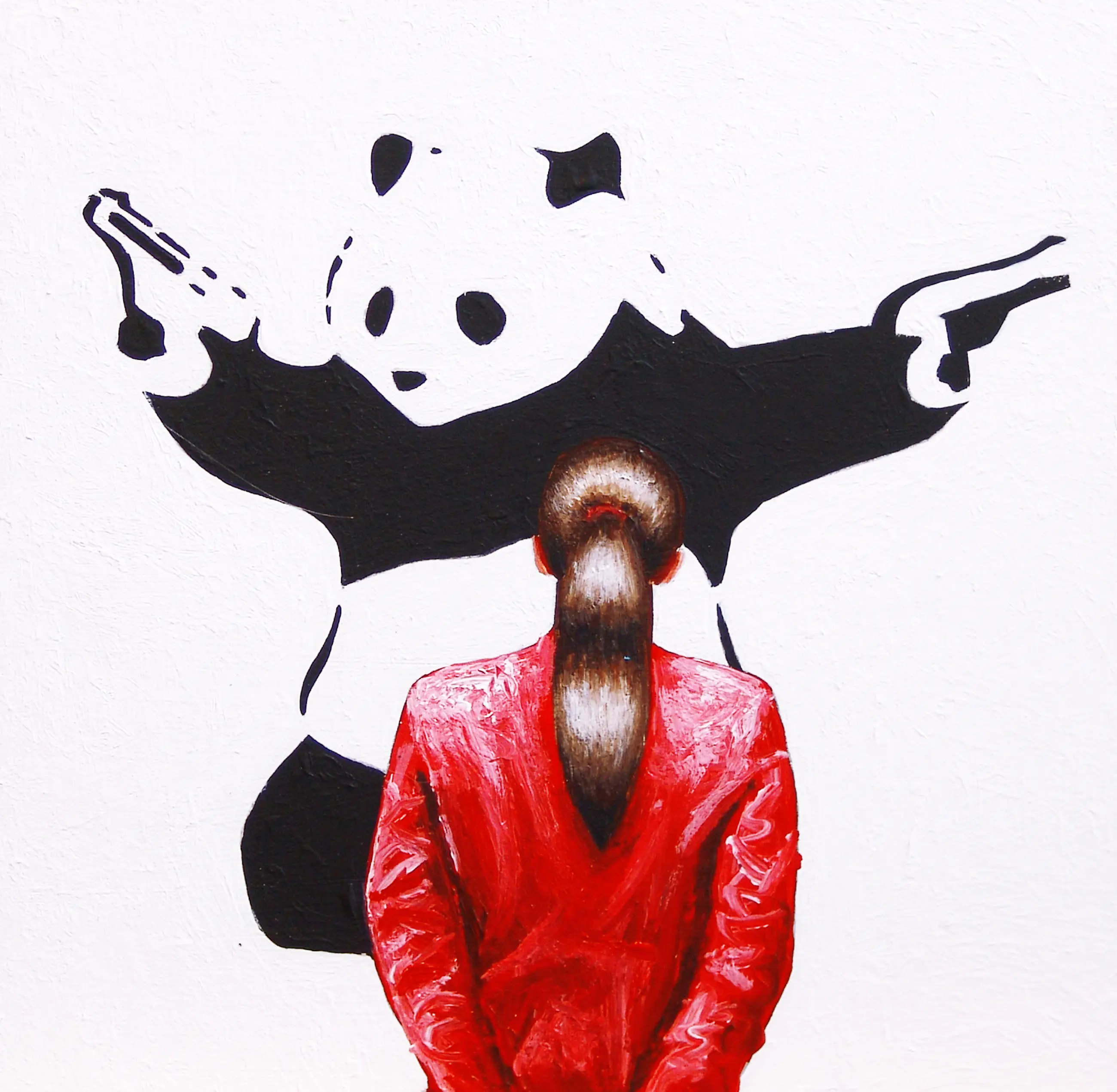 Gerard Boersma - Shooting Panda (Vrouw genietend van schilderij Banksy)