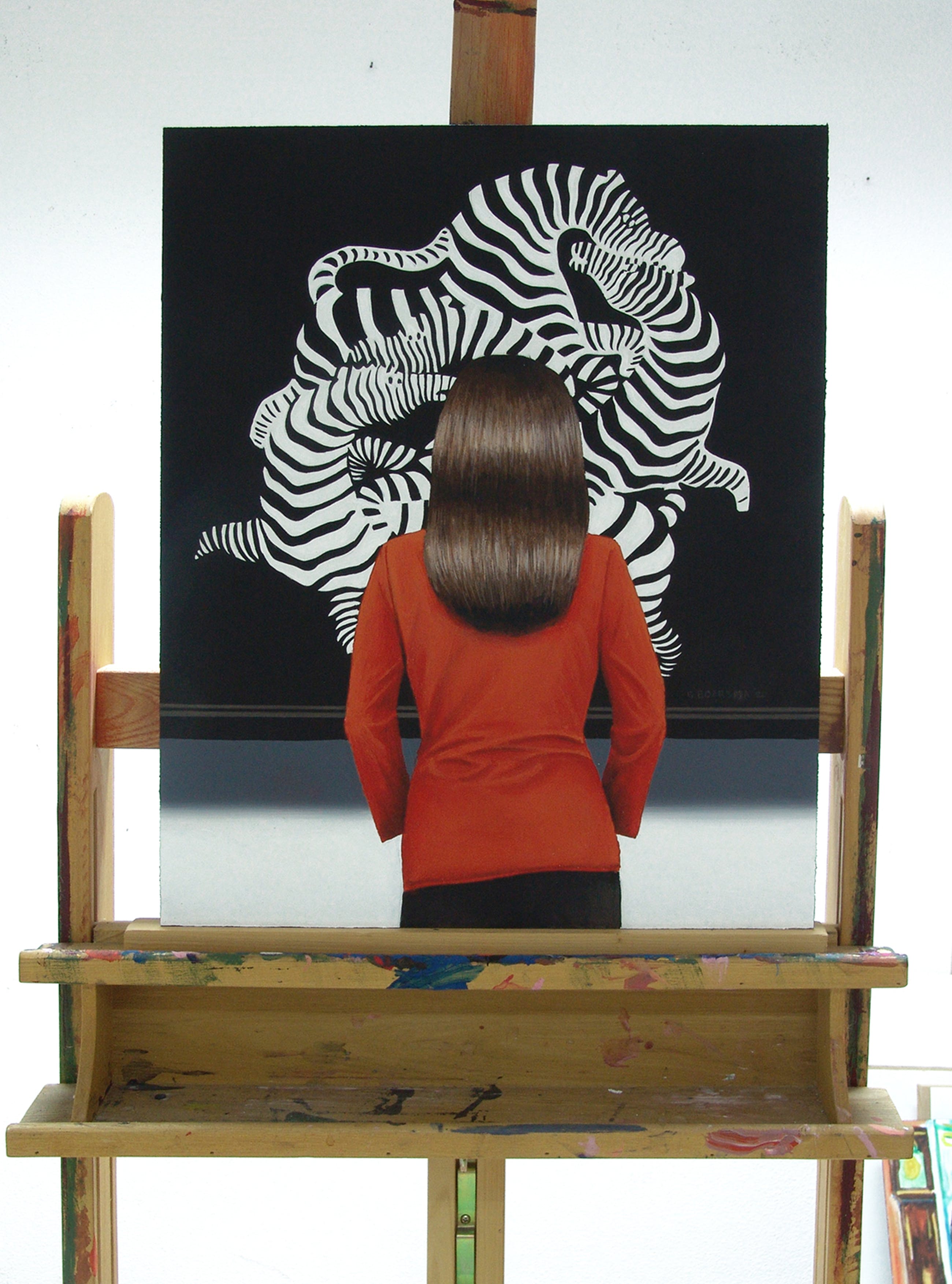 Gerard Boersma staat bekend om zijn schilderijen van mensen die naar bekende schilderijen kijken in musea. Dit werk van 50 x 40 cm toont een vrouw kijkend naar een op art schilderij van Victor Vasarely. Het werk dateert uit 2021 en is gemaakt met acryl op mdf. Gesigneerd op voor- en achterkant. Het schilderij is voorzien van een label van de kunstenaar en wordt geleverd met certificaat van echtheid.