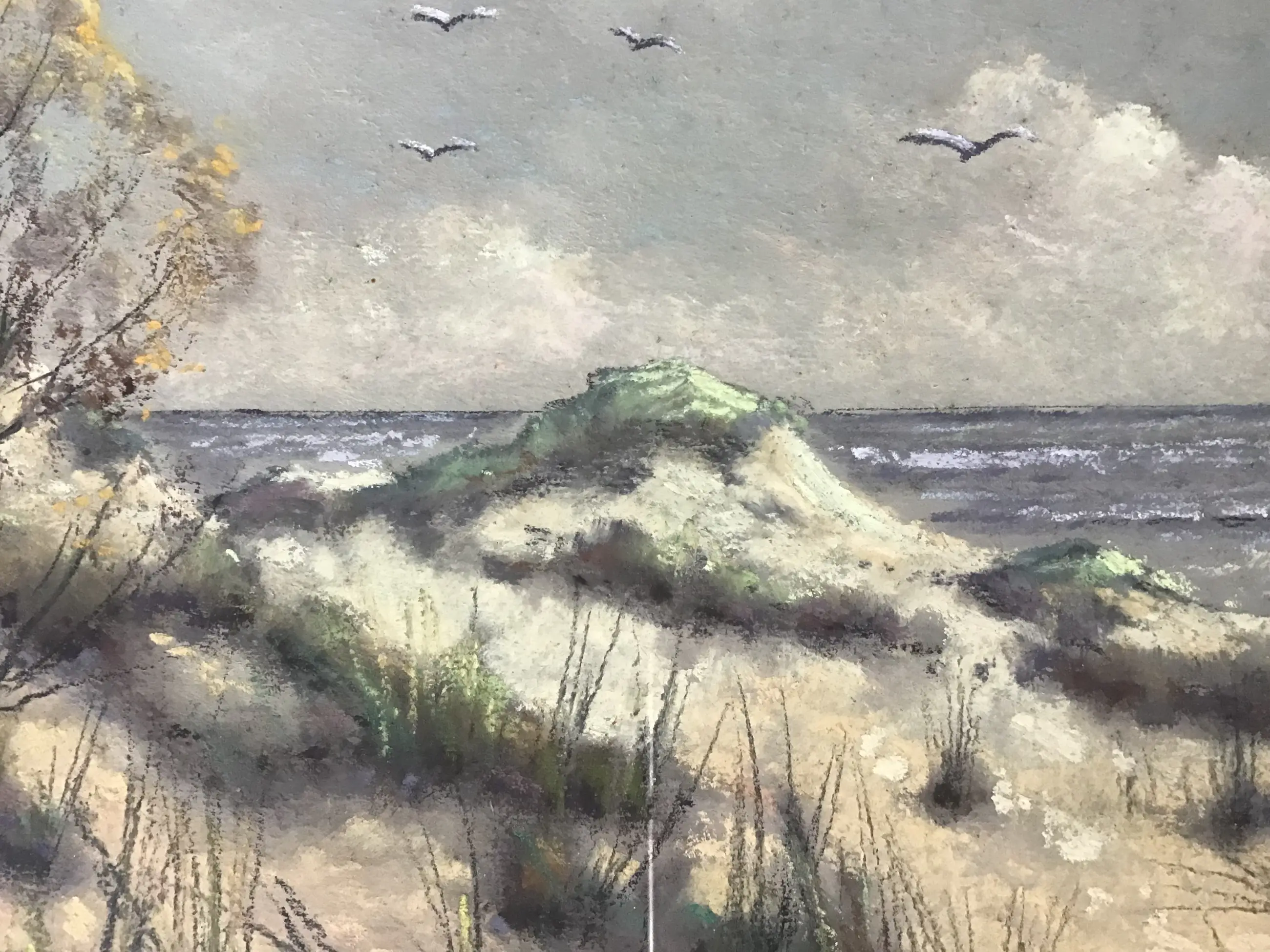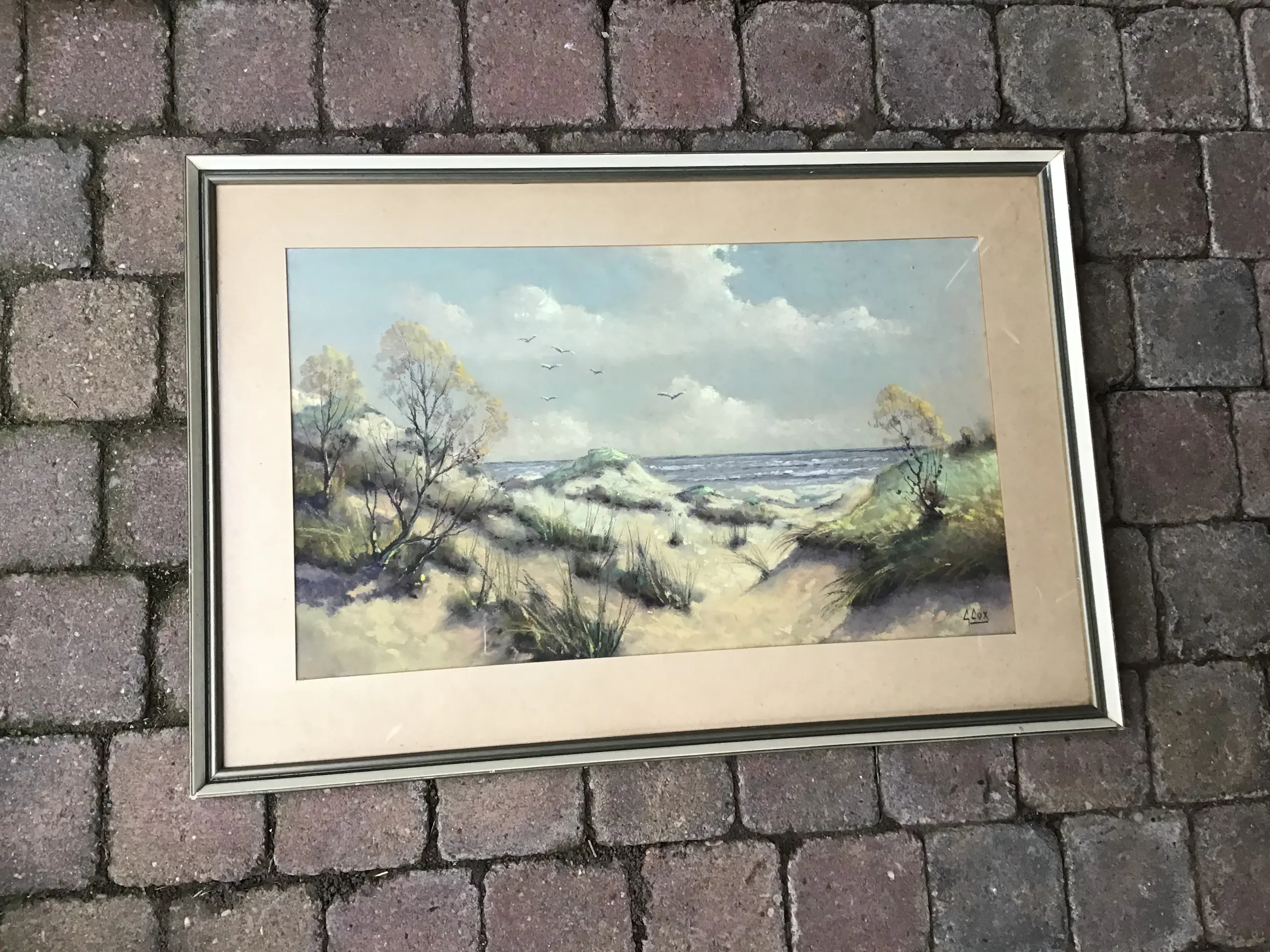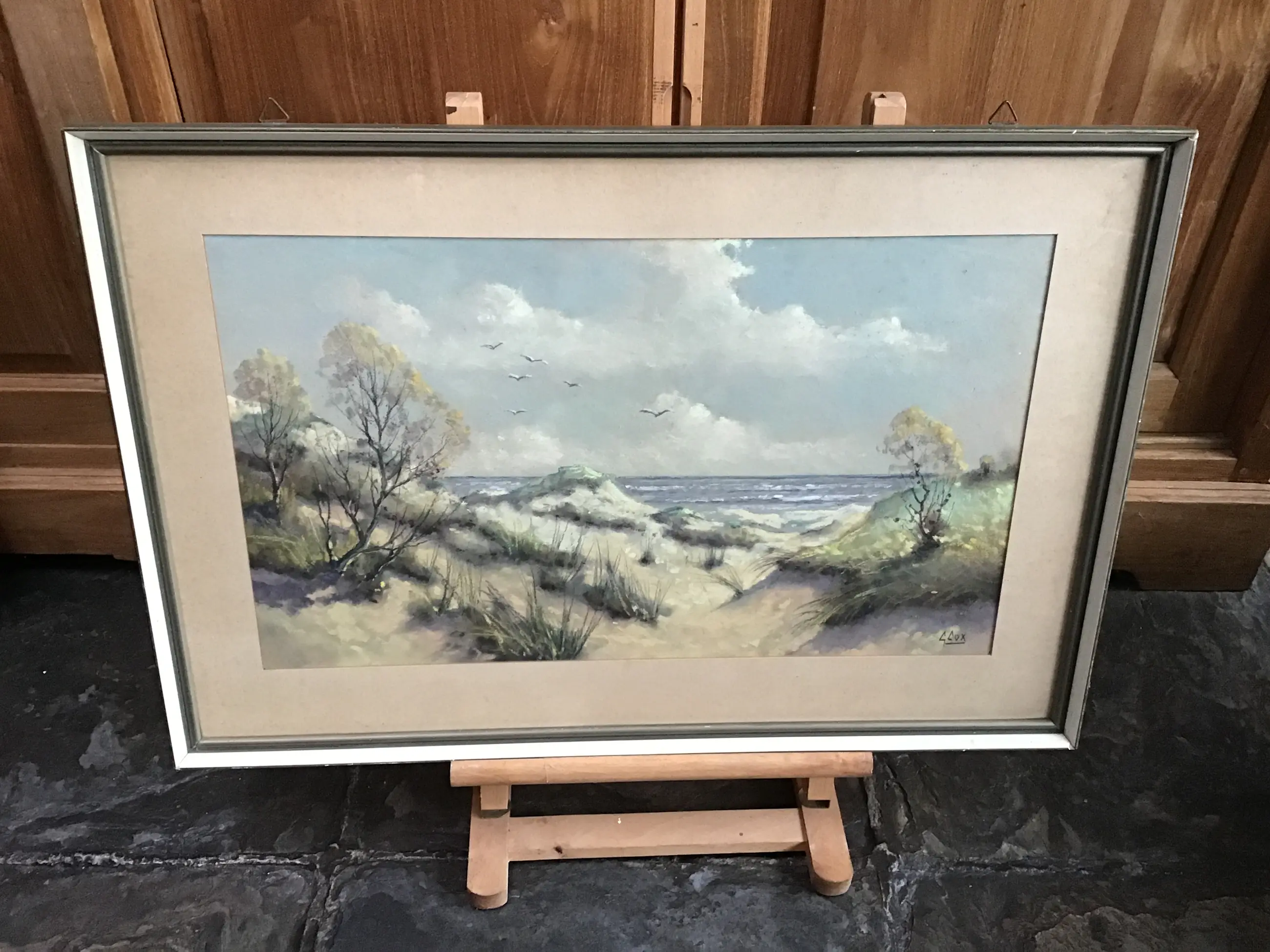 Prachtig schilderij in pastel van Gerard Cox junior. Gezien de passe-partout redelijk oud maar in goede staat. Helder duinzicht met een prachtige wolkenlucht.