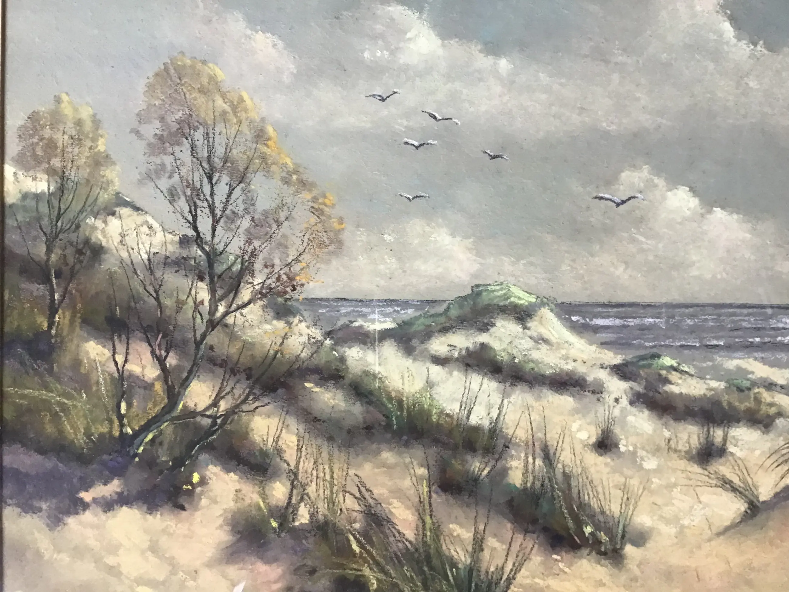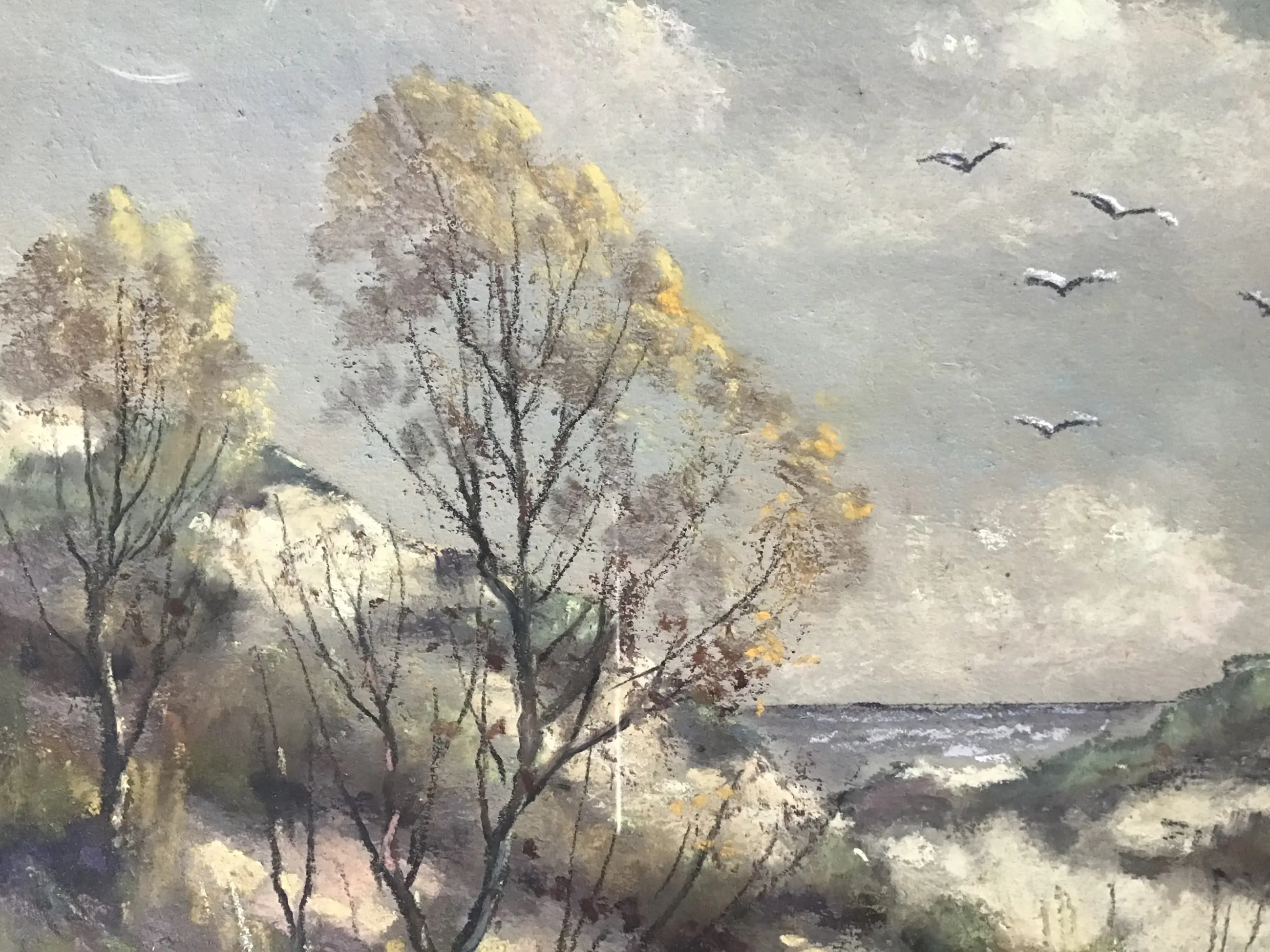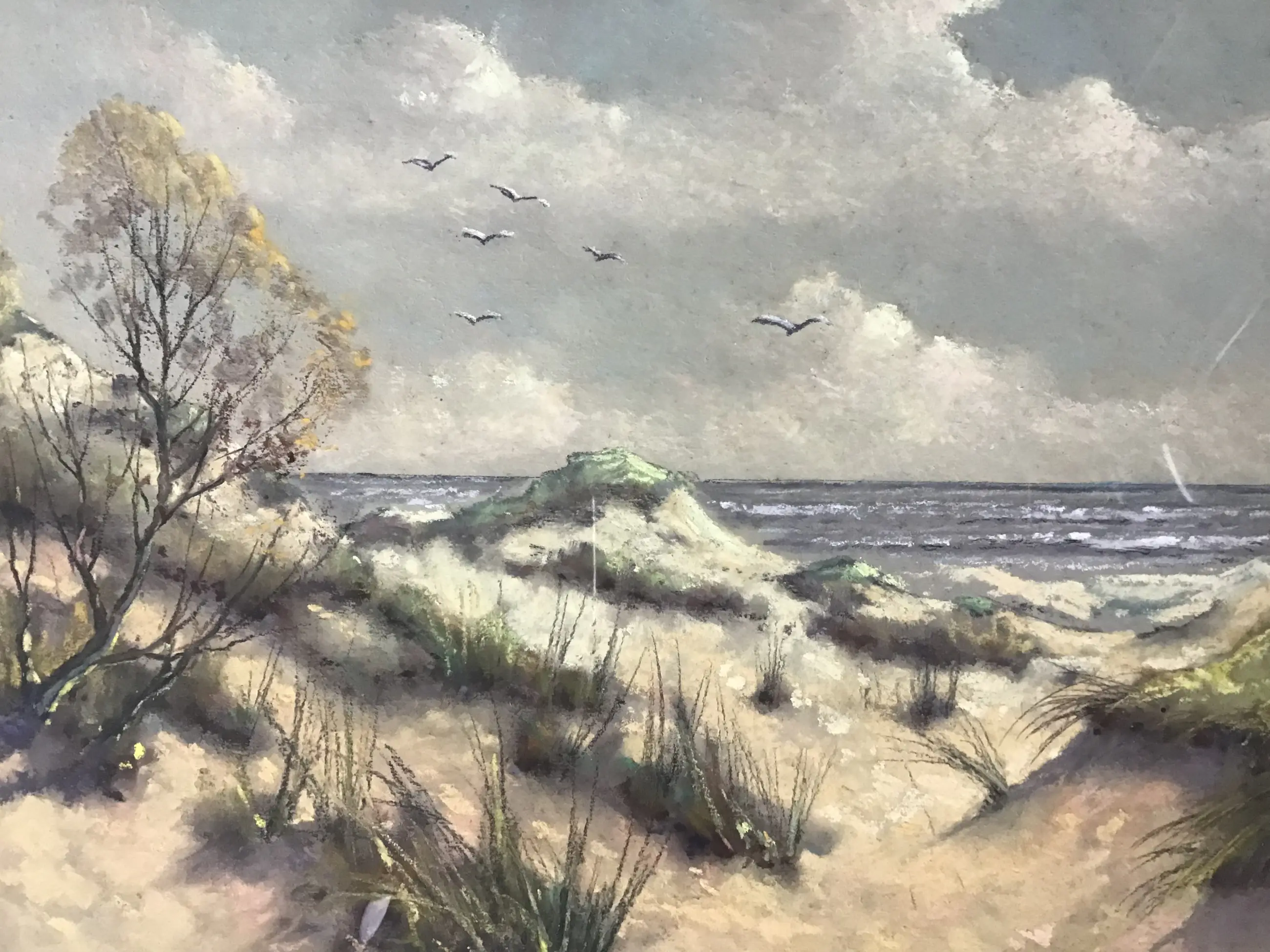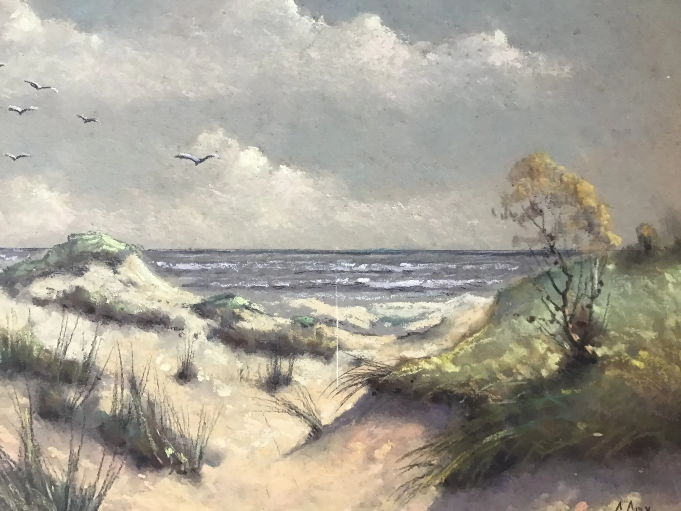 Prachtig schilderij in pastel van Gerard Cox junior. Gezien de passe-partout redelijk oud maar in goede staat. Helder duinzicht met een prachtige wolkenlucht.