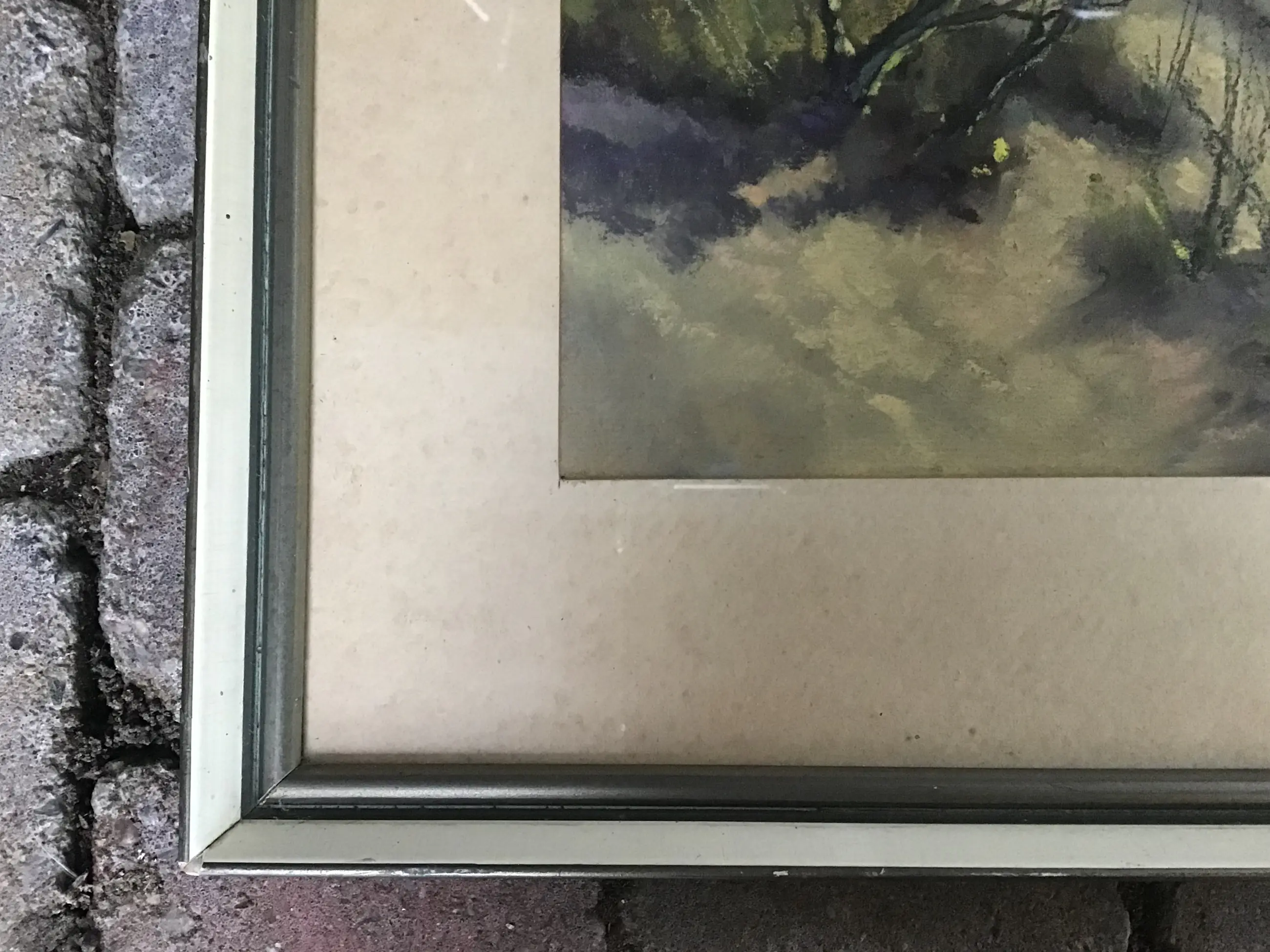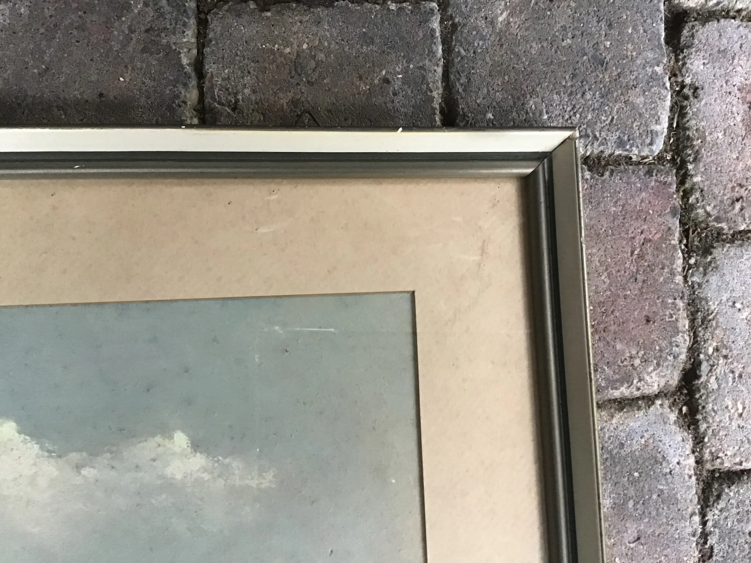 Gezien de leeftijd erg goed. Geen beschadigingen, wel ouderdomssporen aan de lijst. Niet storend.