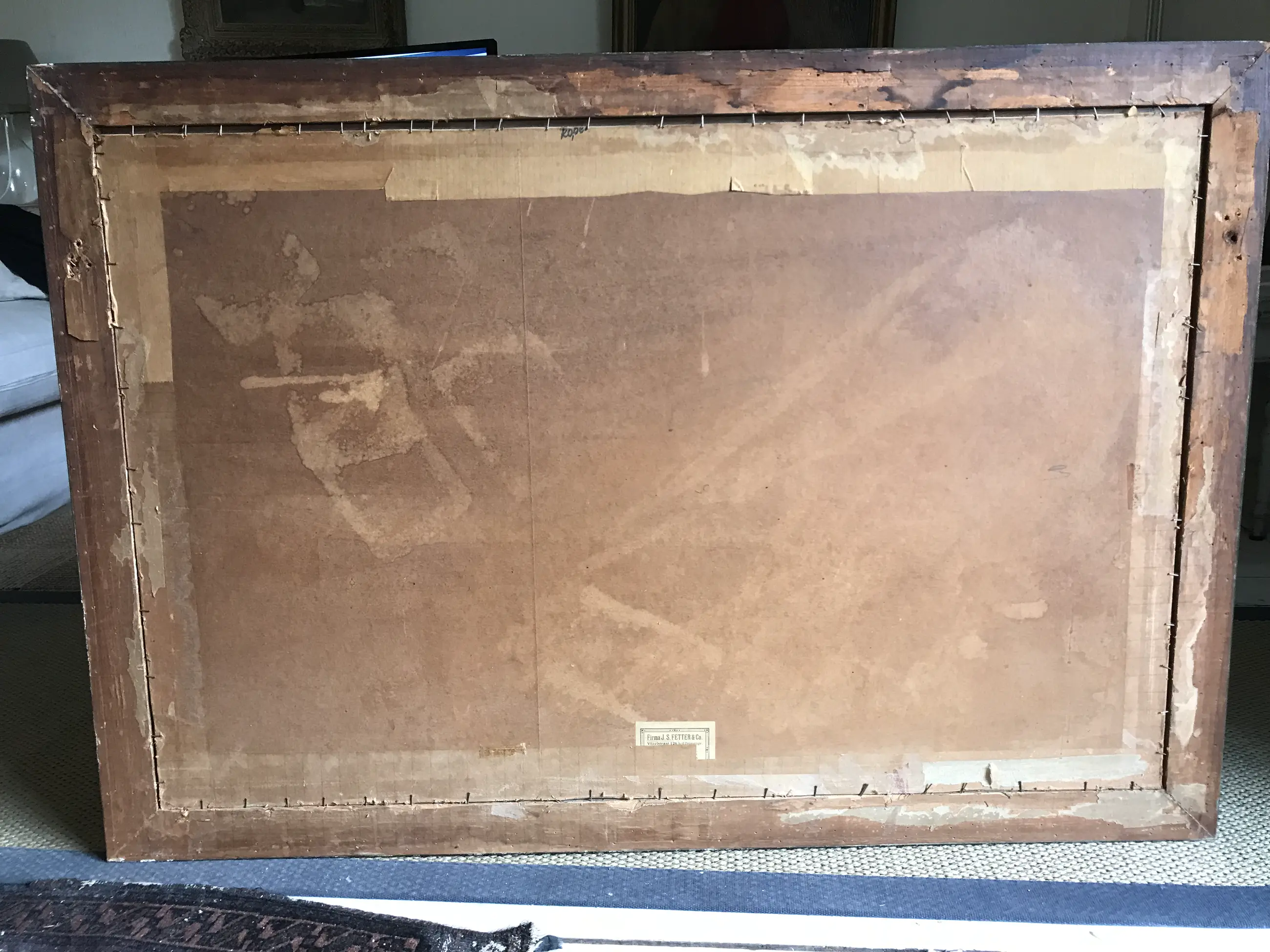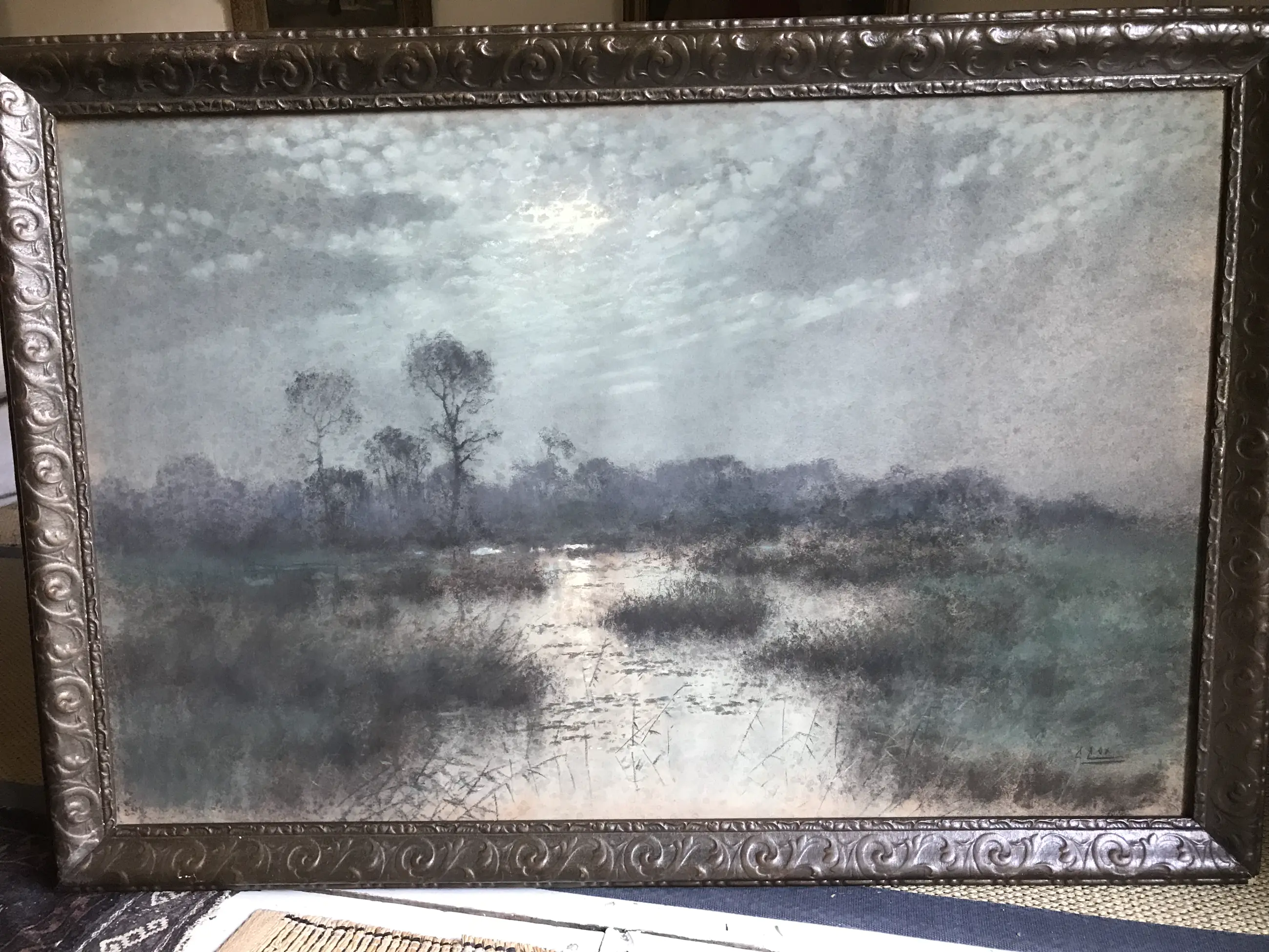 Dit mooie pastel van Gerard Cox sr is ongeveer 1920 gemaakt in de omgeving van Arcen , Noord-Limburg waar Cox met een woonwagen rondtrok en zijn landschappen vond waarmee hij zo bekend is geworden. Pastelkrijt blijft heel mooi van kleur zoals je ziet, zelfs na 100 jaar nog! Dit sprookjesachtig werk van flink formaat is een zeer stemmig detail in het interieur.