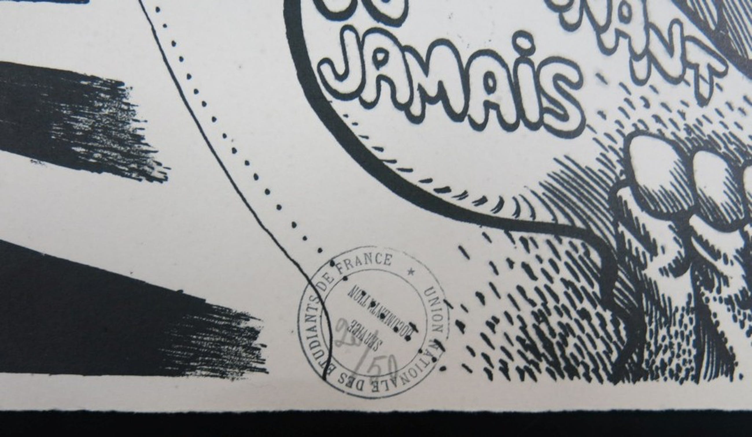 Uitgegeven door de kunstenaarsgroep, de Situationisten(Situationist International), die vooral bekendheid verwierven door hun steun aan de Studentenopstand in Mei 1968 te Parijs. Deze kunstenaarsgroep heeft verwantschap met DaDa, Cobra, Fluxus ea. Onder andere Asger Jorn/Constant waren verbonden aan deze groep. Gemaakt voor de opstand in mei 1968 van l’Union Nationale des Étudiants de France en gedrukt bij Michel Casse, de bekende uitgever/drukker in Parijs.