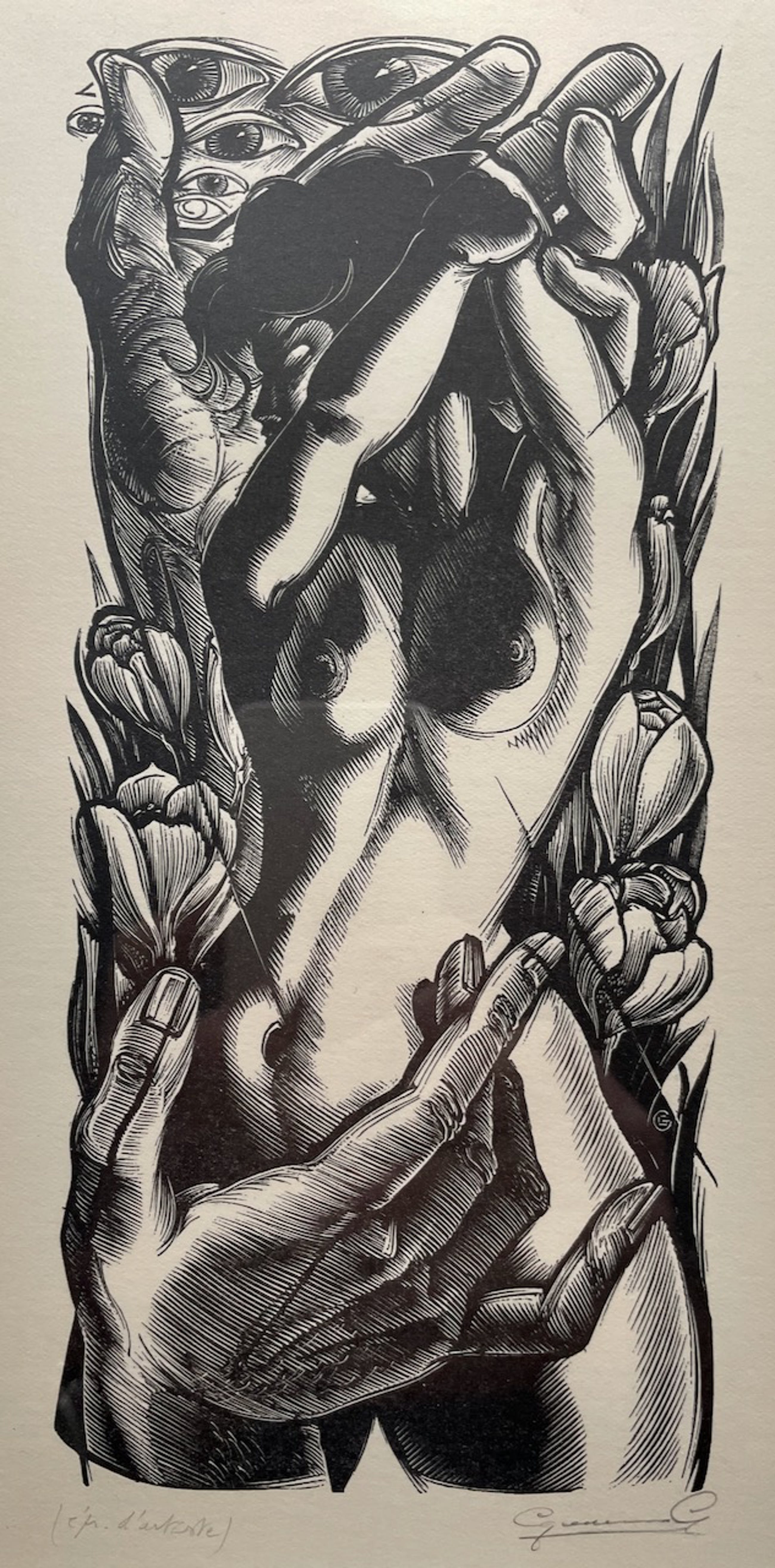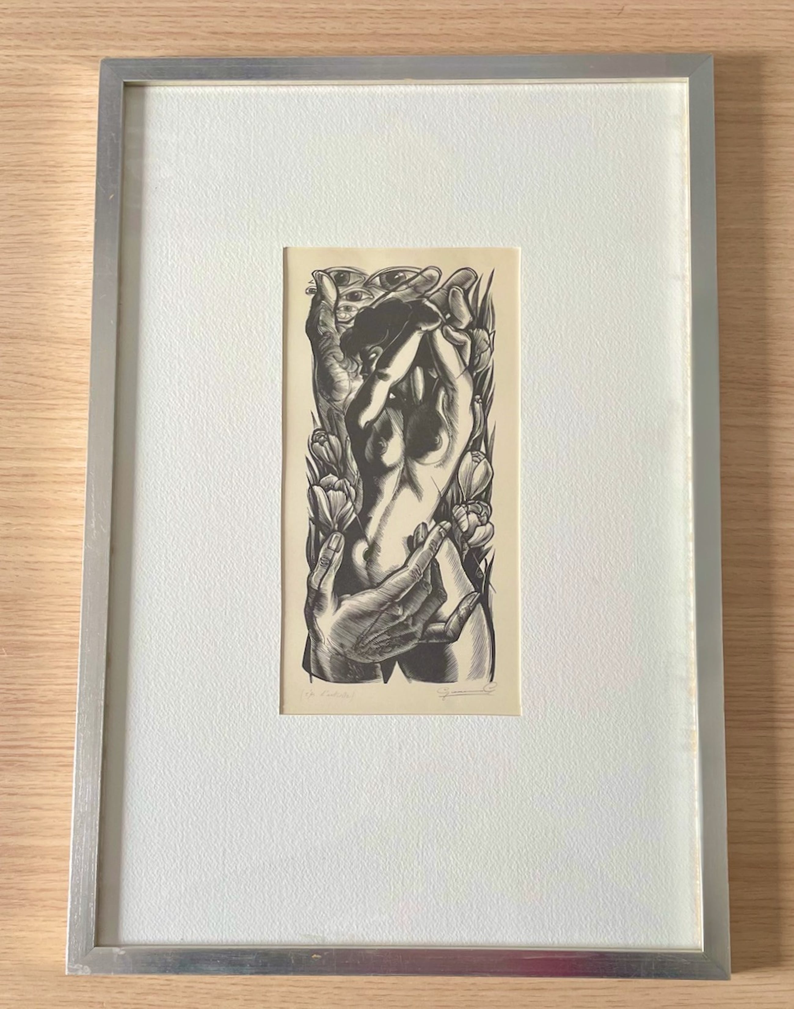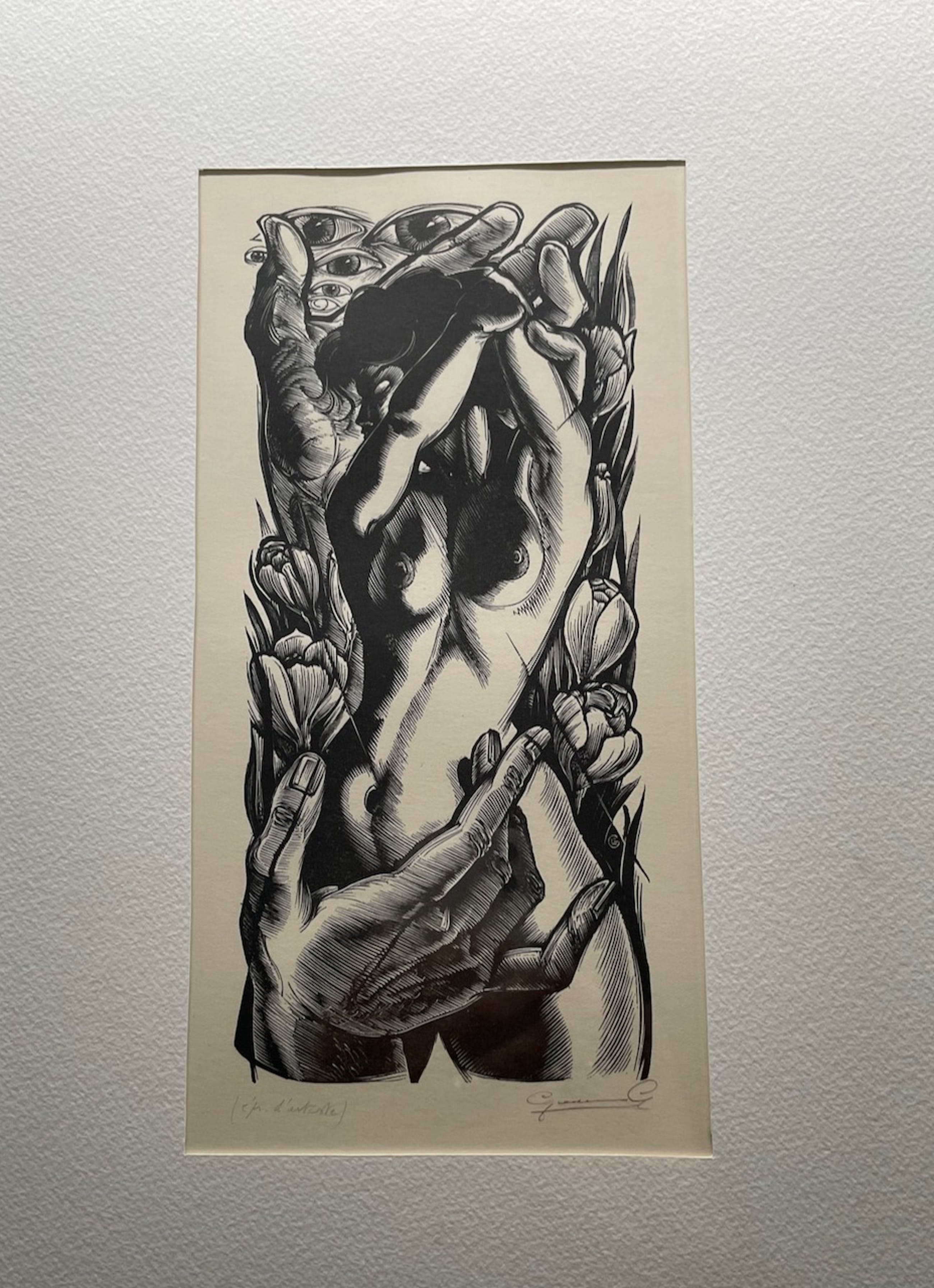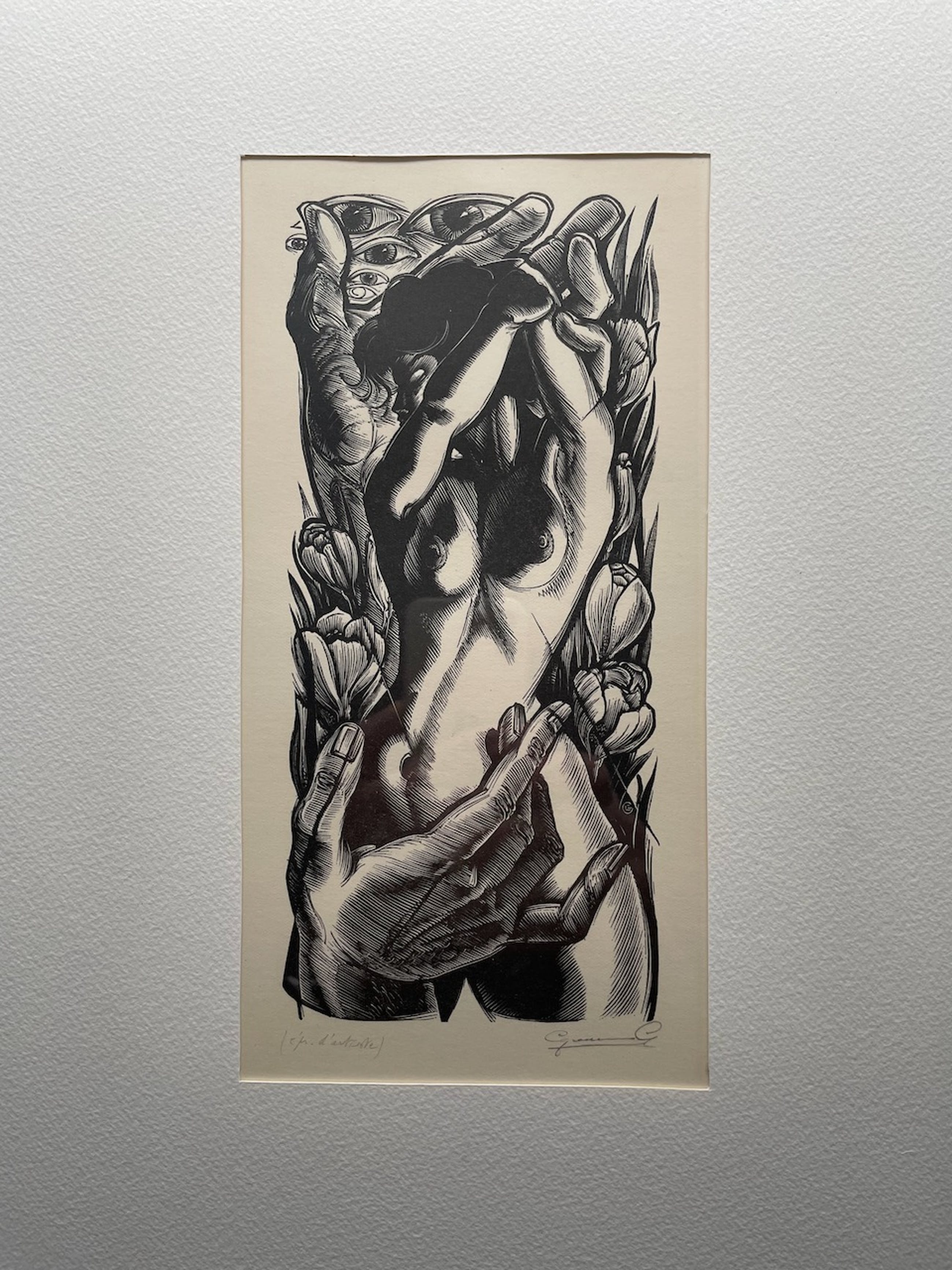 Dit werk is een originele houtsnede in passe partout en gekaderd ( 47cm x 32 cm ). Het is een "epreuve d' artiste " en is origineel gesigneerd door de kunstenaar.