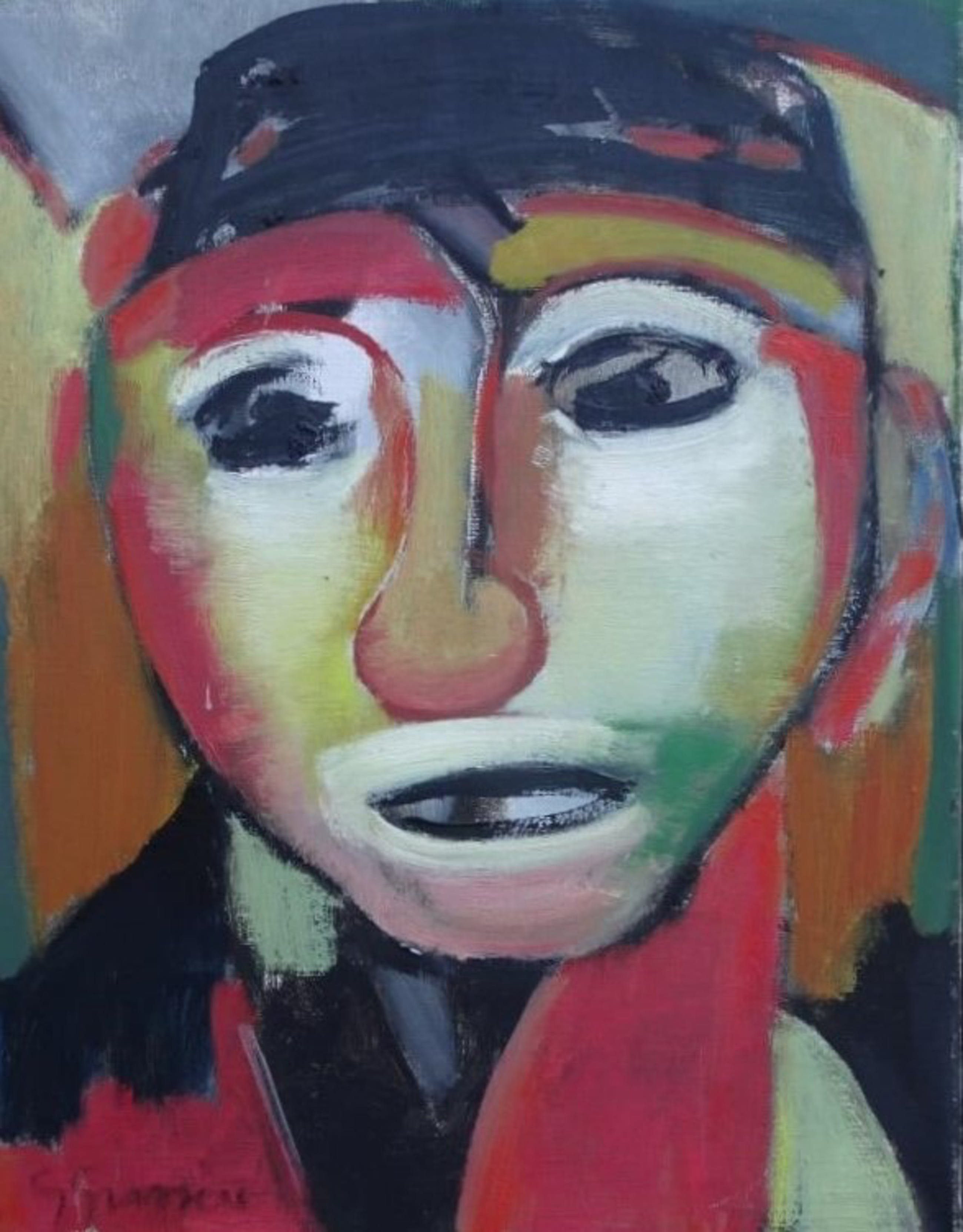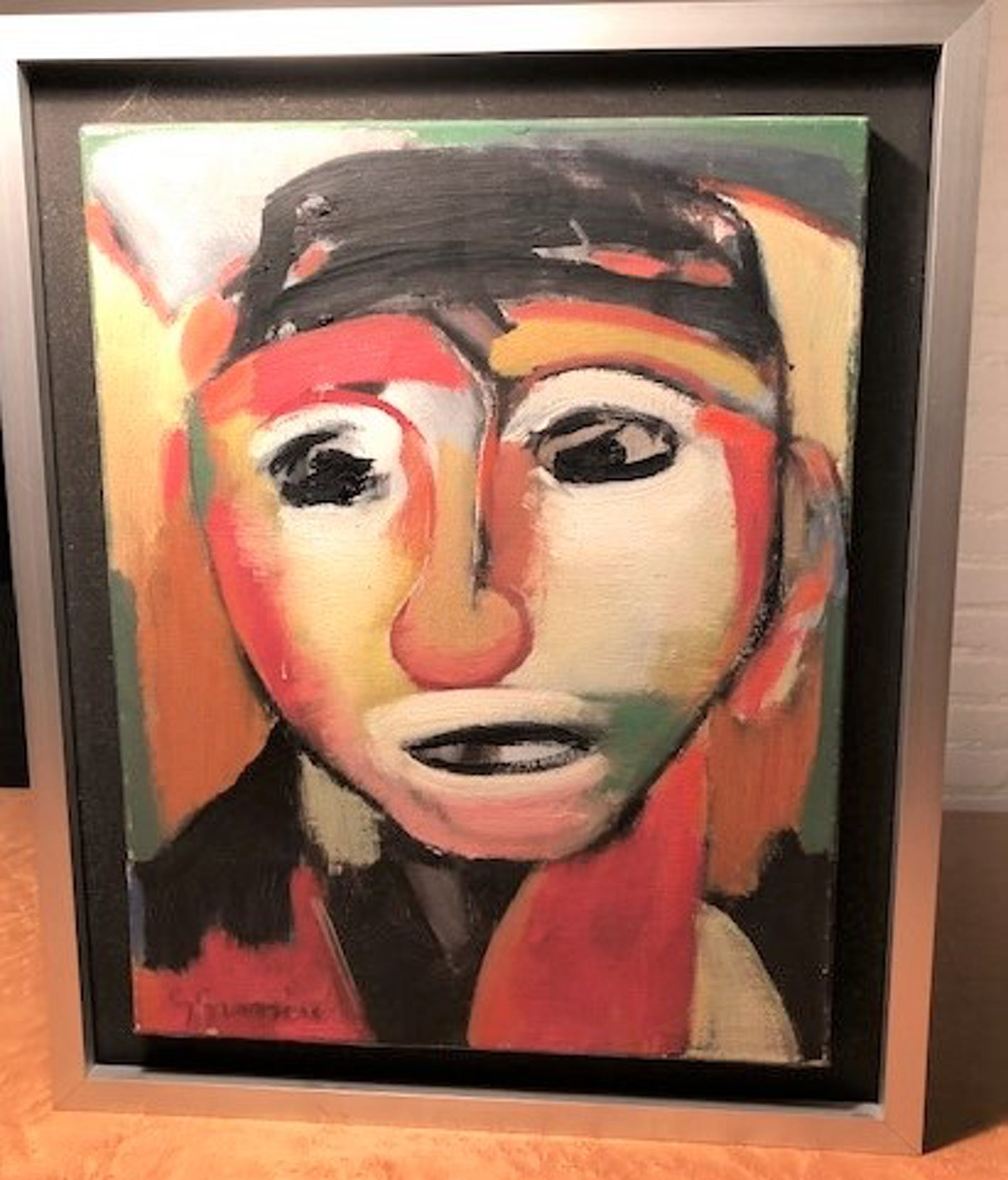 Gérard Grassère Aangrijpend portret. Olieverf op paneel Afmeting incl. lijst 45 x 55 cm. Ingelijst in mat zilveren baklijst. Gesigneerd. In onberispelijke staat!