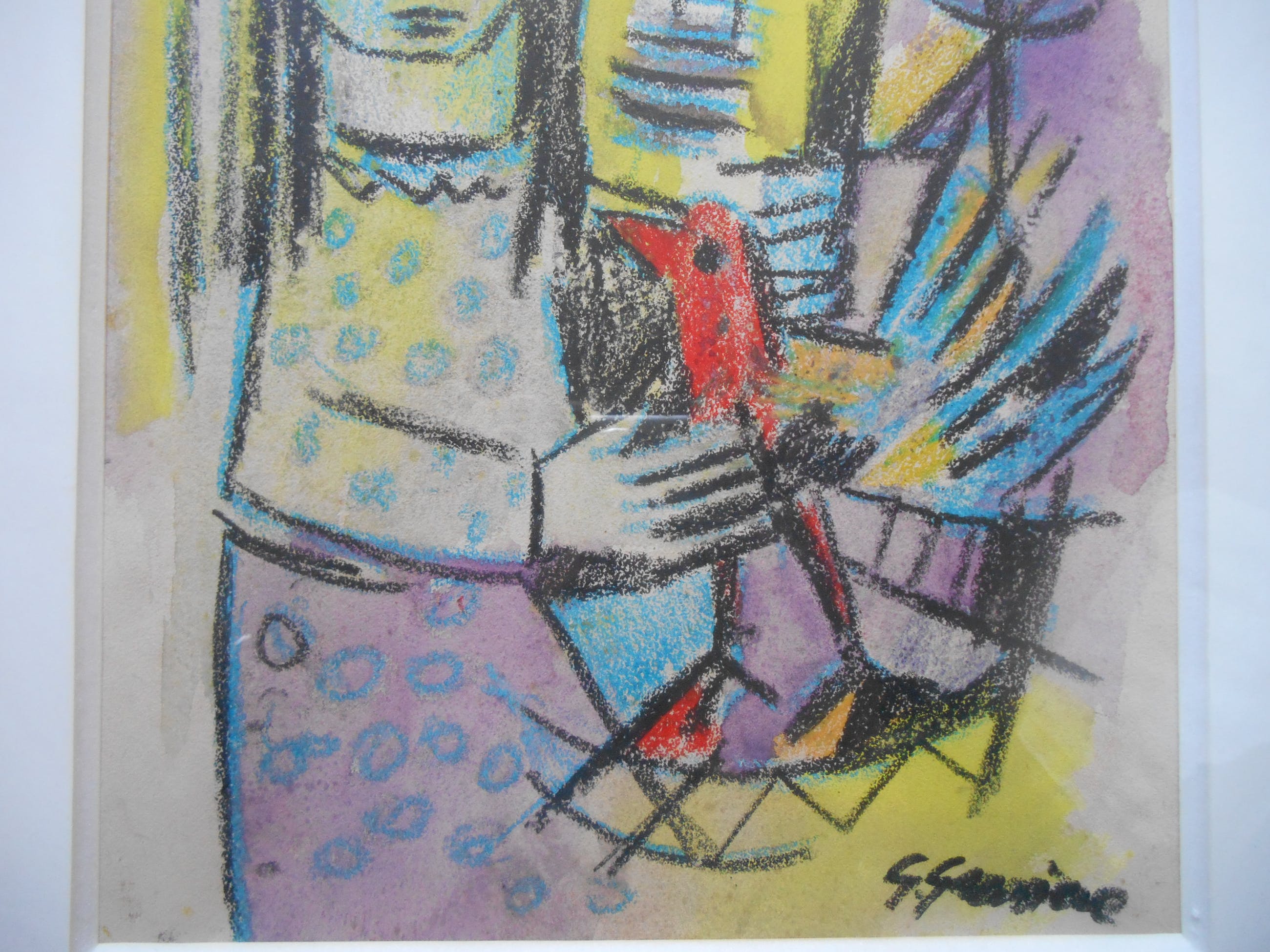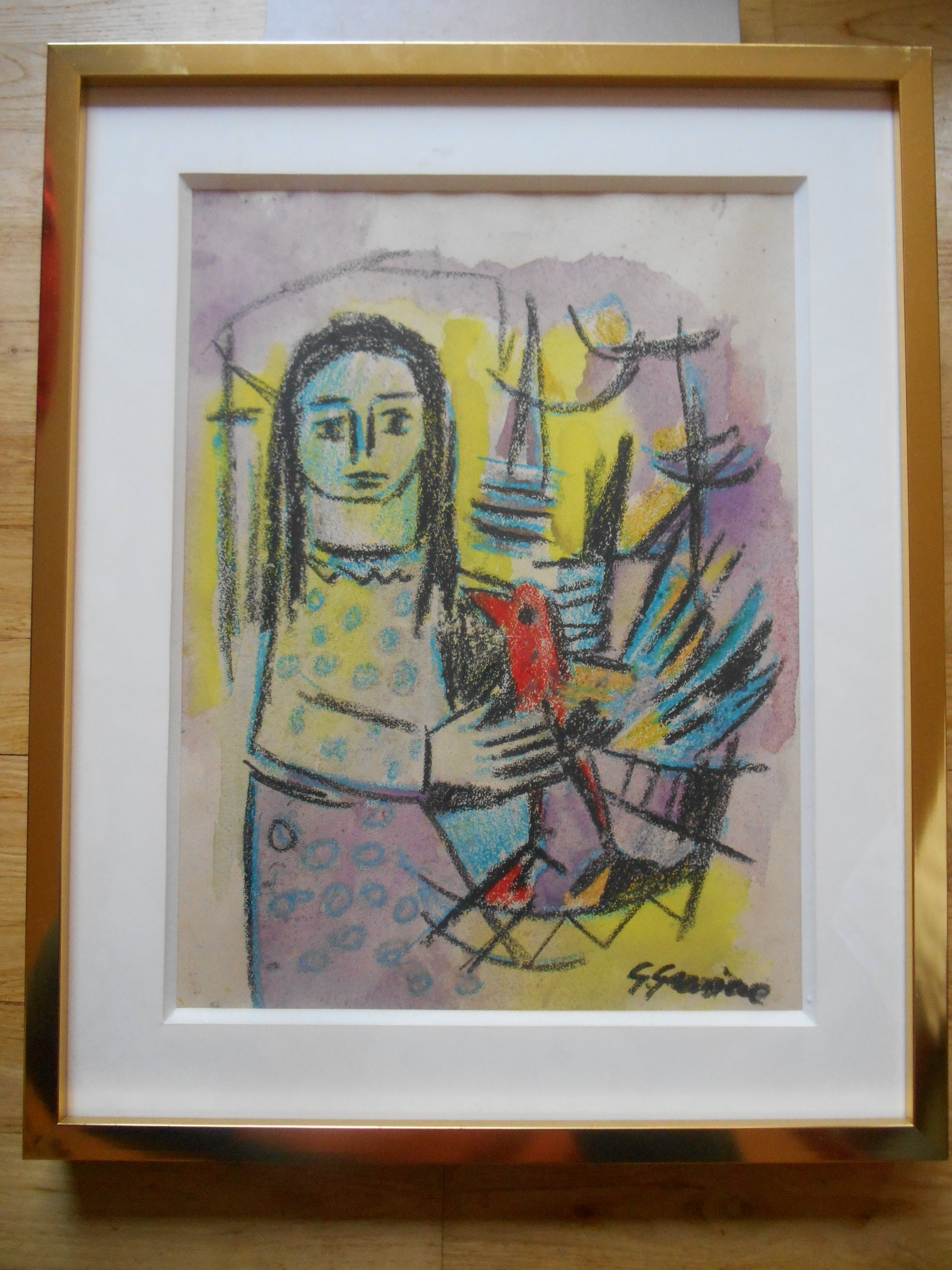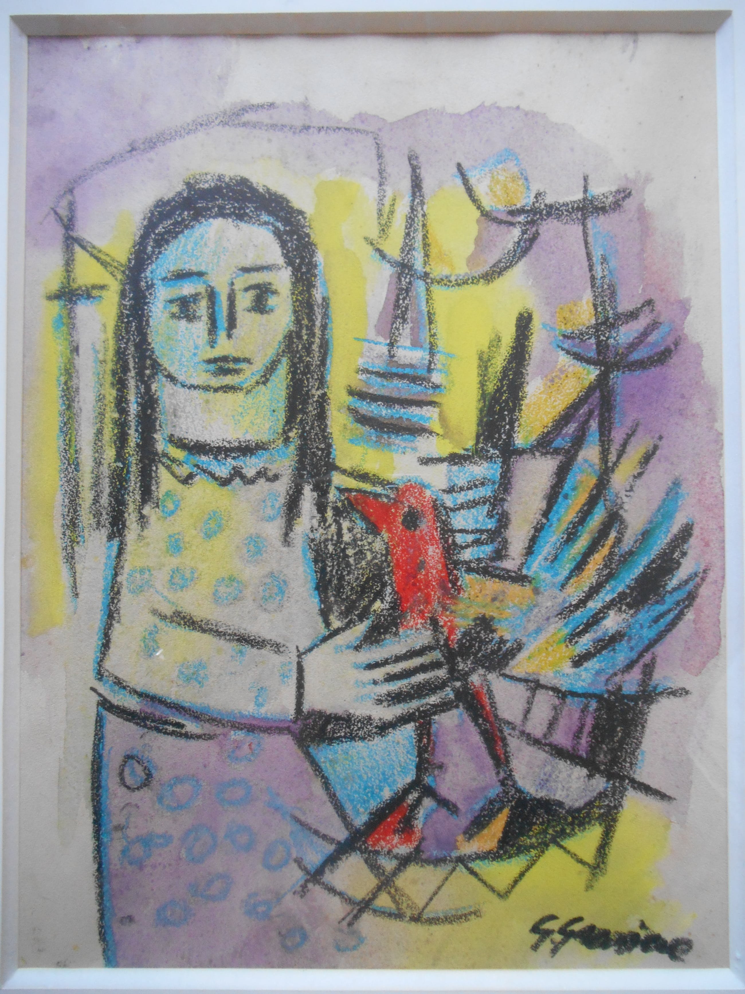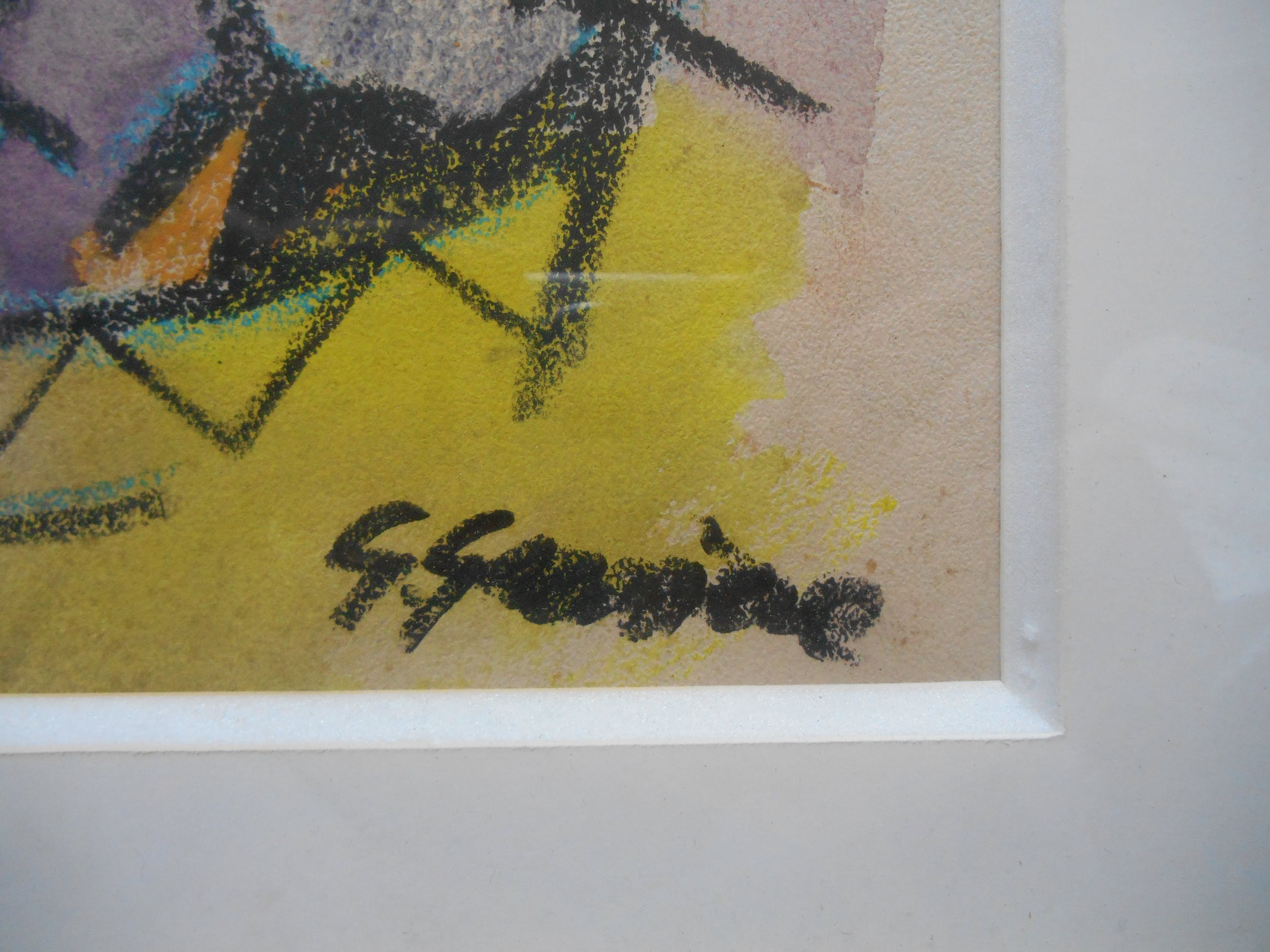 Pastel op papier van deze veelzijdige schilder. Zoals vele kunstenaars worstelde hij met de tegenstelling abstract-figuratief. Hier zien we een geslaagde mix. Handgesigneerd rechtsonder. Professioneel ingelijst achter glas.