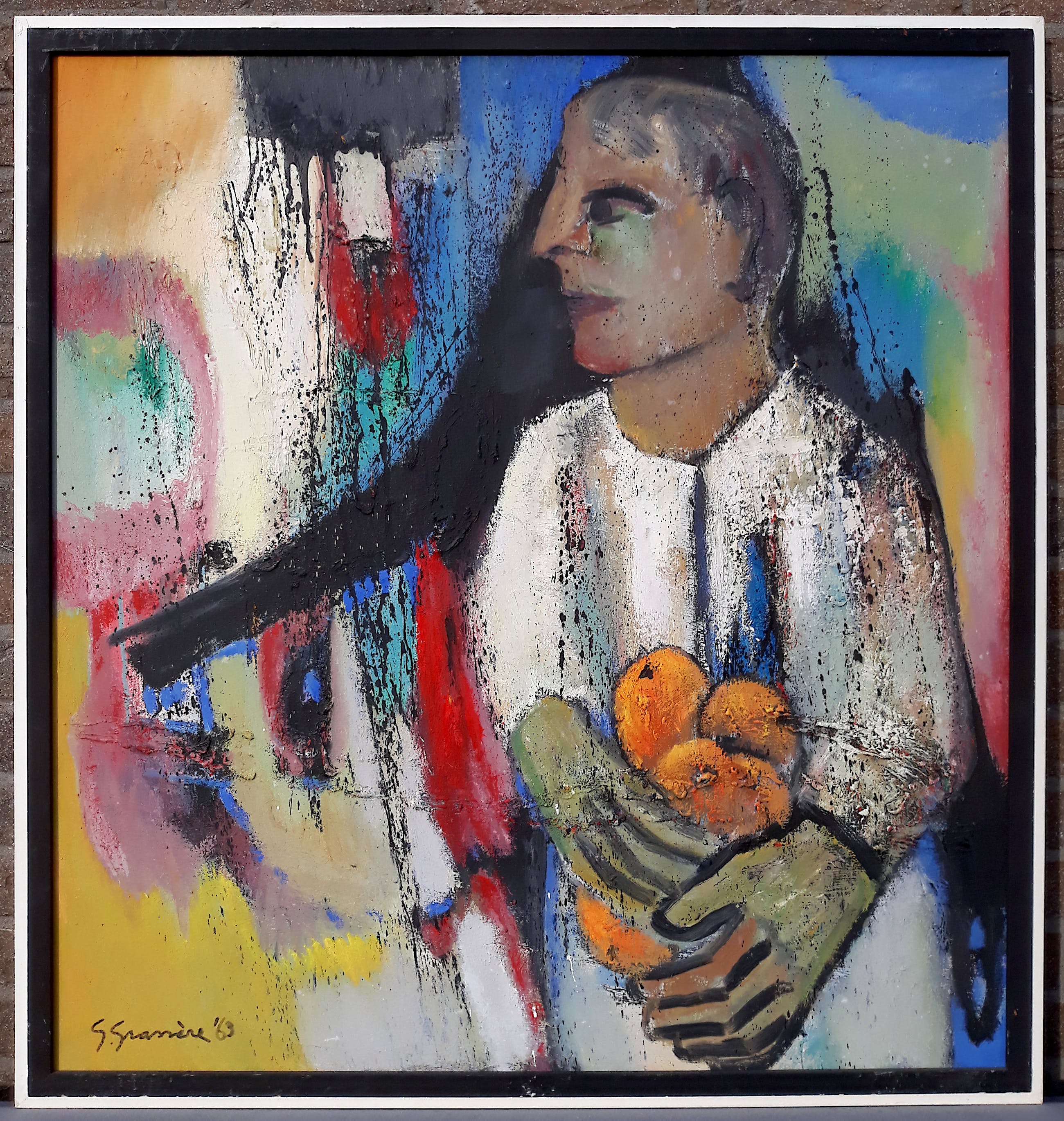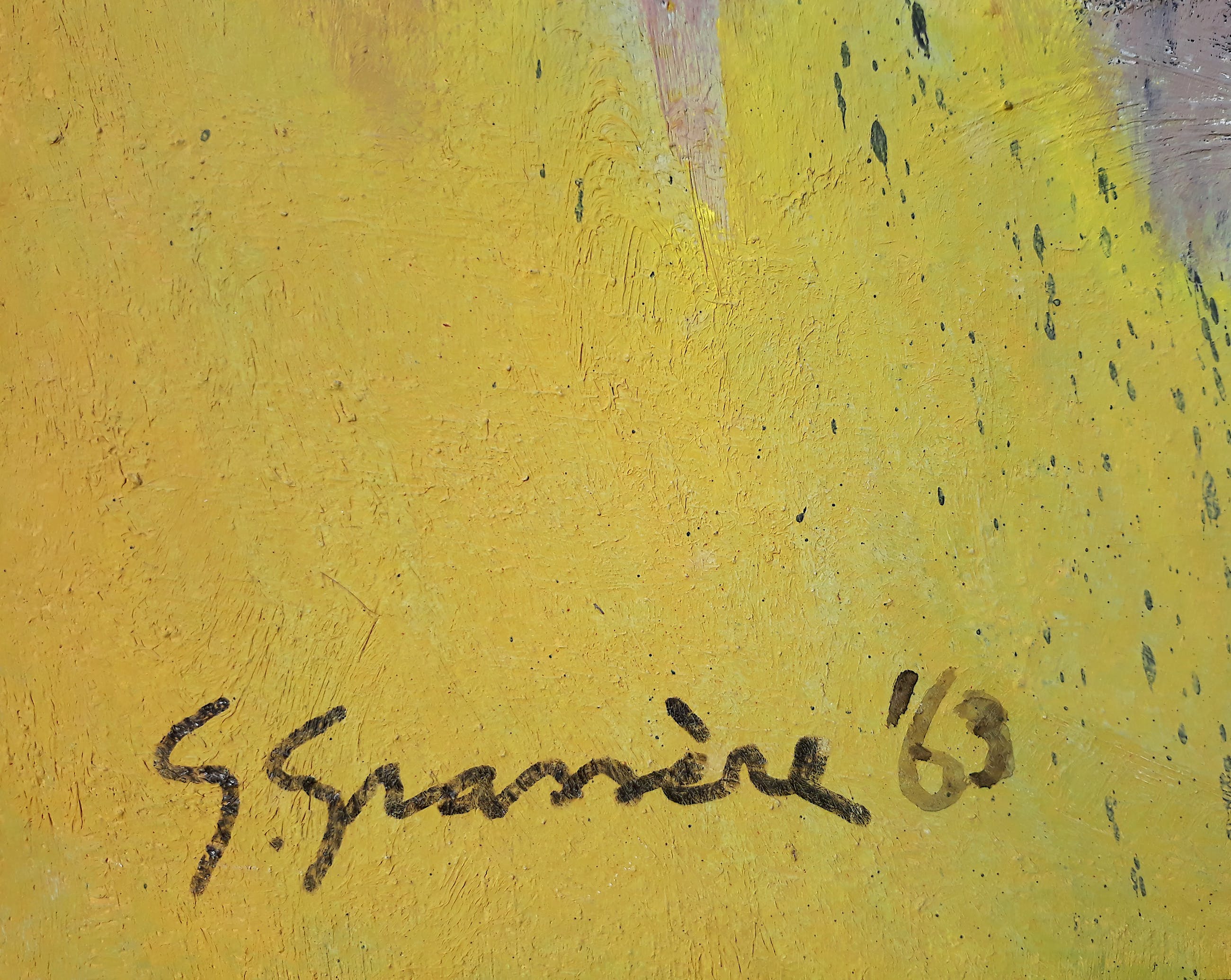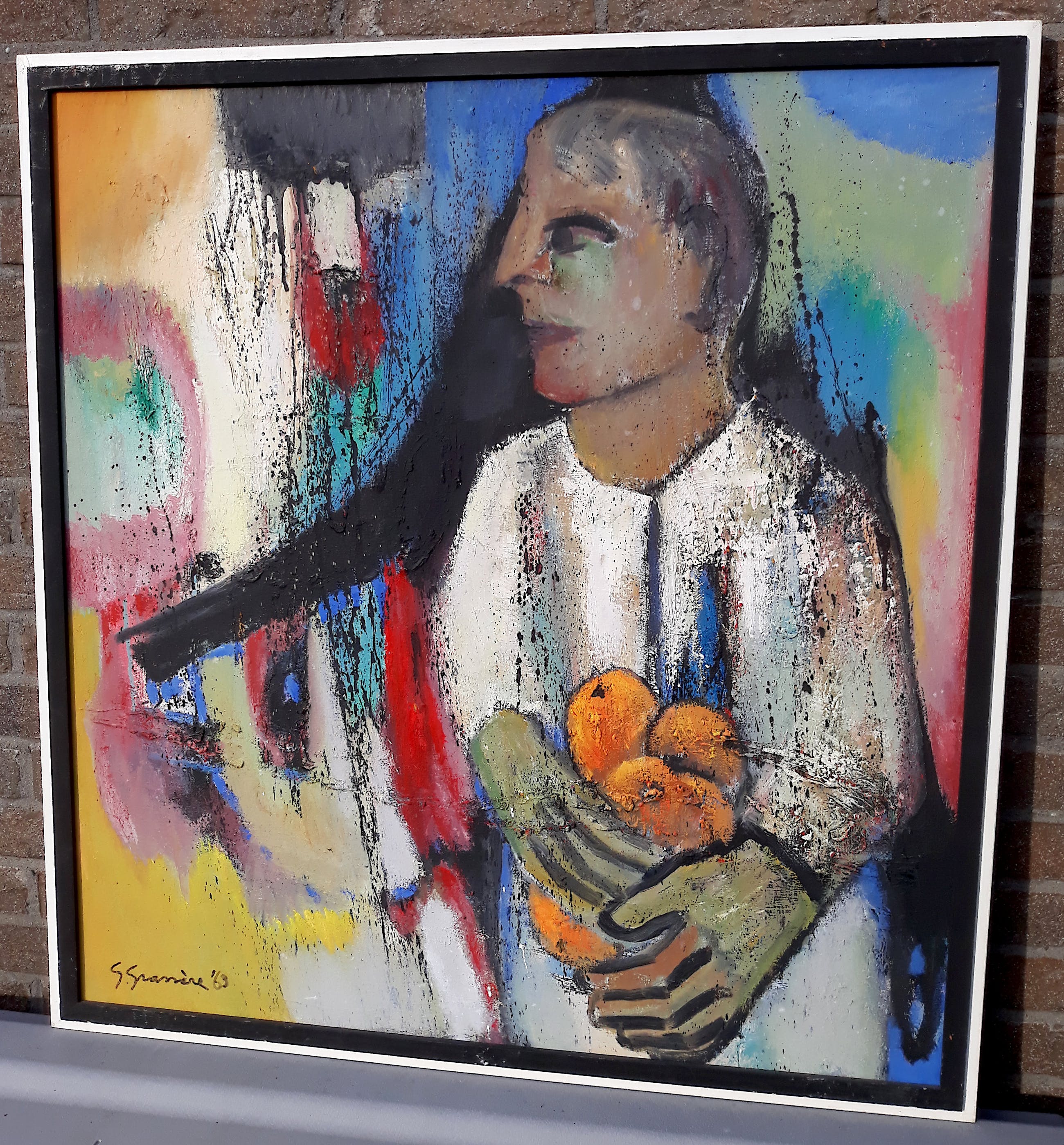 Zeer expressief, kleurrijk werk van Gerard Grassere. Olieverf op doek, gesigneerd en gedateerd (’63) linksonder, in eenvoudige lijst. In zeer goede conditie.