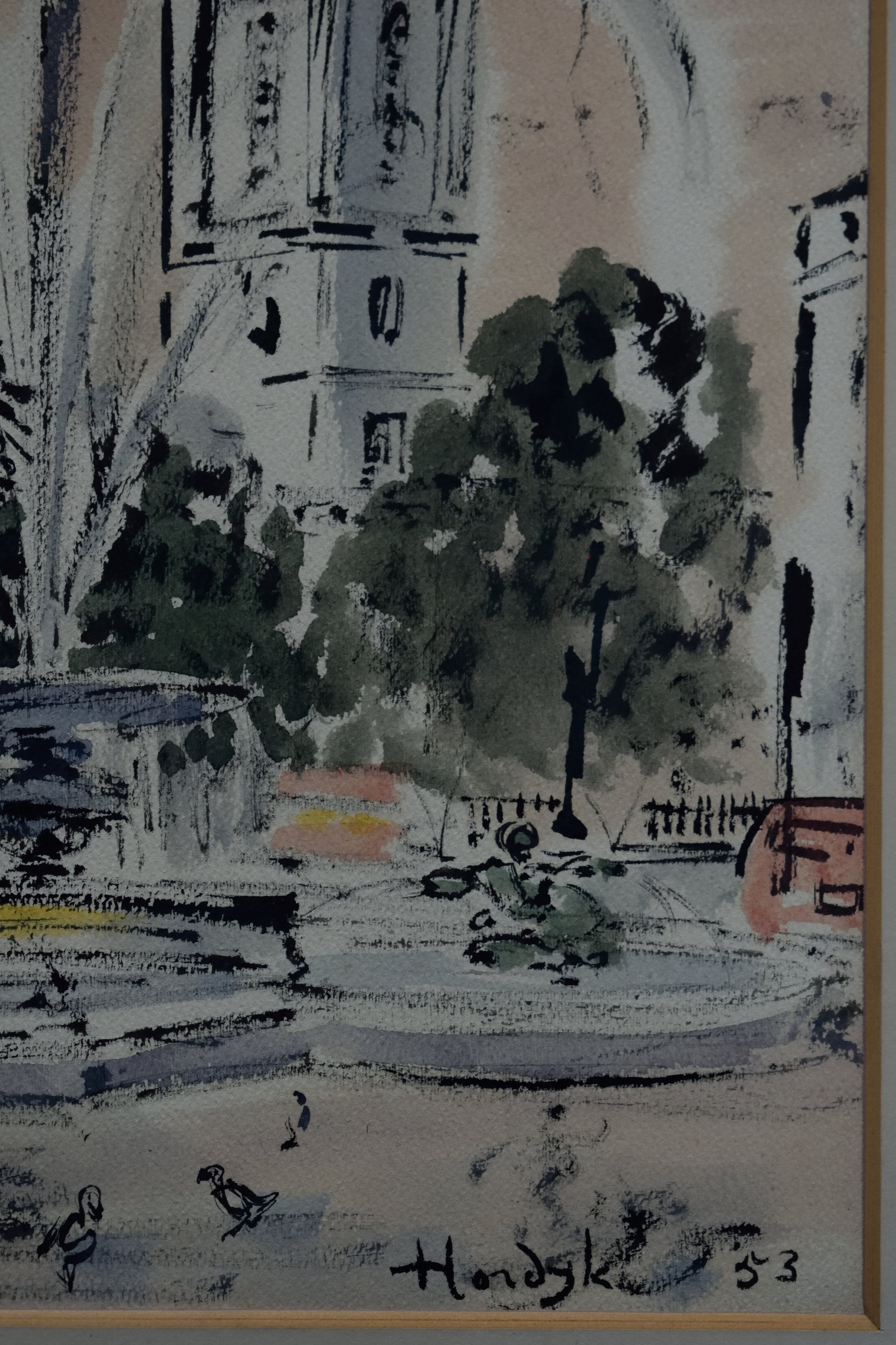 Deze aquarel is van het Trafalgar Square in Londen, geschilderd tijdens zijn verblijf aldaar.