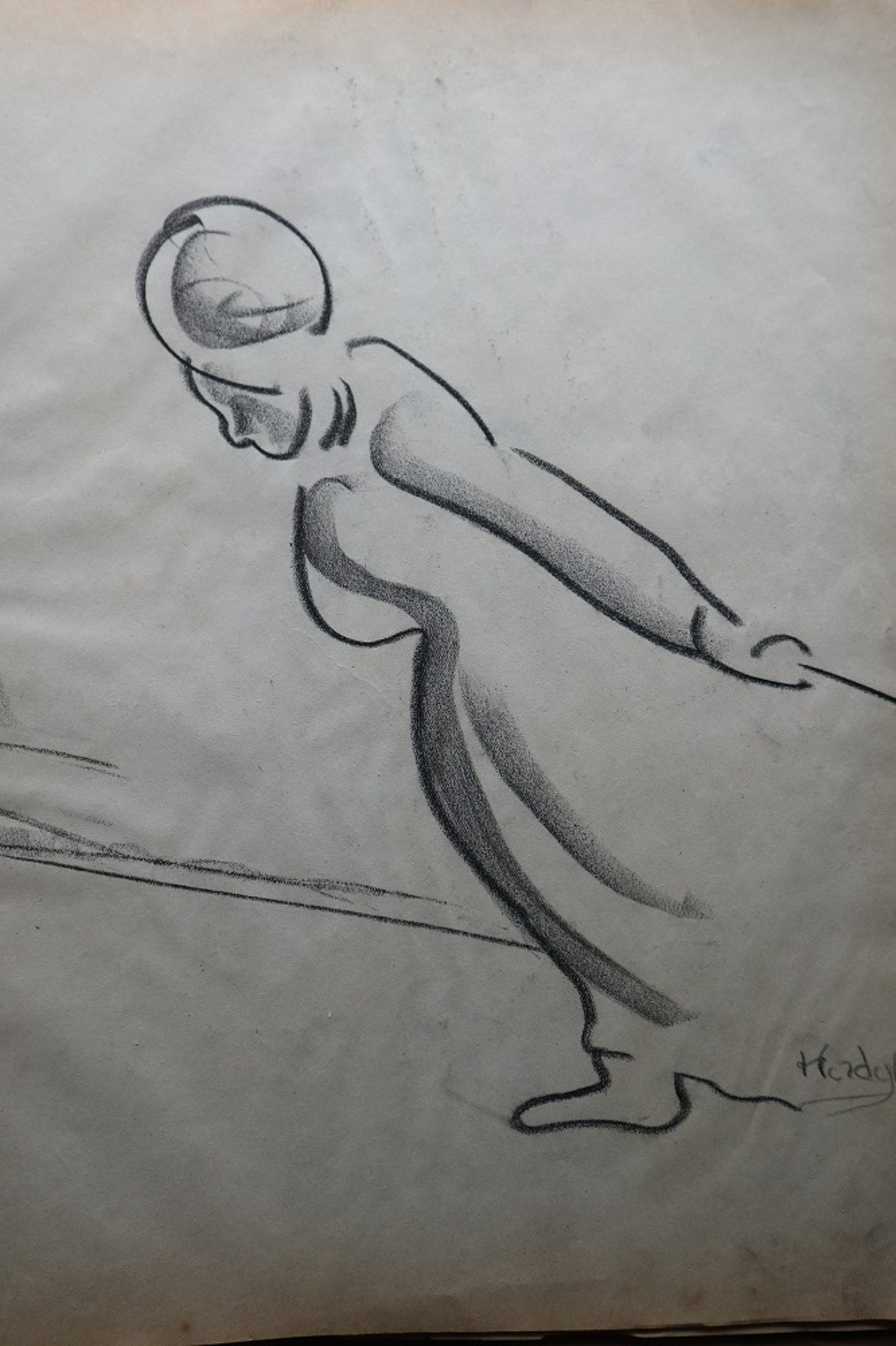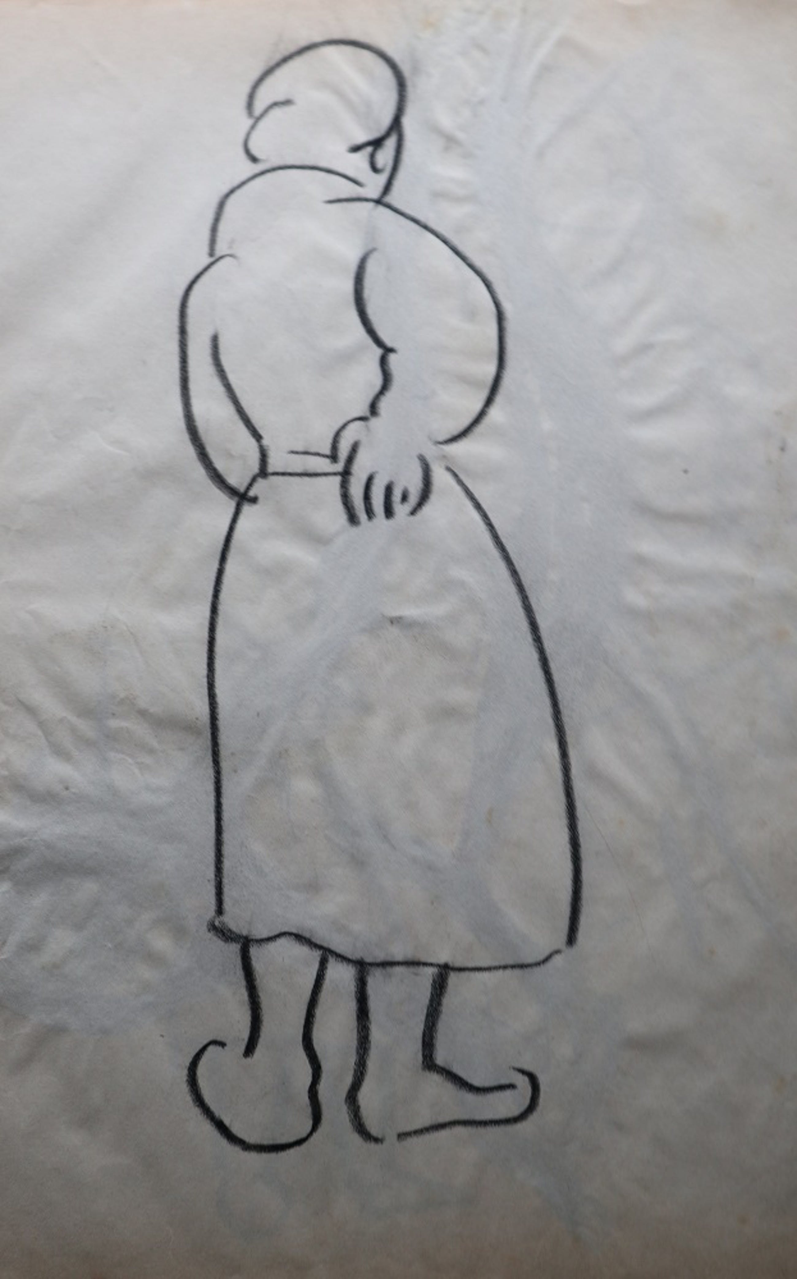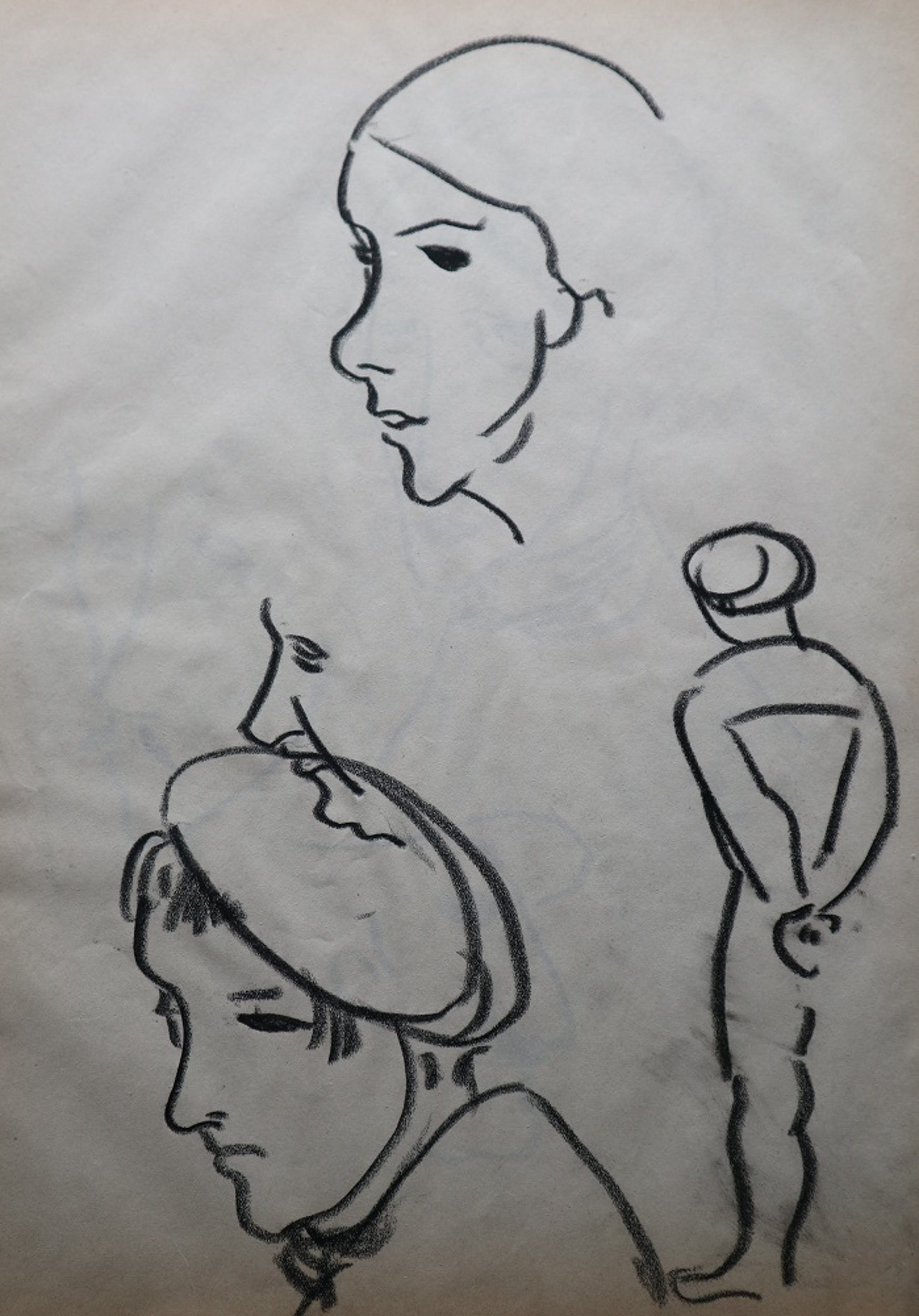 Het betreft bladen uit een studie/schetsboek. sommige hebben een vouwtje maar het merendeel is onbeschadigd!