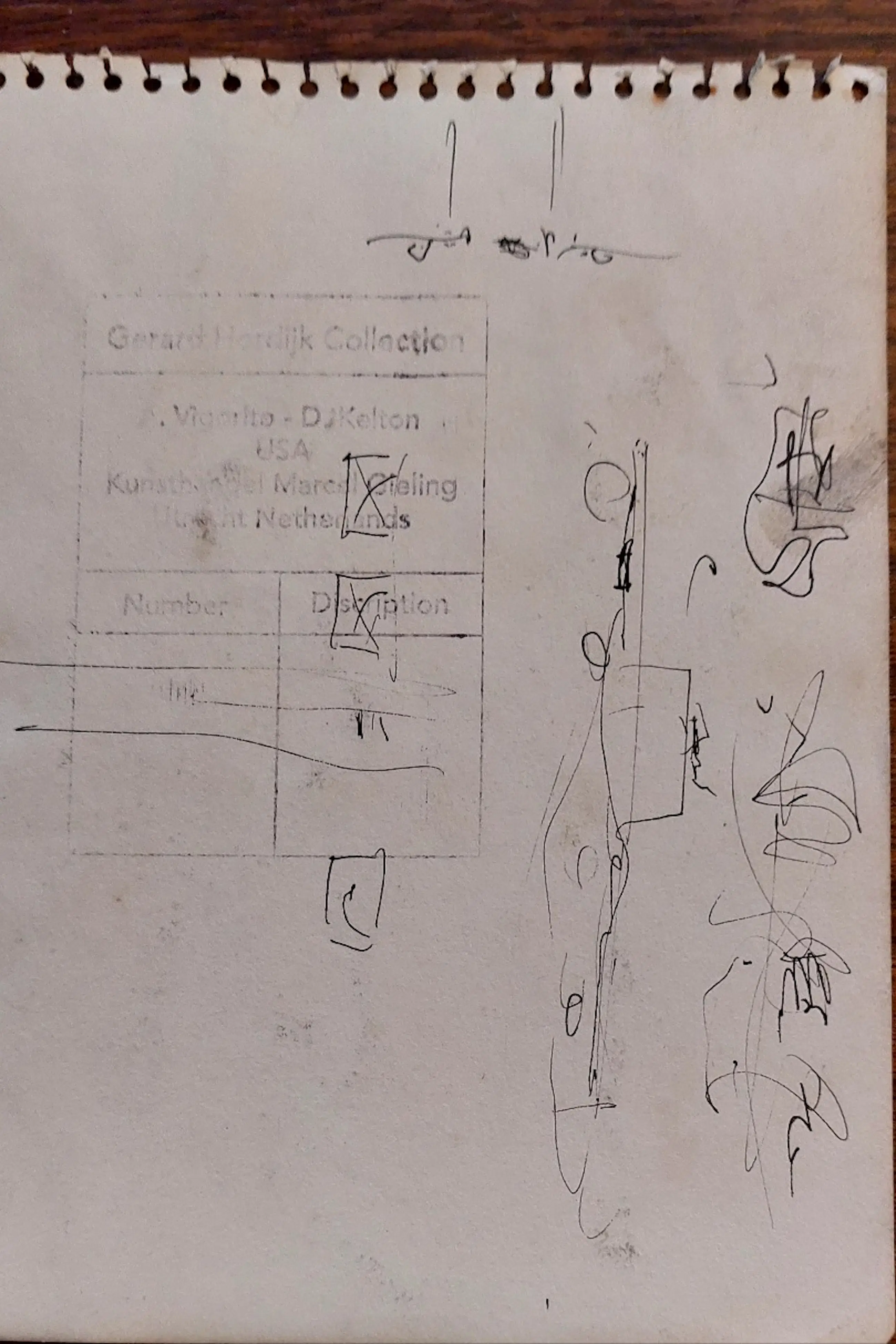 Uit de Amerikaanse nalatenschap van Gerard Hordijk, uit een van zijn schetsboeken. Gemengde techniek, plakaat- en waterverf. Gesigneerd rechtsonder en verso gestempeld. Mooi werk!