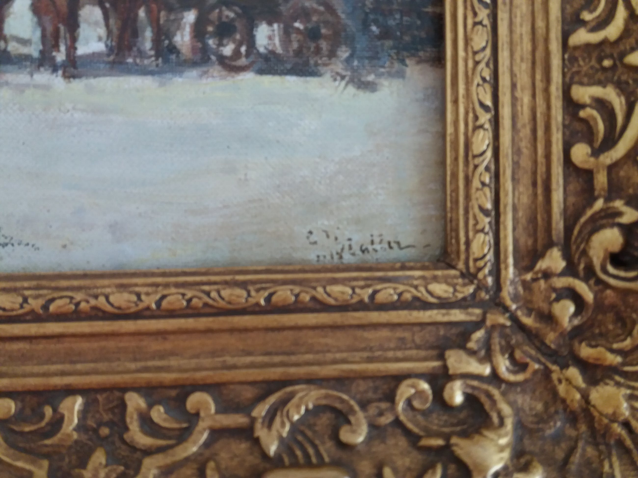 Schilderij is in goede conditie geen craquele aanwezig. De lijst is miniem beschadigd, niet storend.