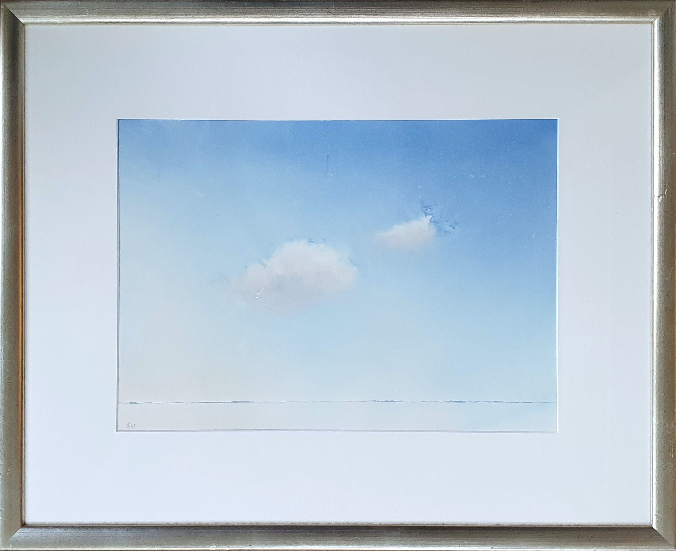 Fraaie karakteristieke aquarel van Gerard Koster met de titel: 'Landschap met wolken'. Het werk is linksonder met de hand gesigneerd met initialen door de kunstenaar.