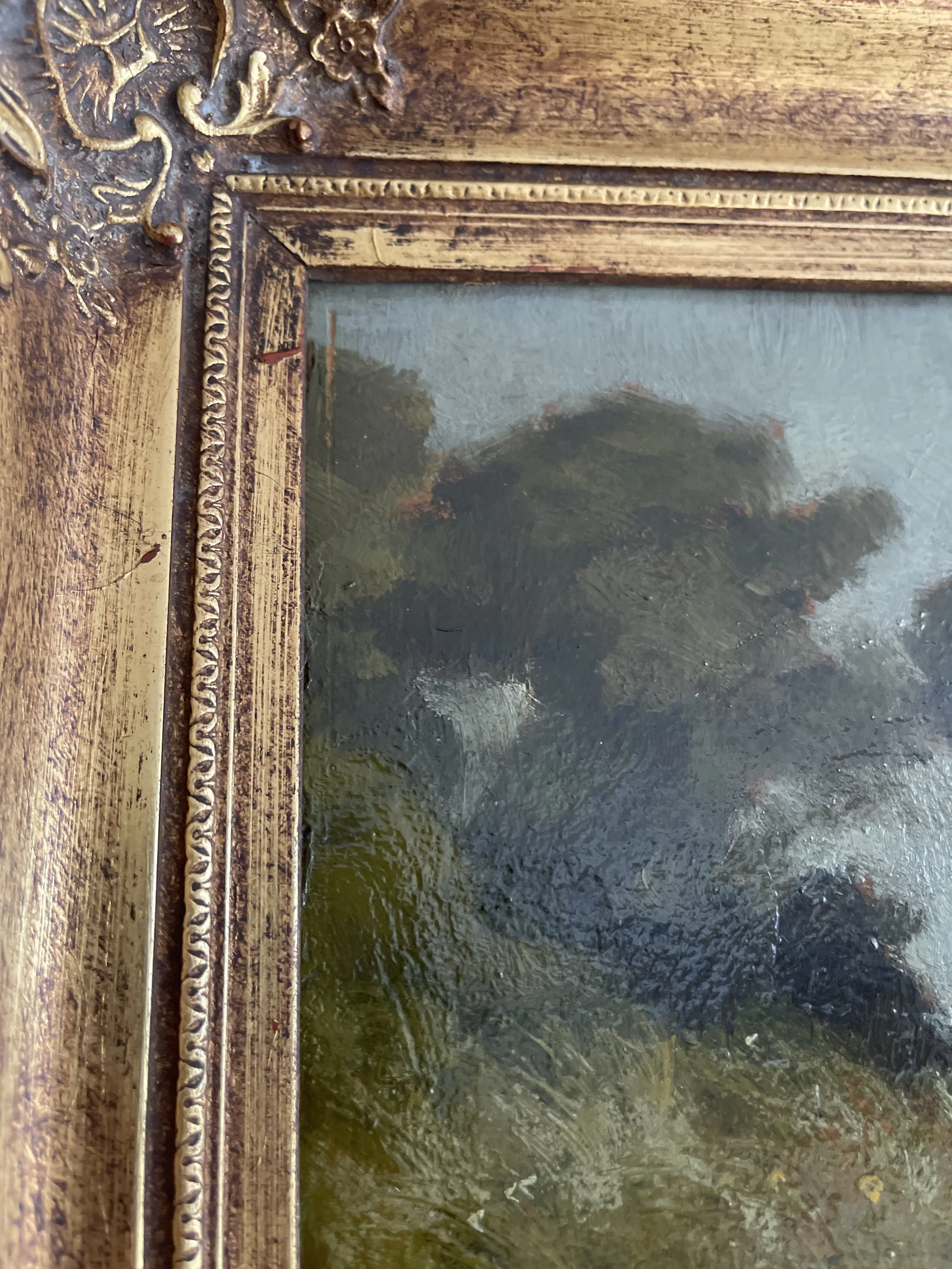 Op de laatste foto’s zie je dat er onderin en links zijkant in het schilder werk beschadegingen zitten. Ik heb me er nooit aan gestoord want het complete plaatje is leuk.