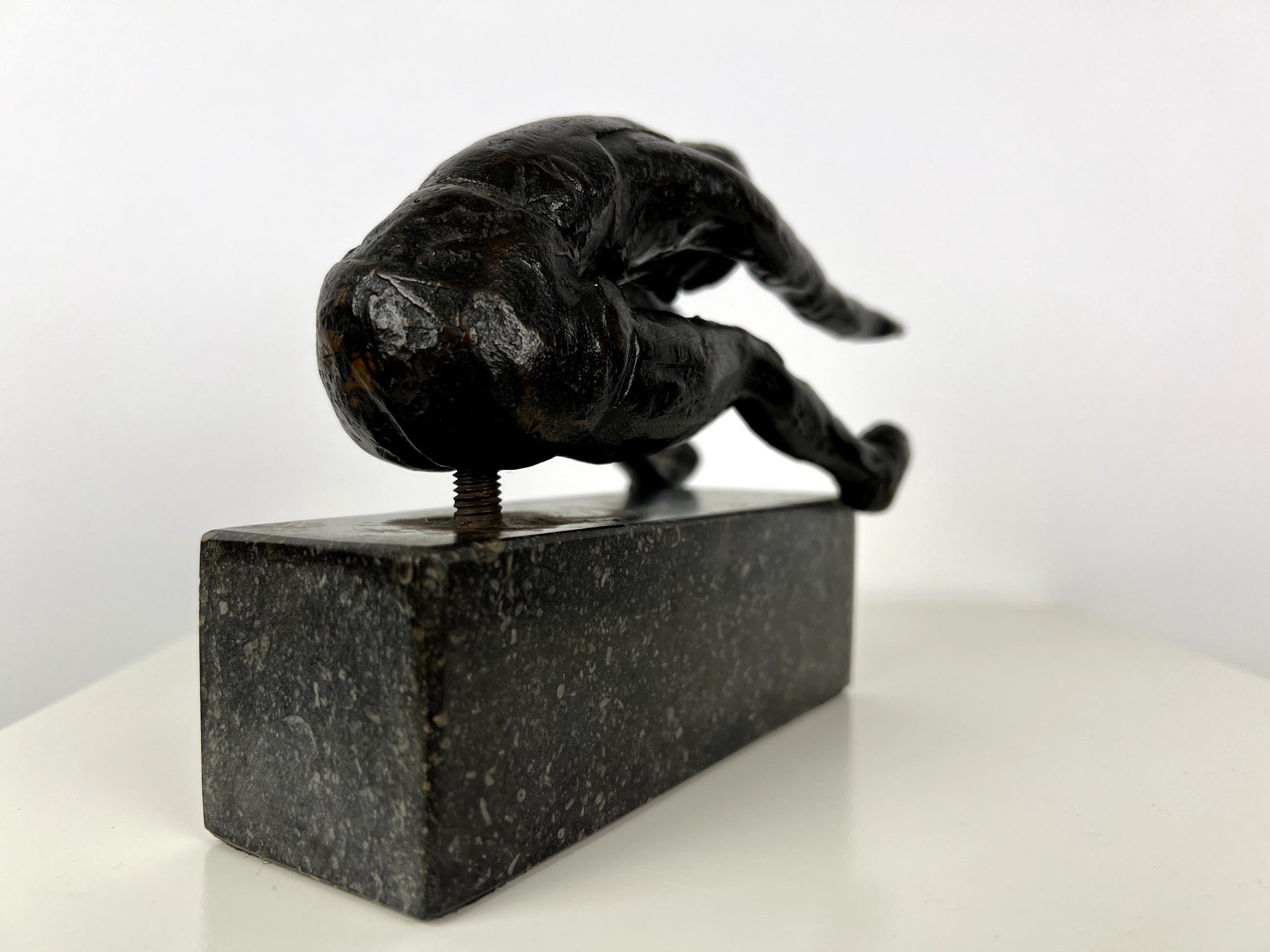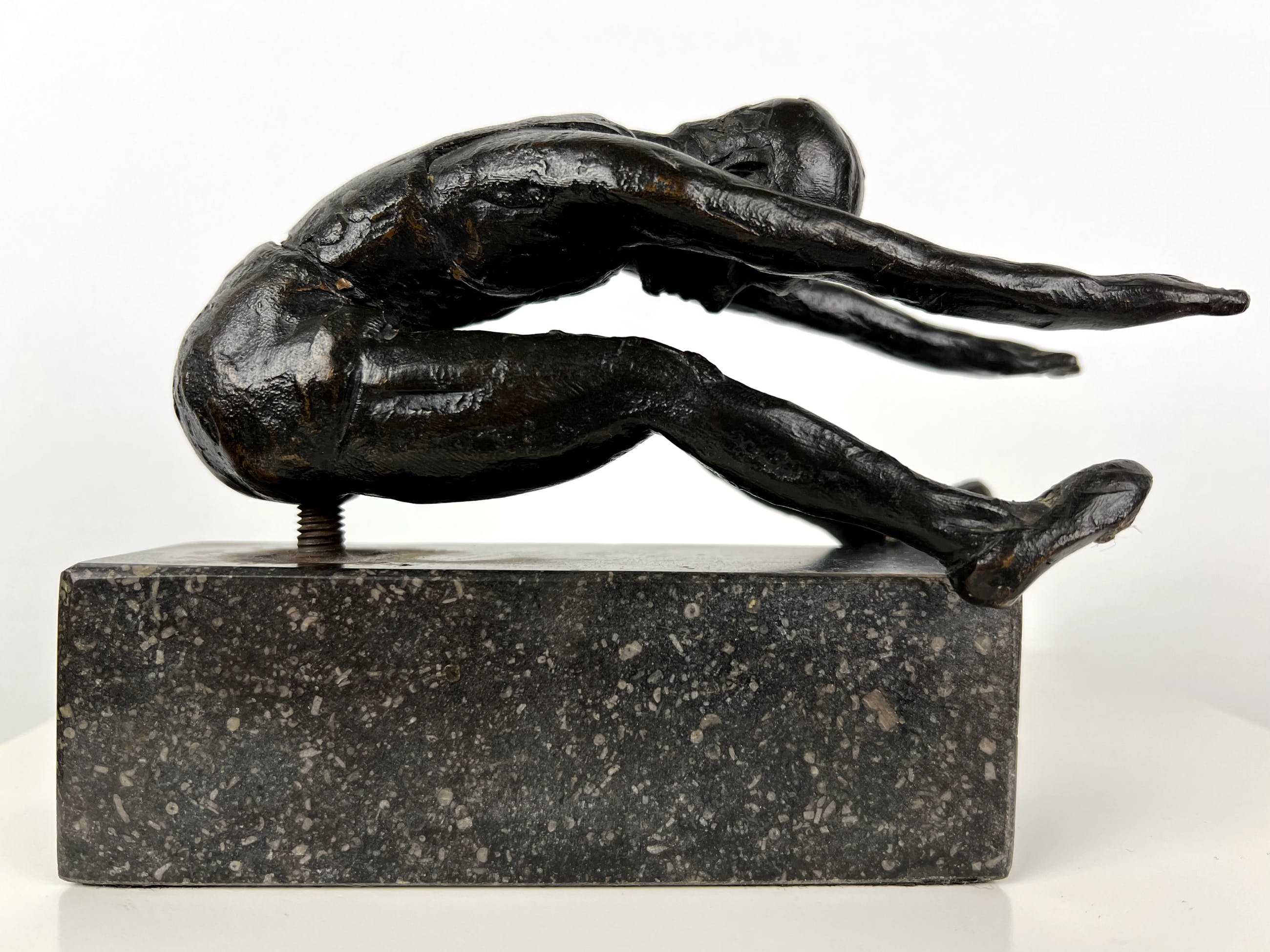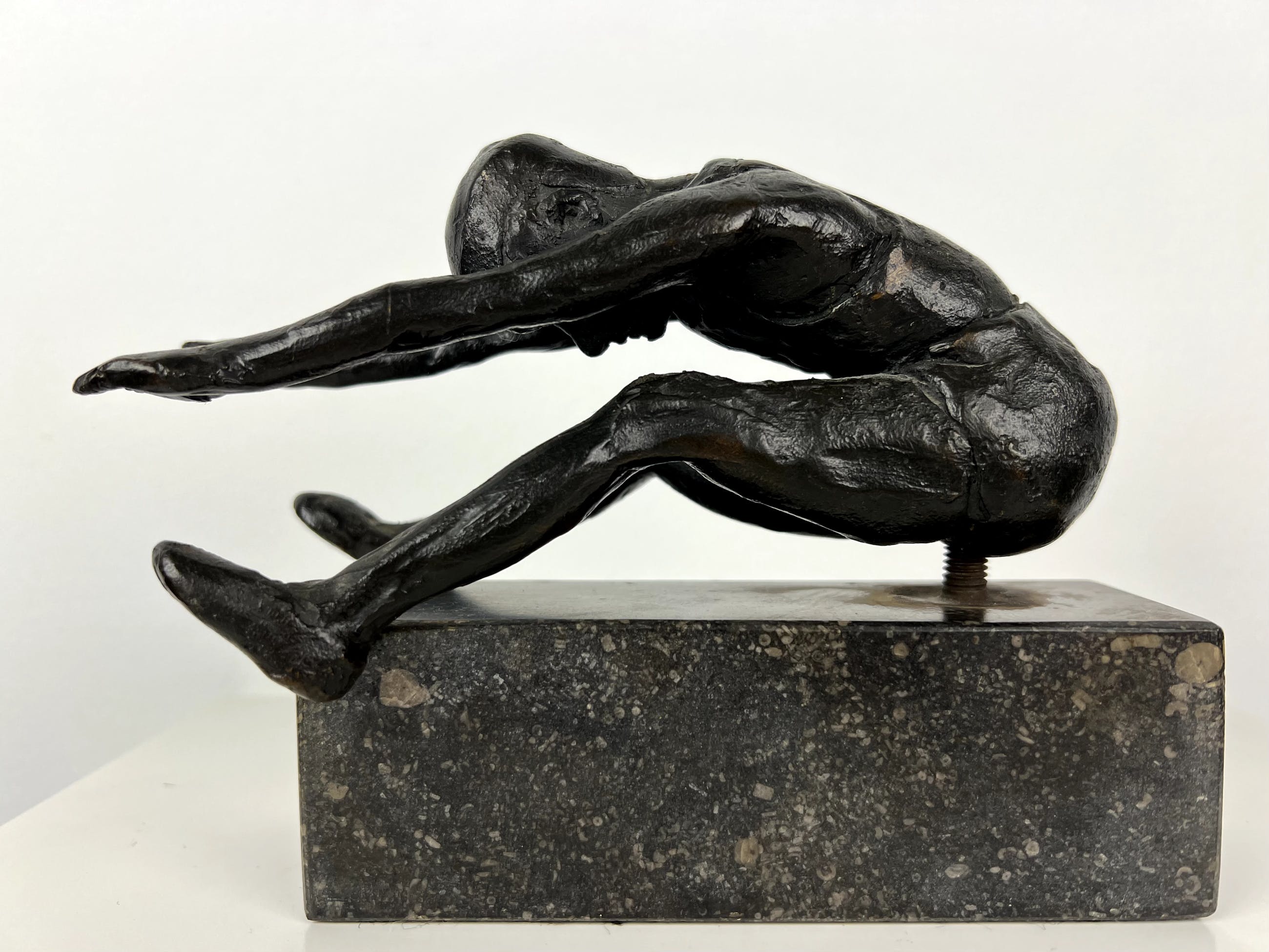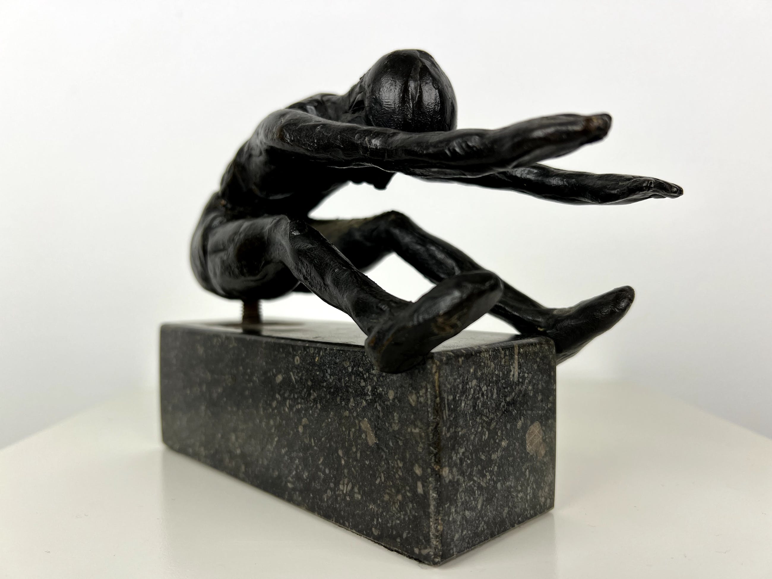 Mooi gestileerd beeld van een turner, uitgevoerd in brons.