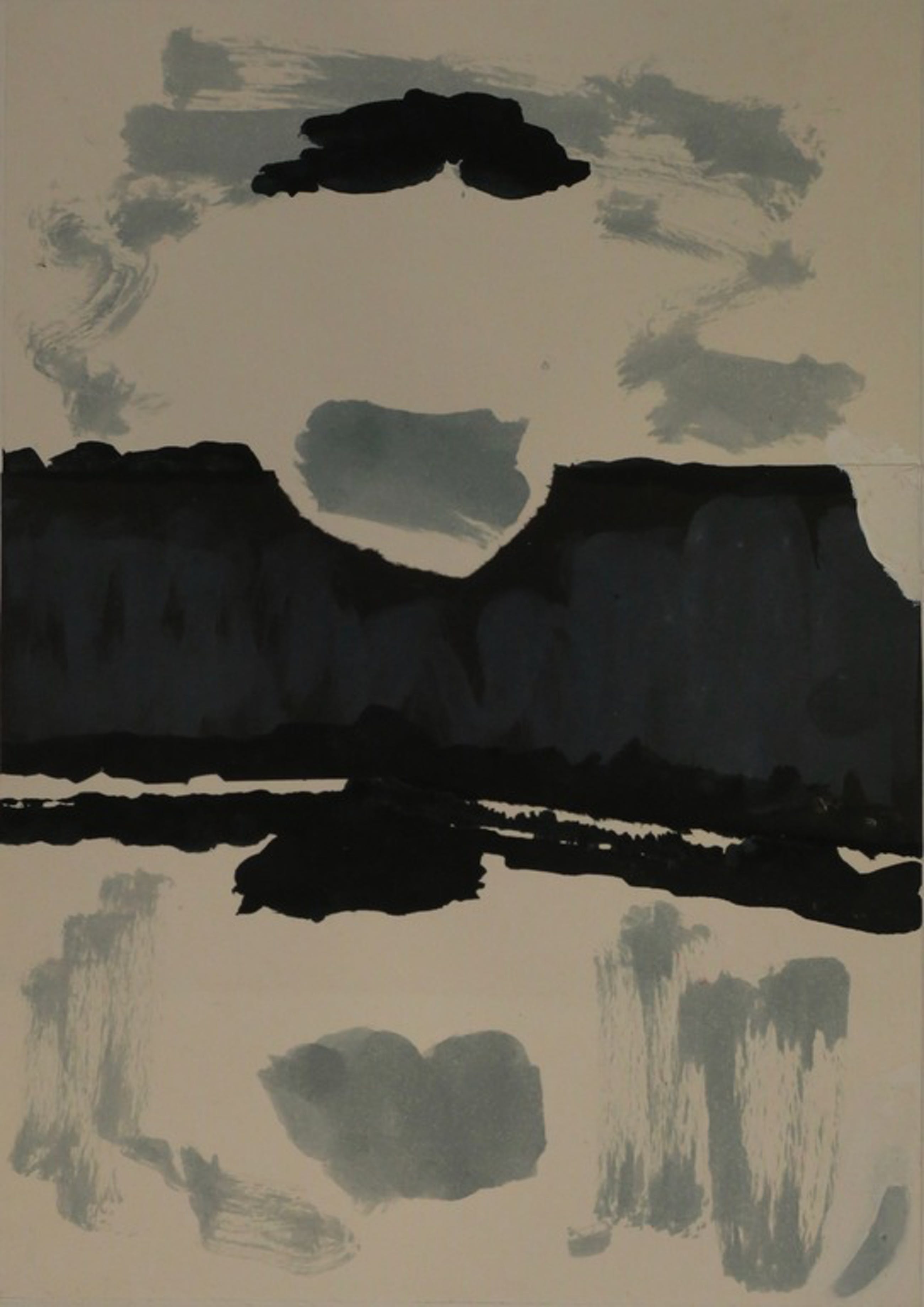 Materiaal: Gemengde techniek, o.a. acryl, collage, aquarel op papier, bevestigd op passe-partout