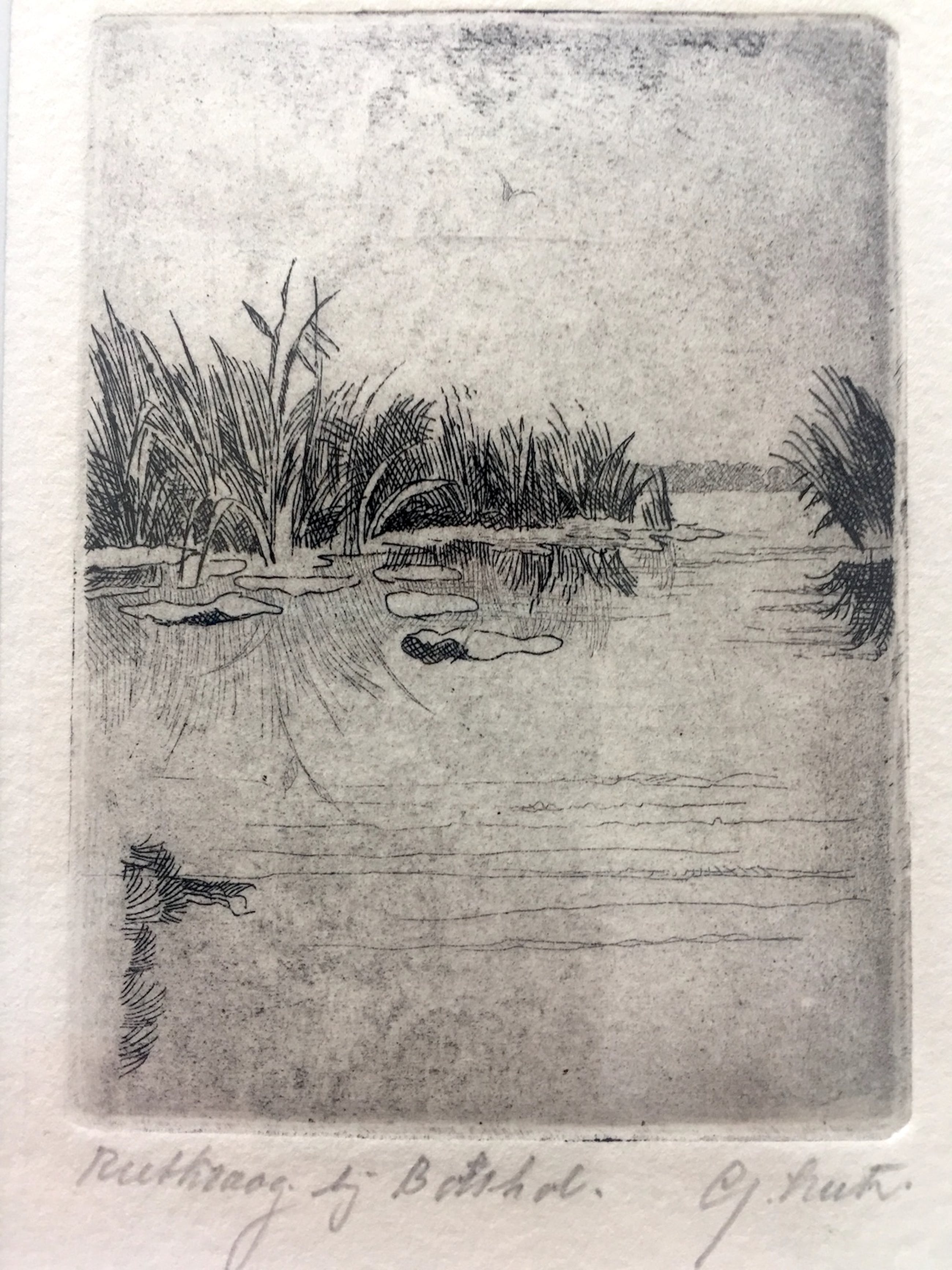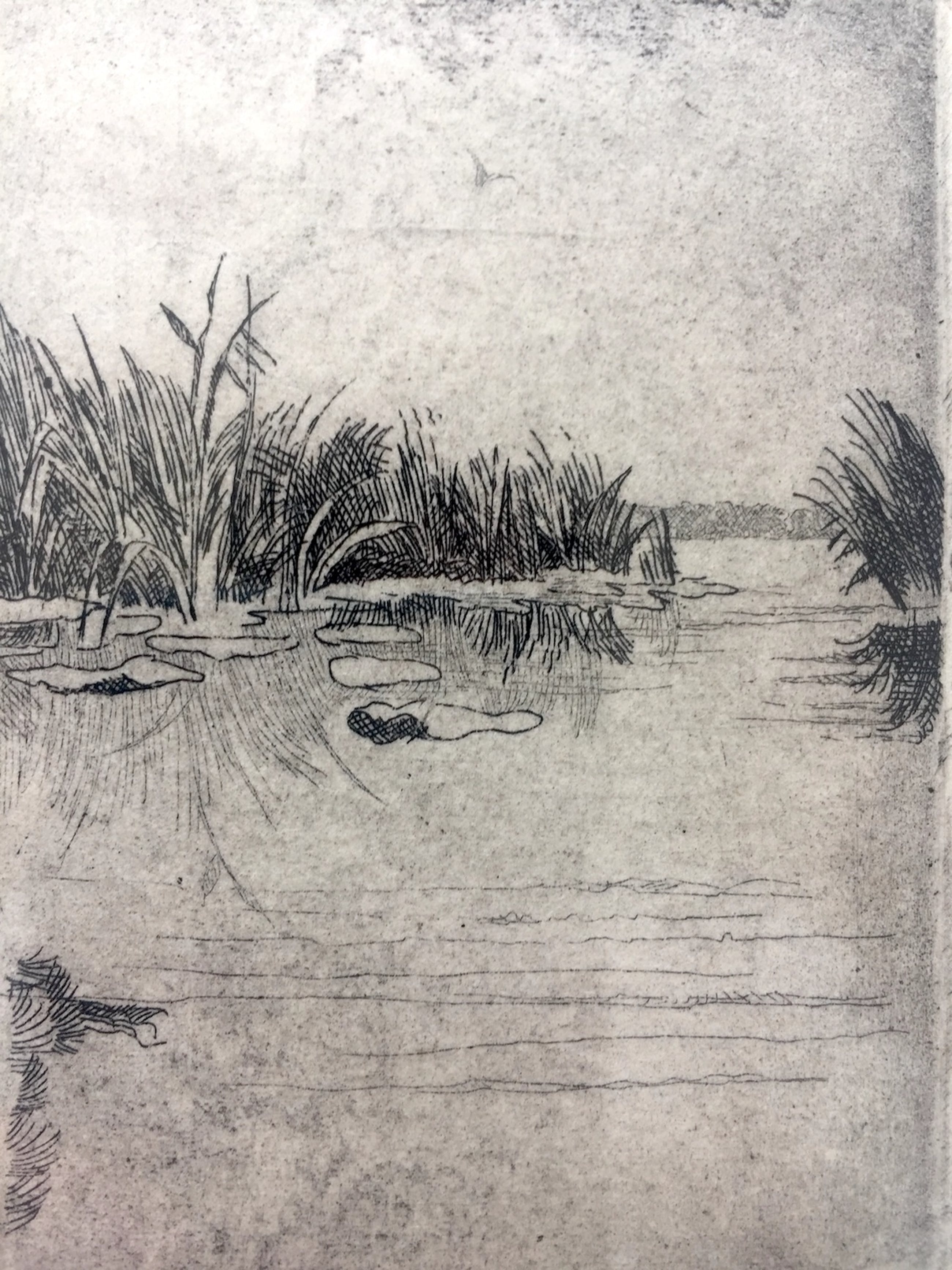 Gerard Lutz Rietkraag bij Botshol Ets 25 x 19,5 cm