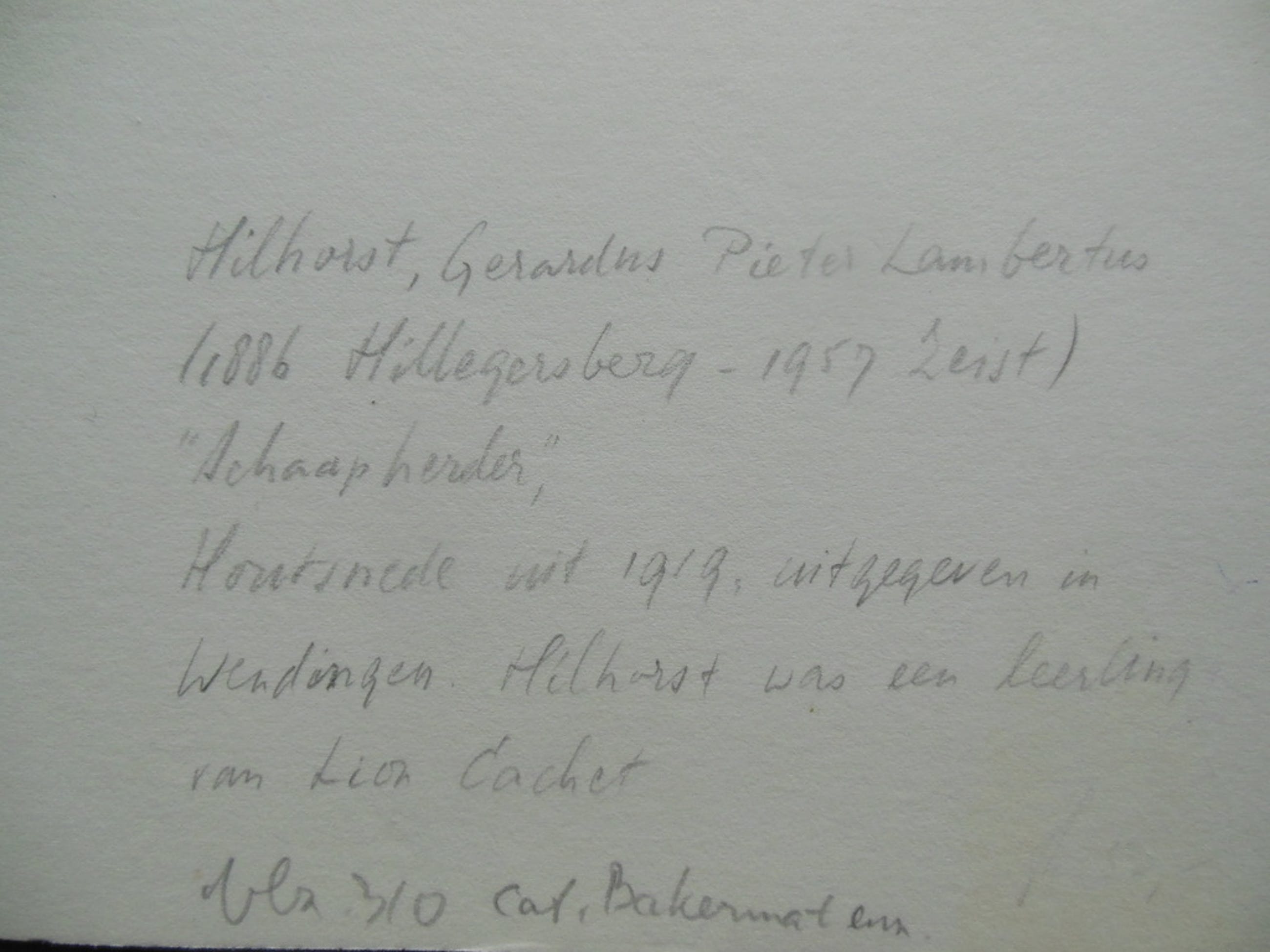 Linksonder op het passe-partout staat de bijbehorende informatie geschreven in potlood.