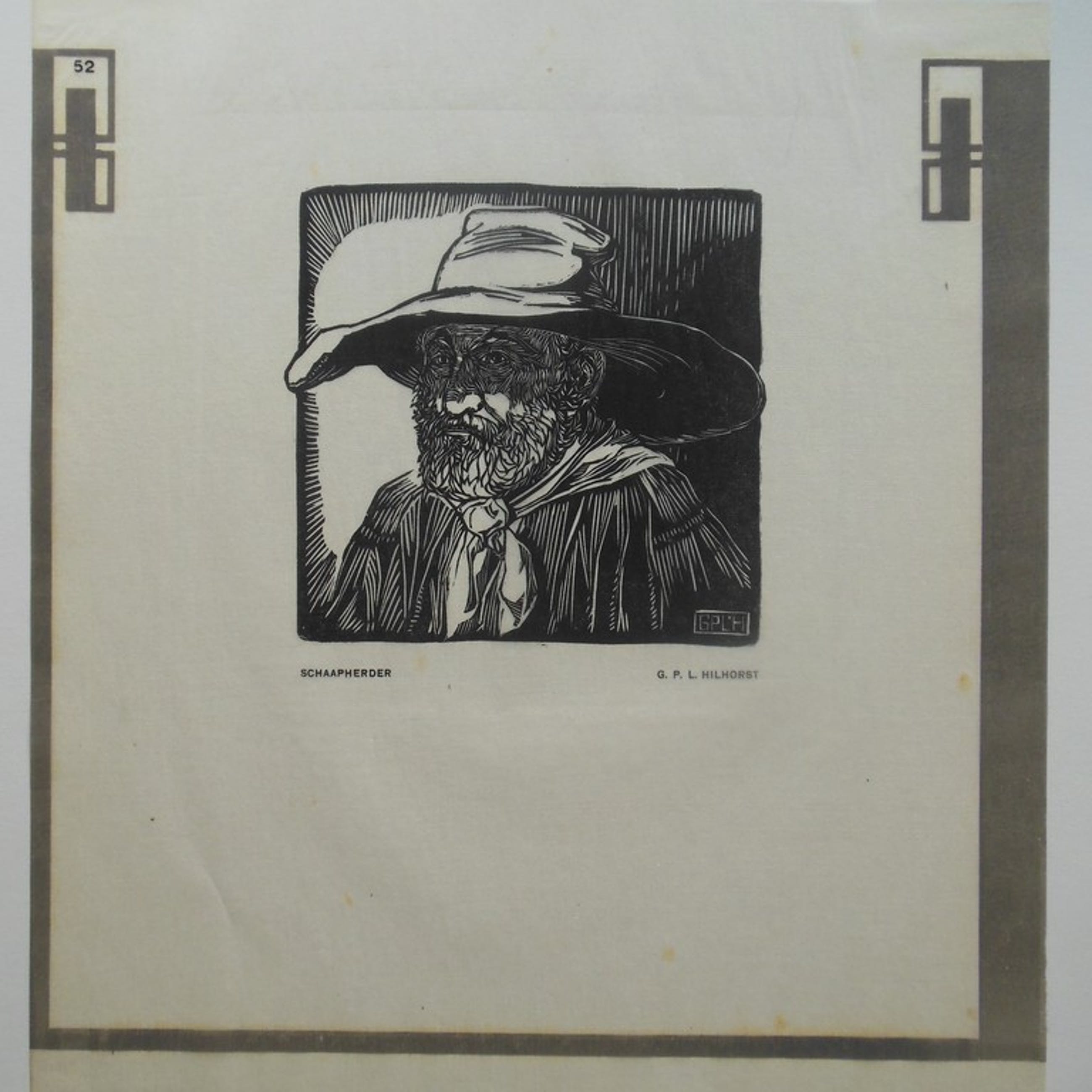 Gesigneerd met monogram in de houtsnede: GPL.H