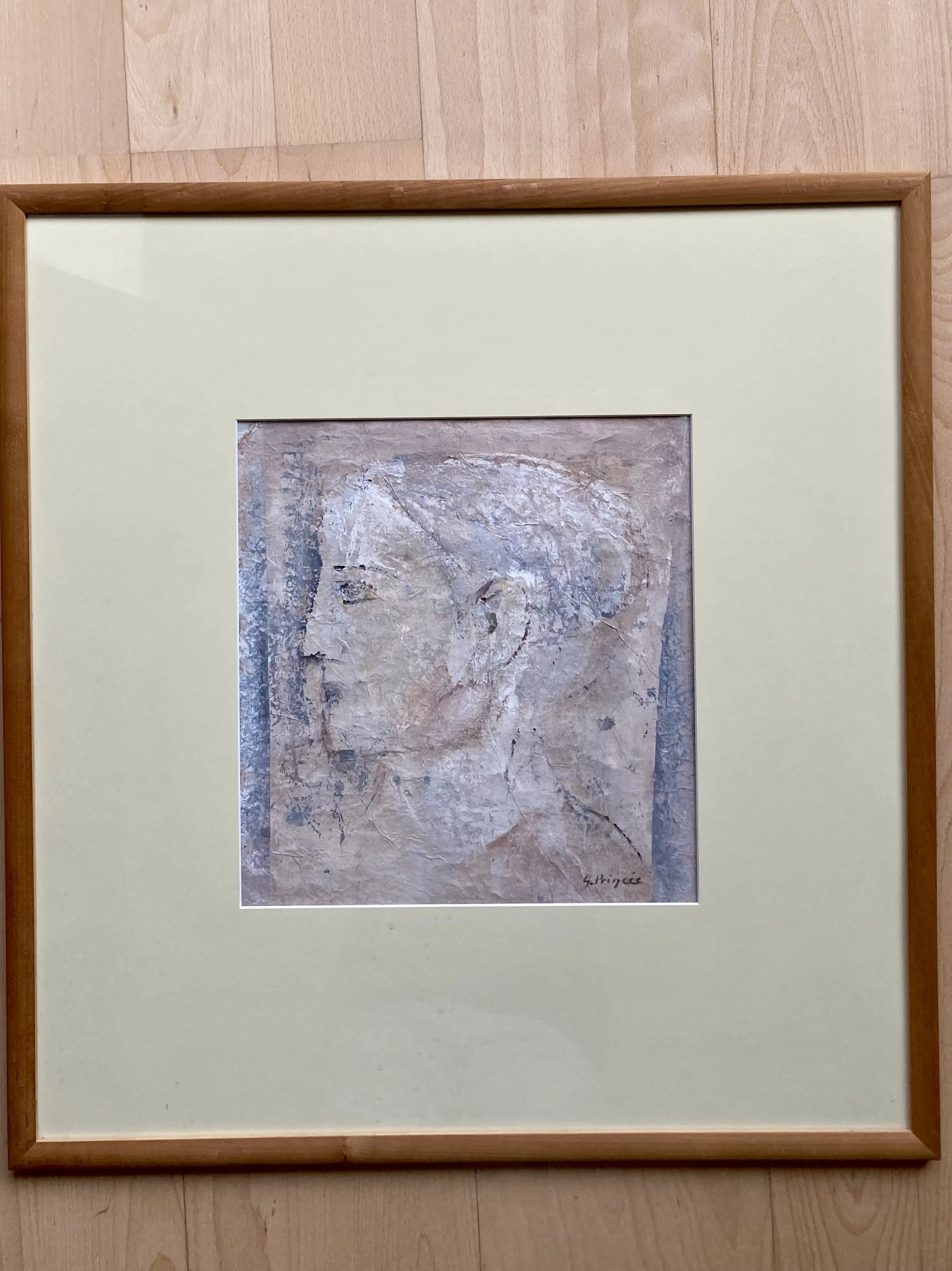 Prachtig portret van vrouw uit Romeinse/Griekse oudheid in de typische stijl van Princée. Gemengde techniek/gouache 1992, in prima staat en mooi ingelijst in houten lijst met passe partout.