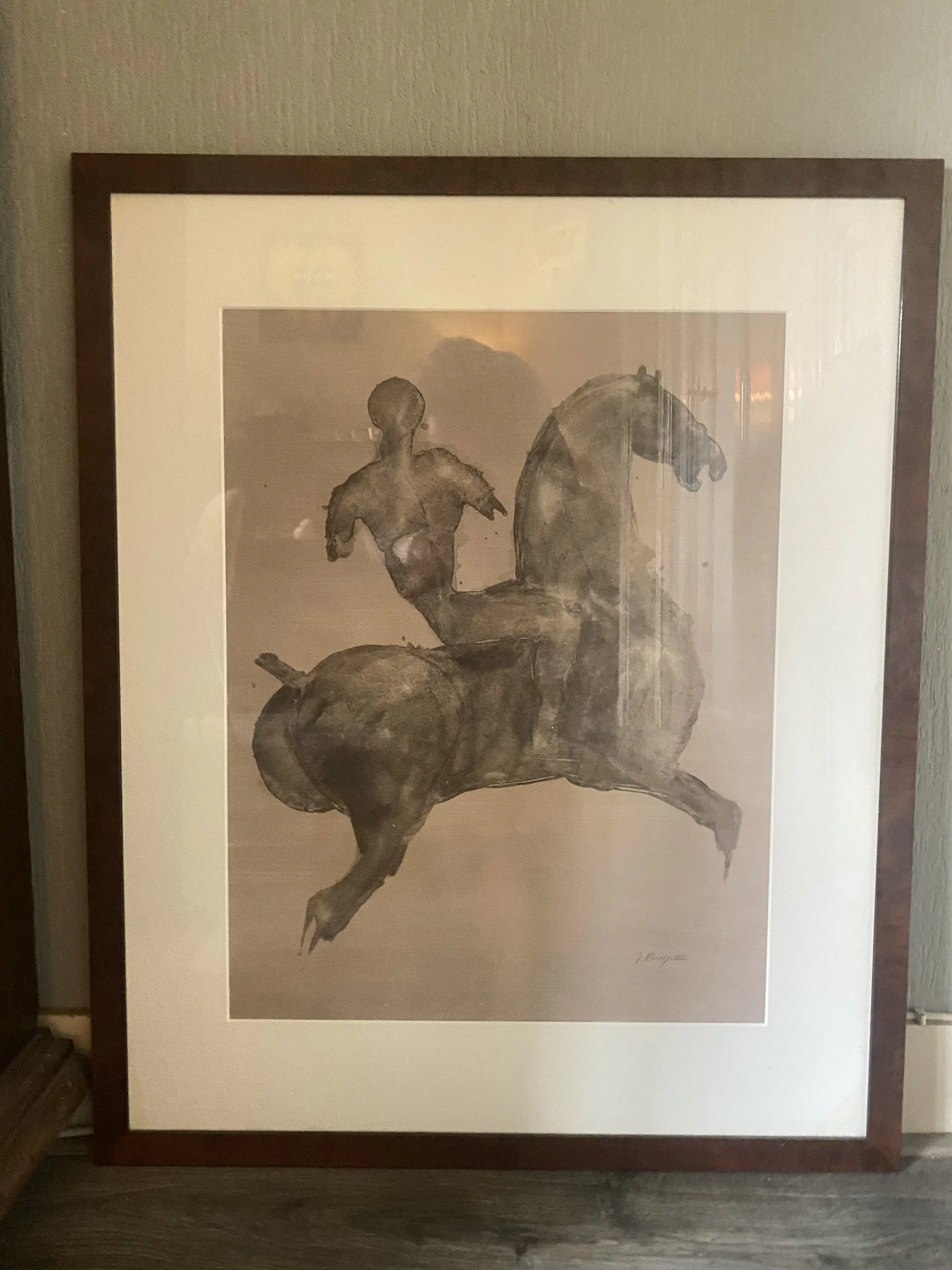 Origineel schilderij van Gerard Princee, voorstellende een paard en ruiter. De afmetingen van het schilderij zijn 60 x 45 cm. Inclusief lijst zijn de afmetingen 85 x 70 cm. Een prachtig kunstwerk voor de liefhebber.