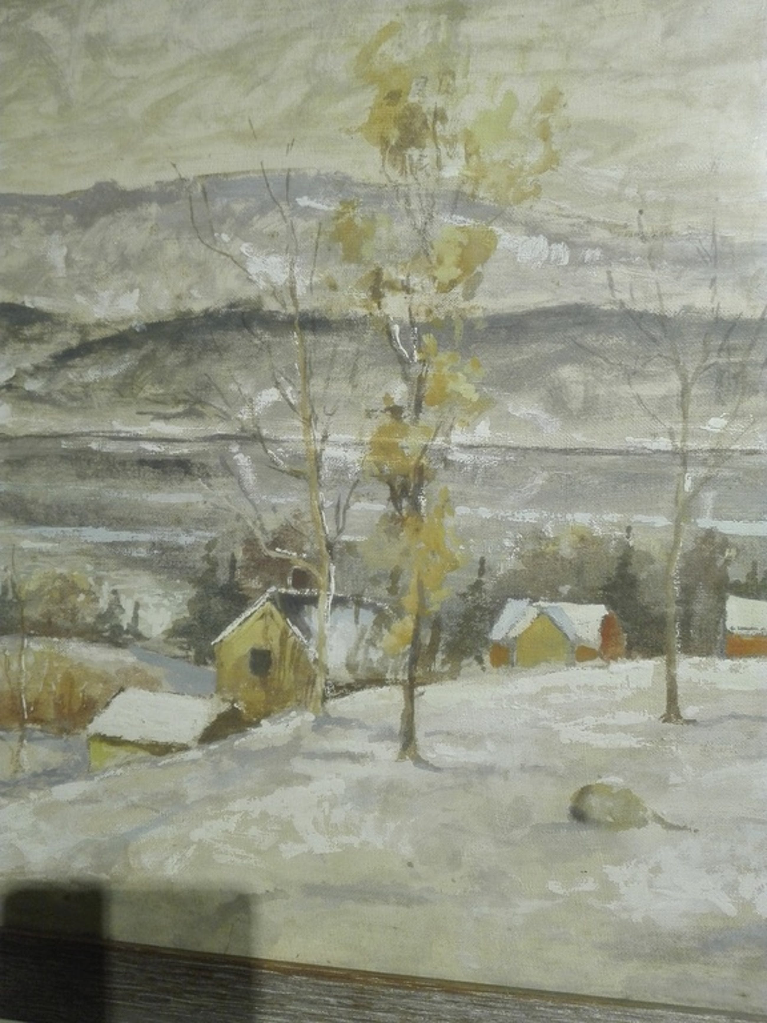 Olieverf op doek, schilderij verkeerd in goede staat. De lijst heeft enkele kleine beschadigingen op de rand.