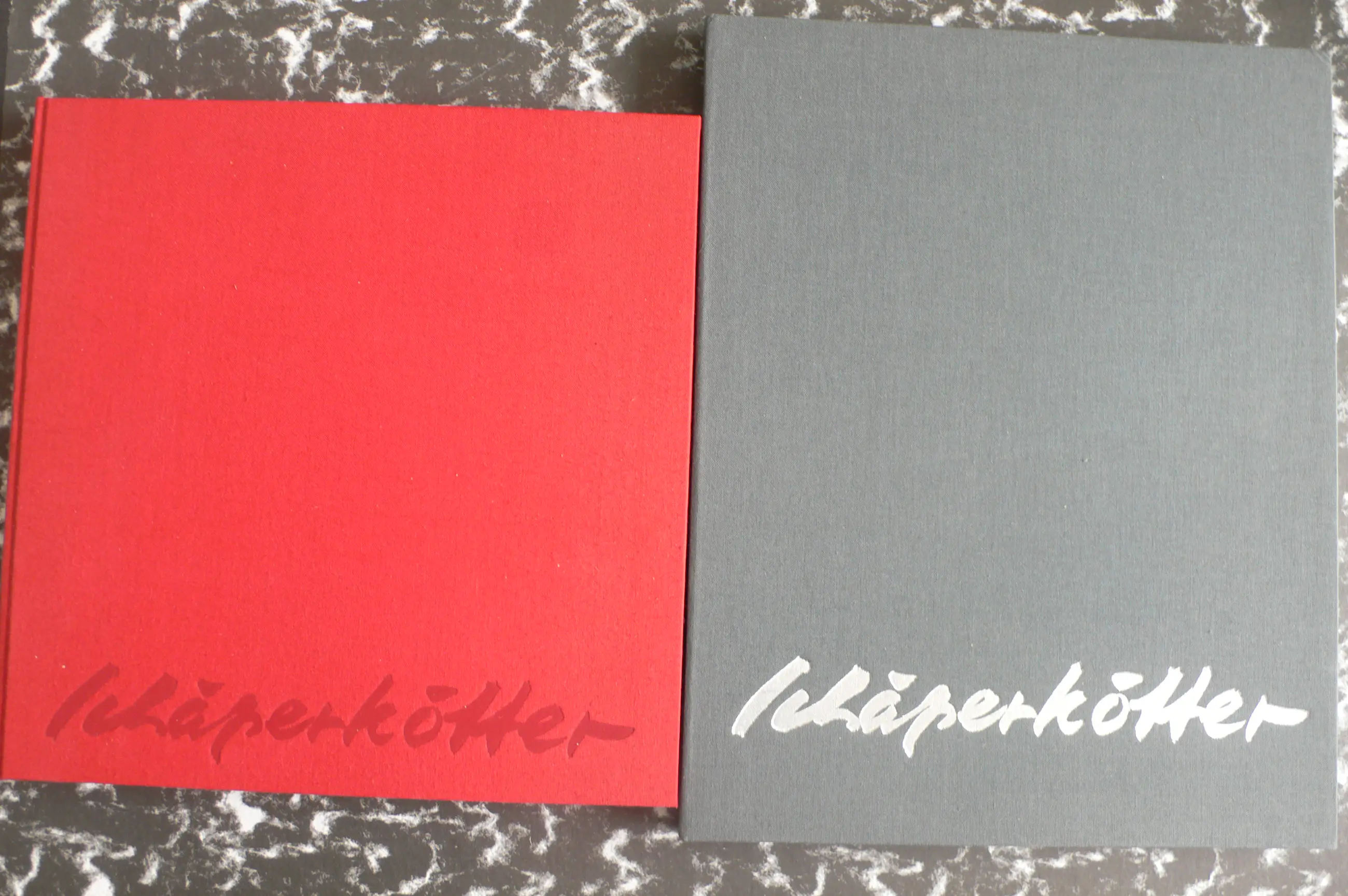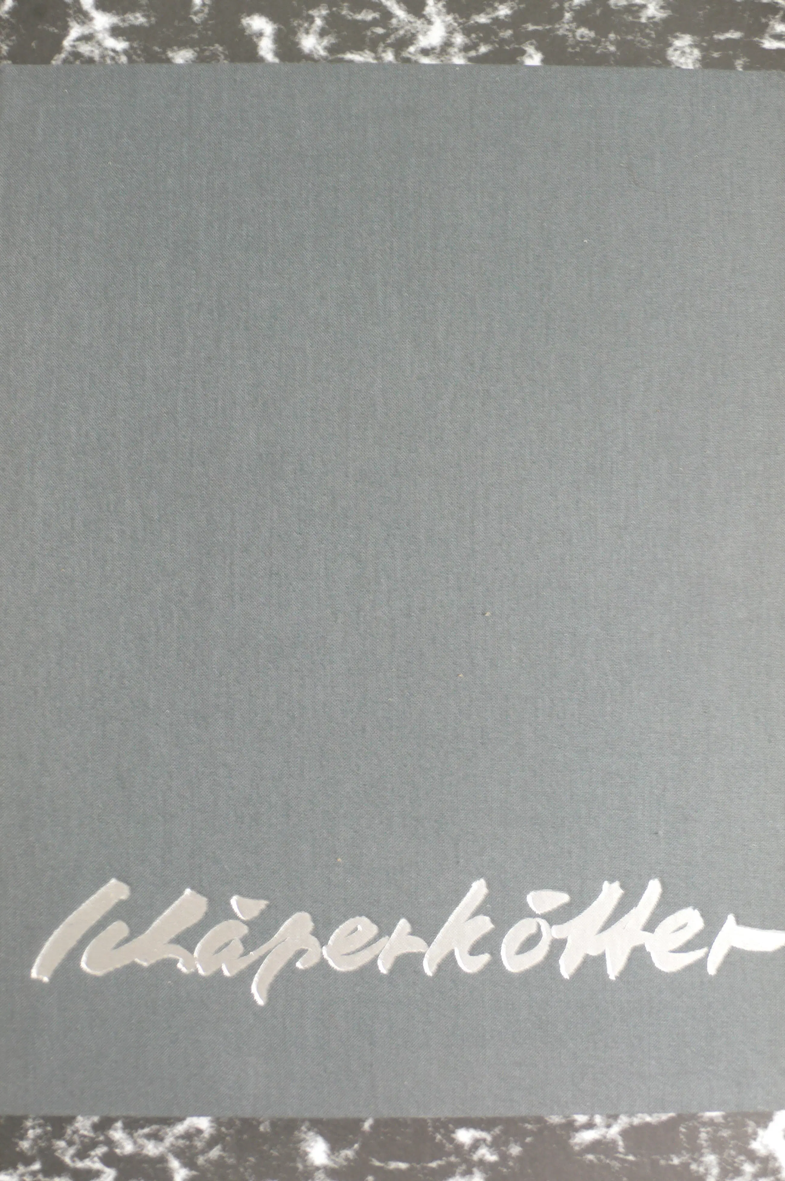 1) Schäperkötter schilderijen en gouaches 1979-1988 - Uitgeverij Van Spijk, 1988 - 64 p. - Mooie paperbackuitgave in fraaie, beschermende linnen overslagdoos - In zeer goede staat - Met vriendelijke opdracht op titelpagina - Staat boek en doos is zeer goed - Formaat: 31,5 x 25 cm. Met twee (uitnodigings)kaarten.