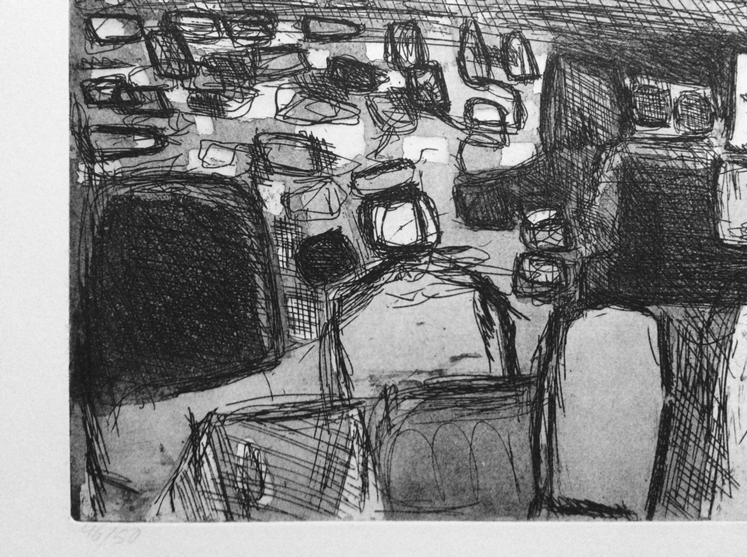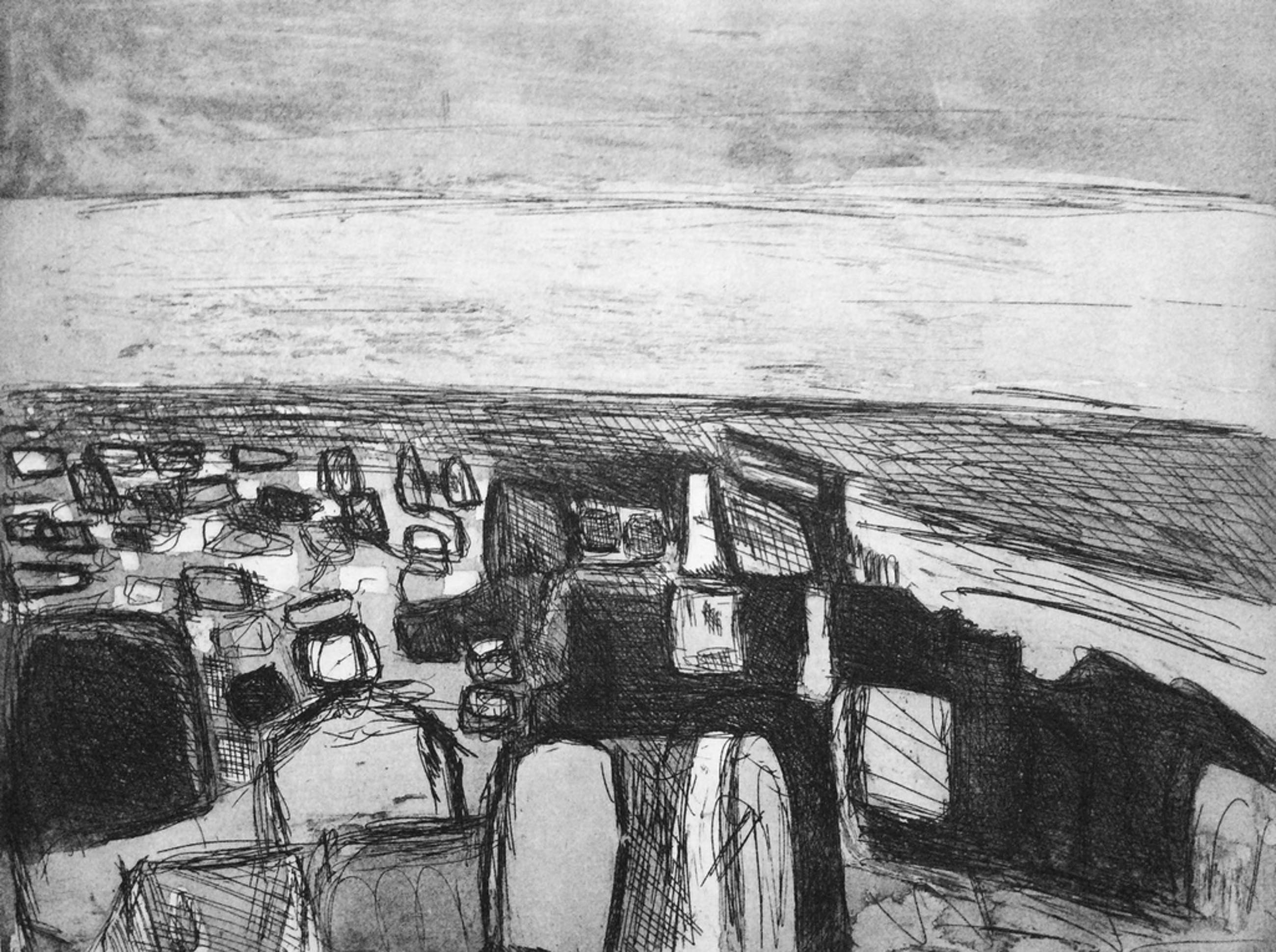fraaie ets van Gerard Schäperkötter: Het strand. Uitgave voor Grafiek 73. Formaat incl. 65 x 50 cm, ets grootte 49 x 39 cm. Het blad is lichtelijk verkleurd aan de rand en kent lichte vouwen rechts boven - allemaal ruim buiten de ets zelf. Hand gesigneerd r.o. 73, oplage 46 x 50 cm.