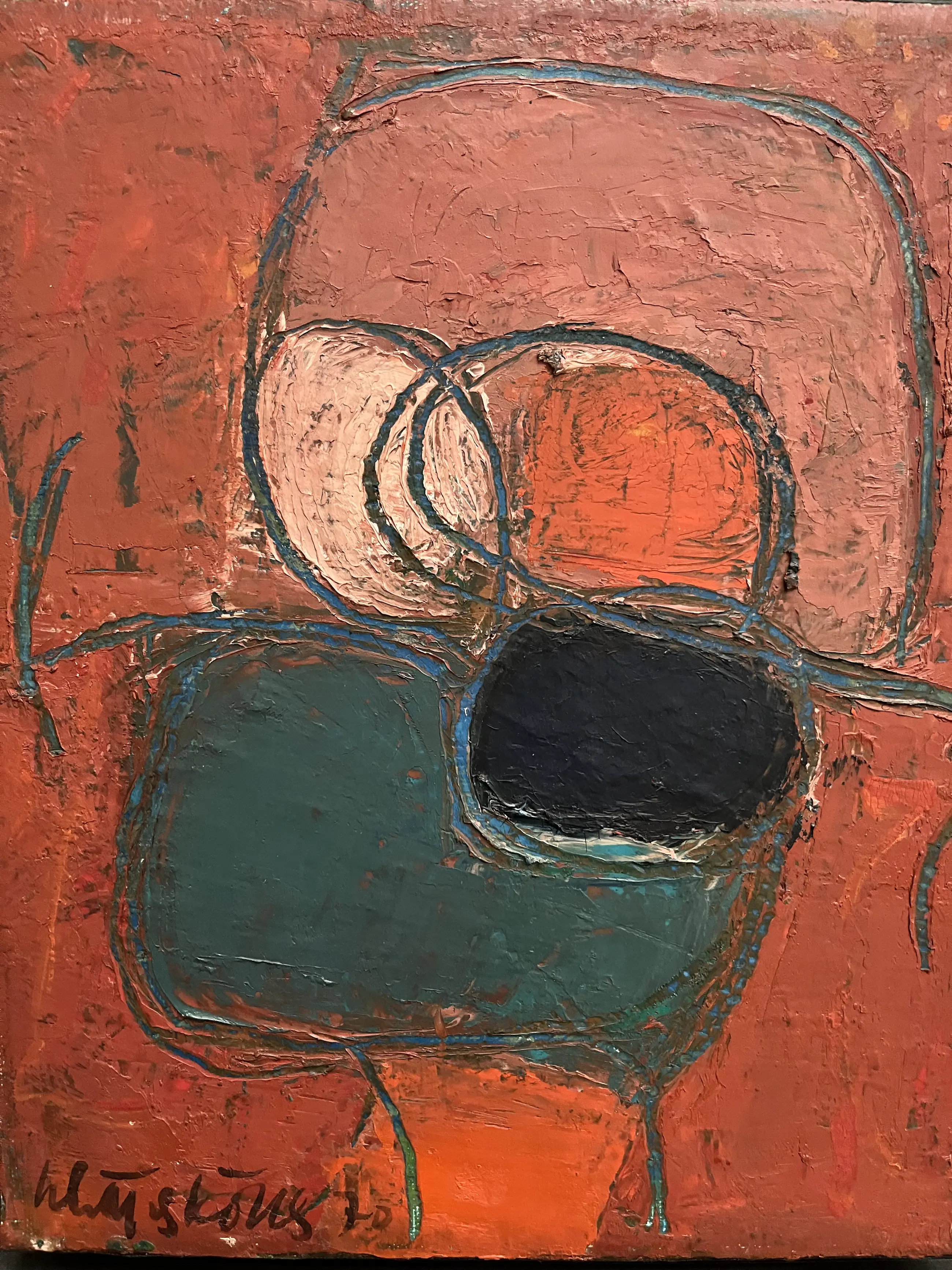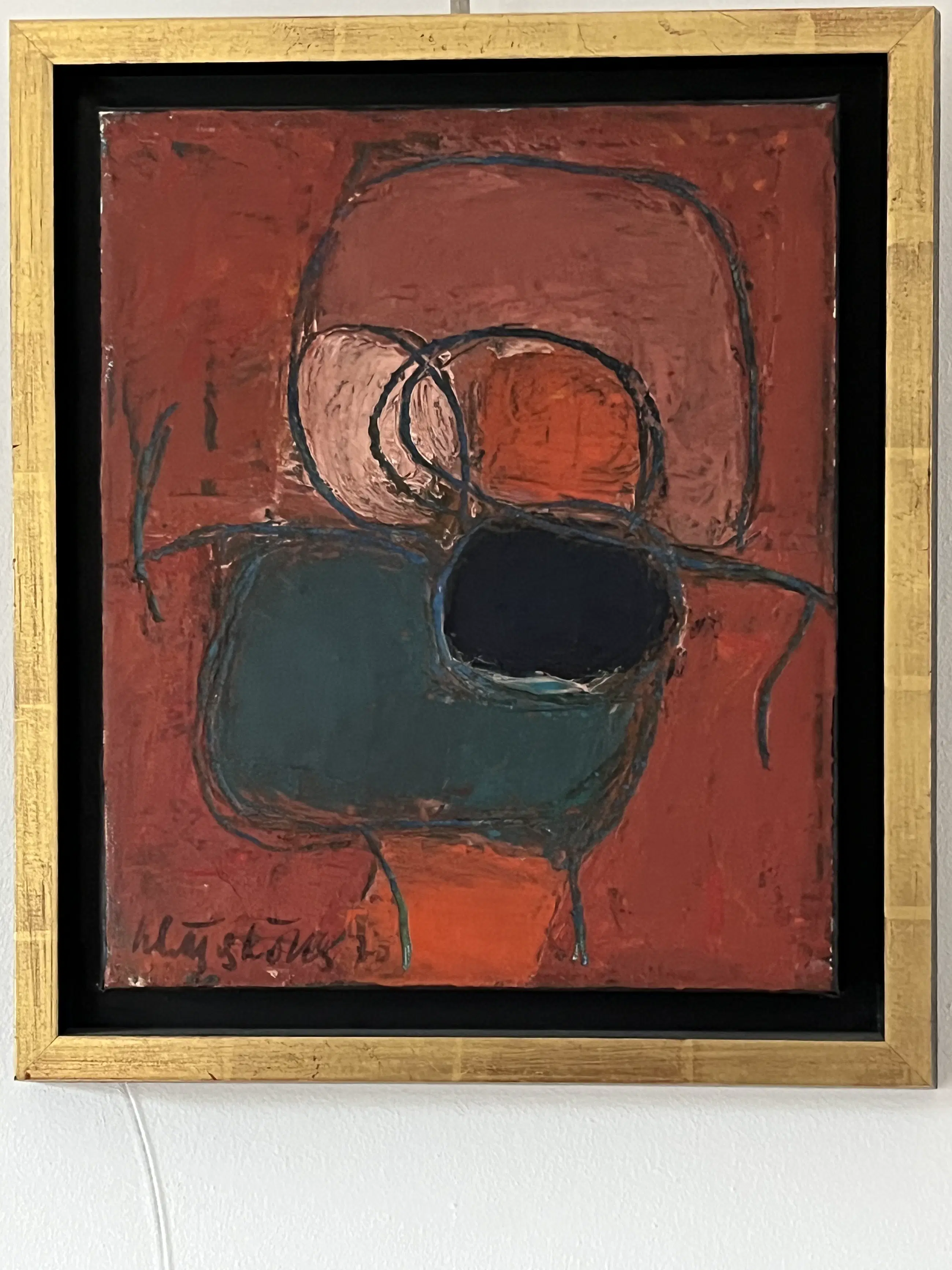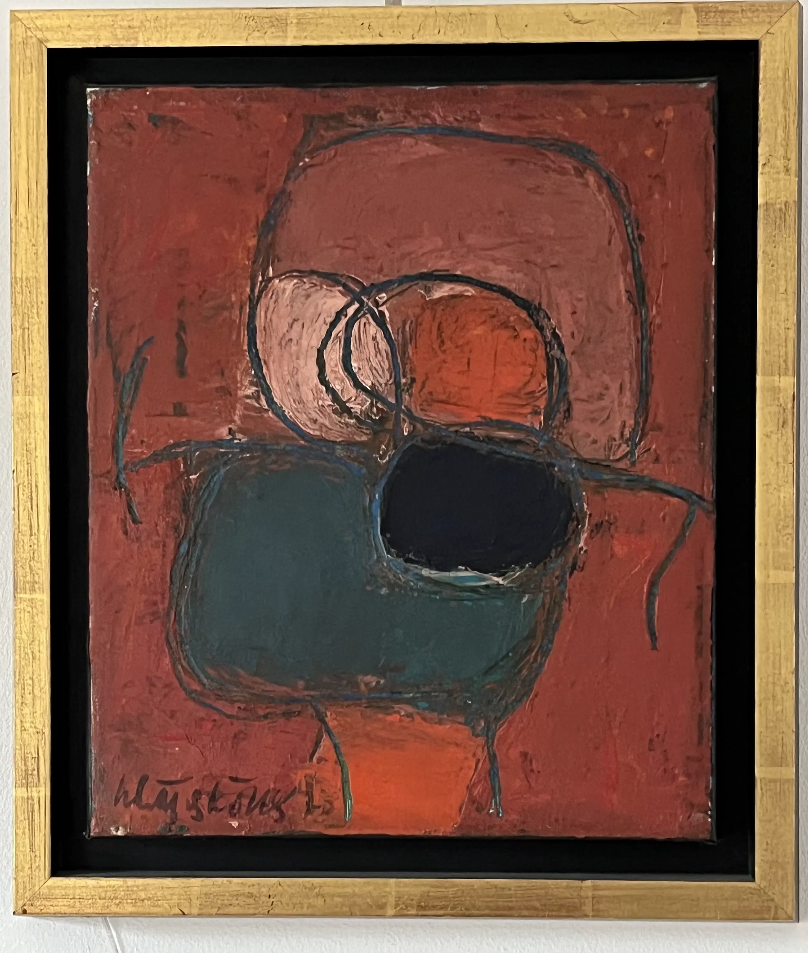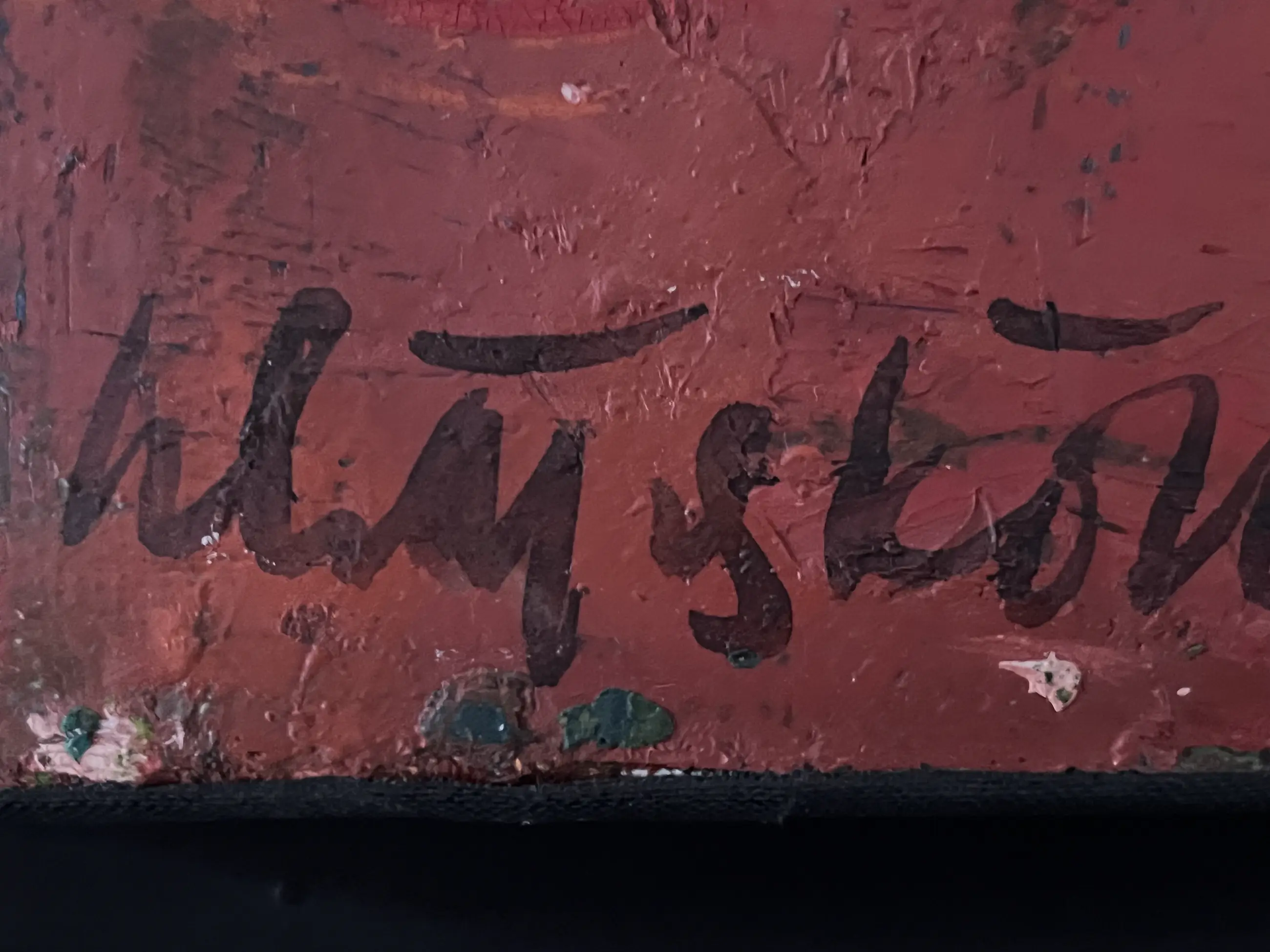 Fraai klein schilderij. Heeft helaas wat kleine imperfecties onder de signatuur. Gelijst in goudkleurige houten baklijst. Kan zo aan de muur.