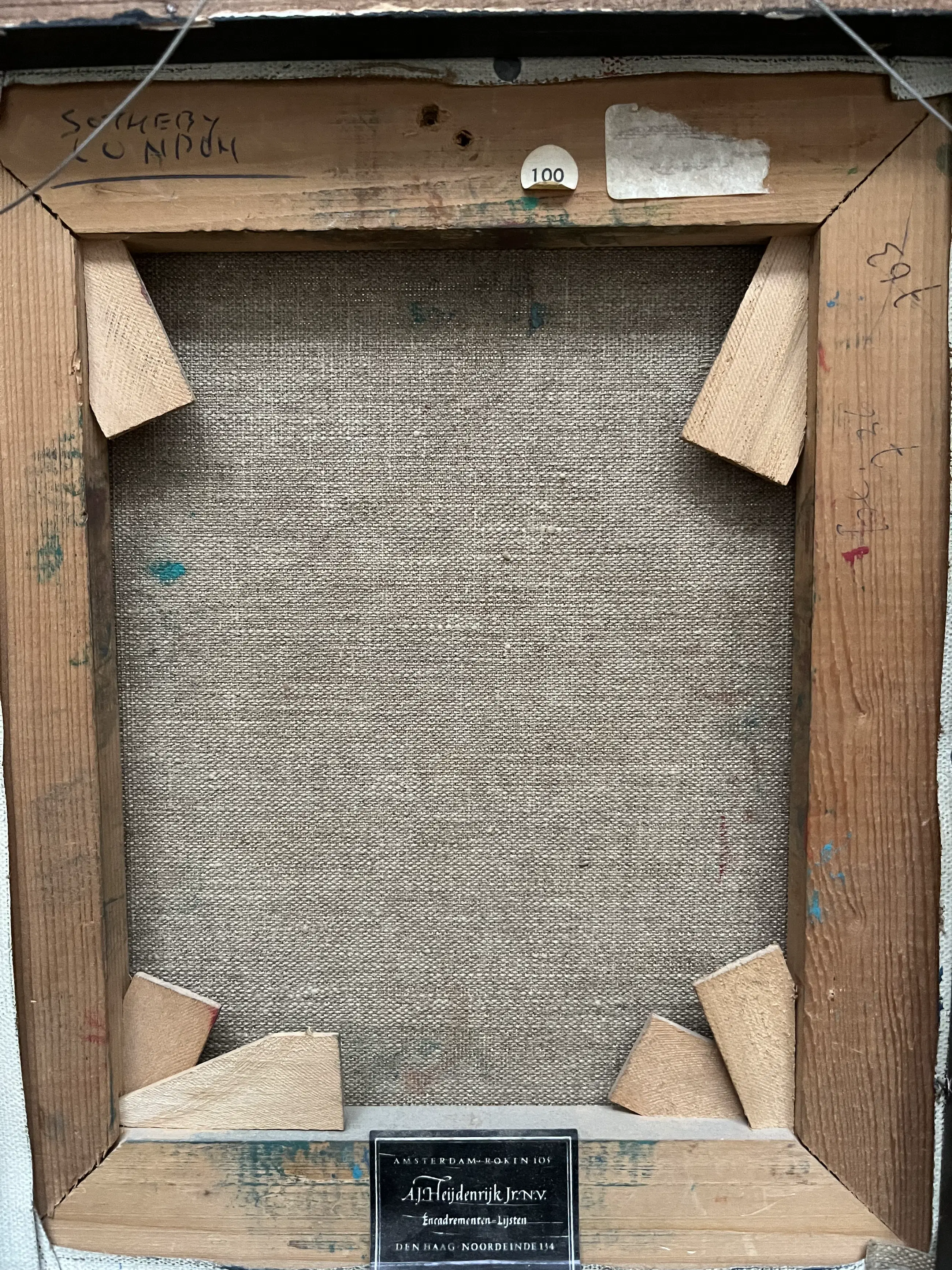Afmeting doekje 30 x 25 cm. Inclusief lijst 37 x 32 cm.