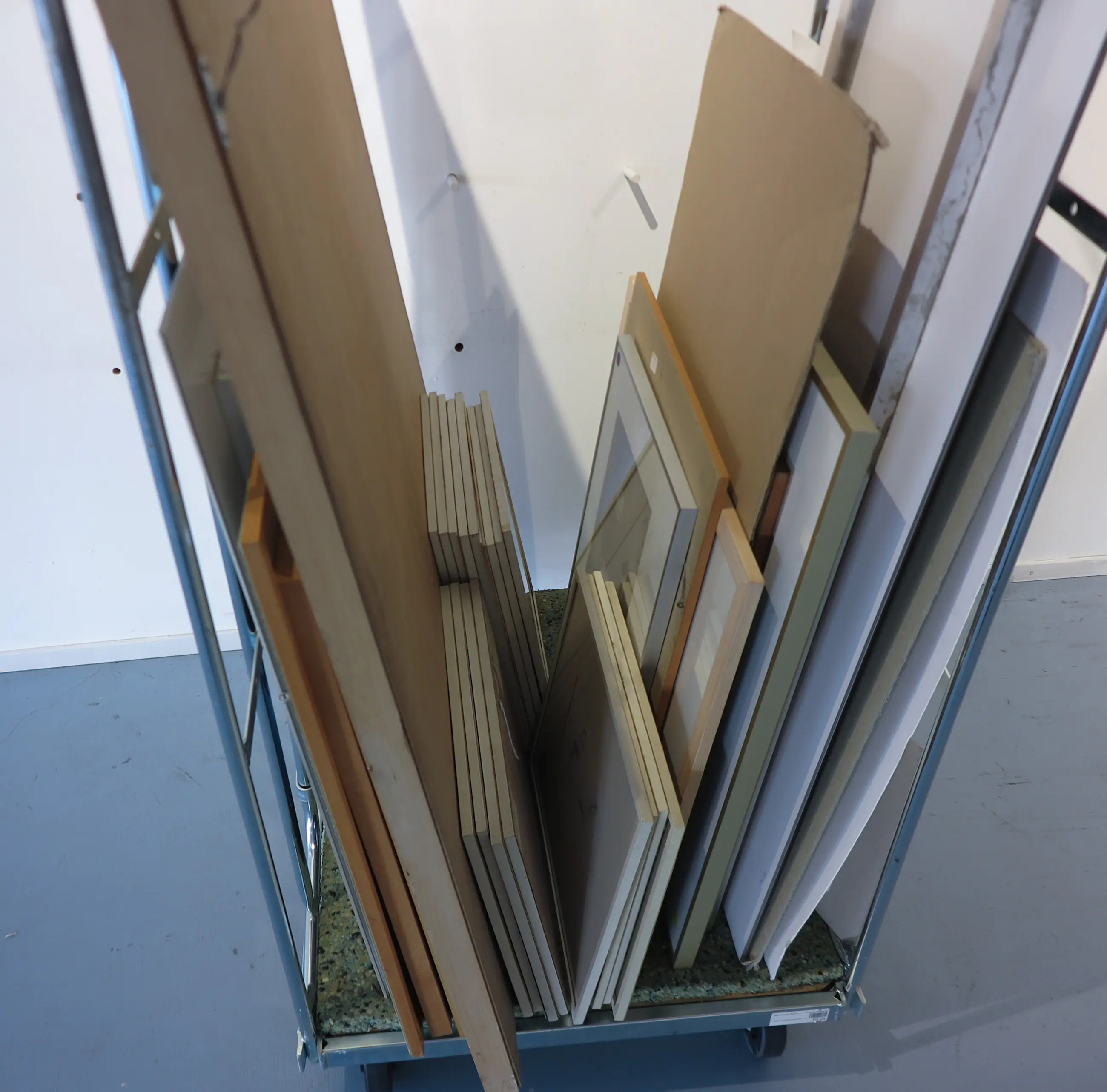 Passe-partout/lijsten: Beschadigingen aan lijsten worden niet beschreven. Indien een werk achter glas is ingelijst en het glas gebroken is, zal dit wel vermeld worden. Passe-partouts worden op geen enkele manier gegarandeerd en ook niet altijd meegezonden.