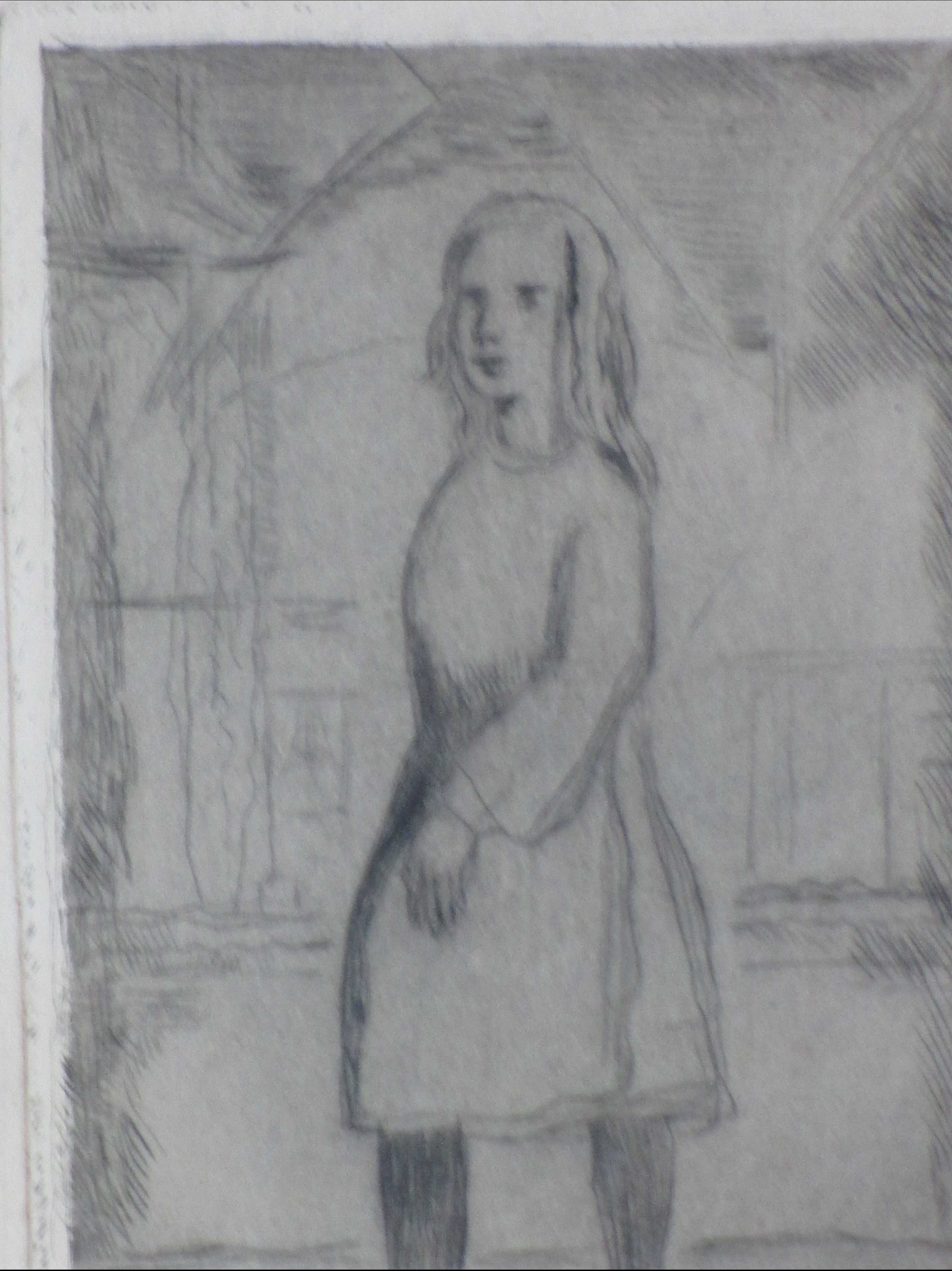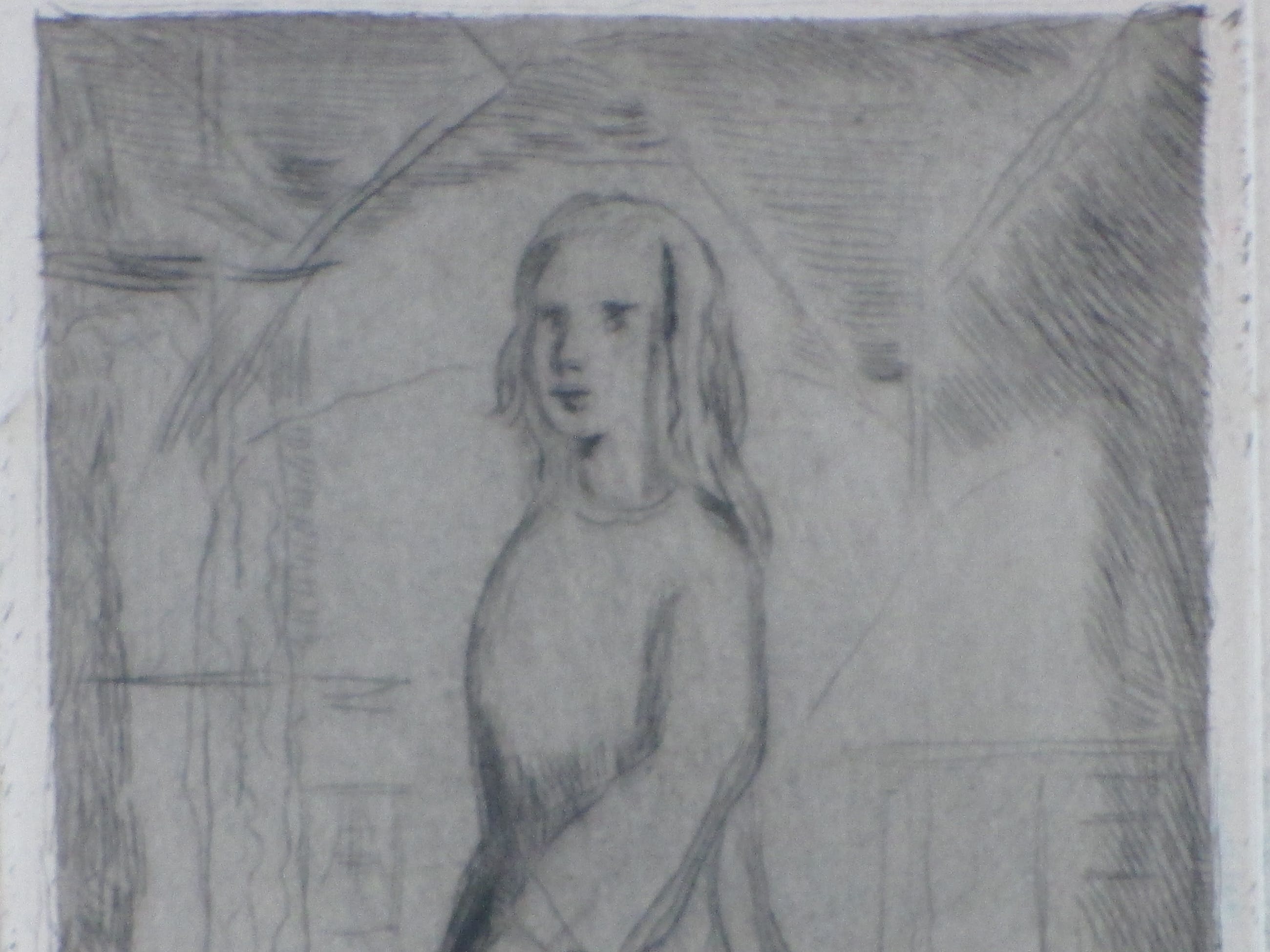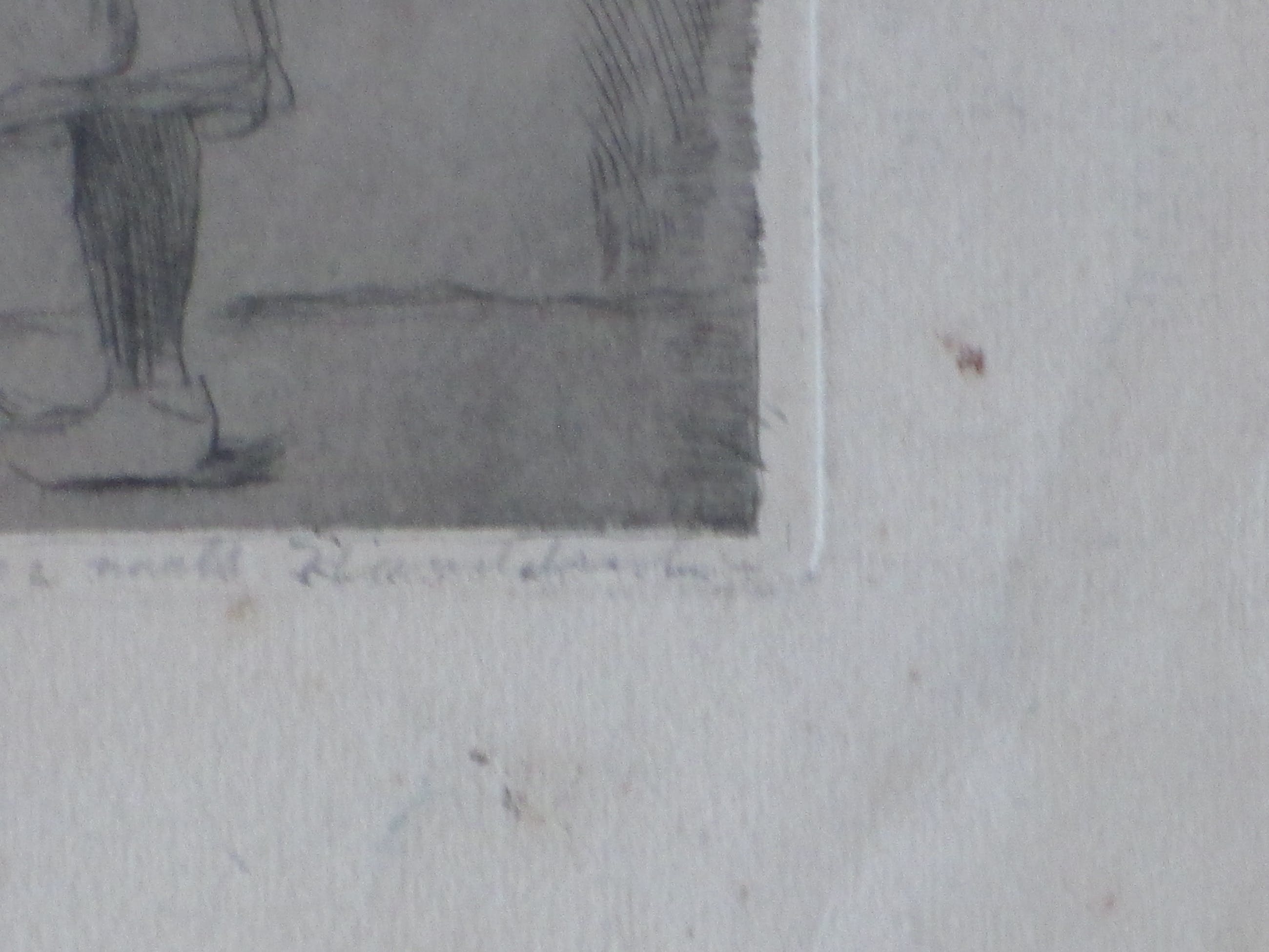 Ets door Gerard Sluijter. Voorstelling van een meisje op klompen. Losbladig, beeldmaat 13x10, bladmaat 28x20 Gesigneerd in potlood l.o.: 'Gerard Sluijter' Annotatie in potlood r.o.: 'droge naald handdruk' Authenticiteit volledig gegarandeerd
