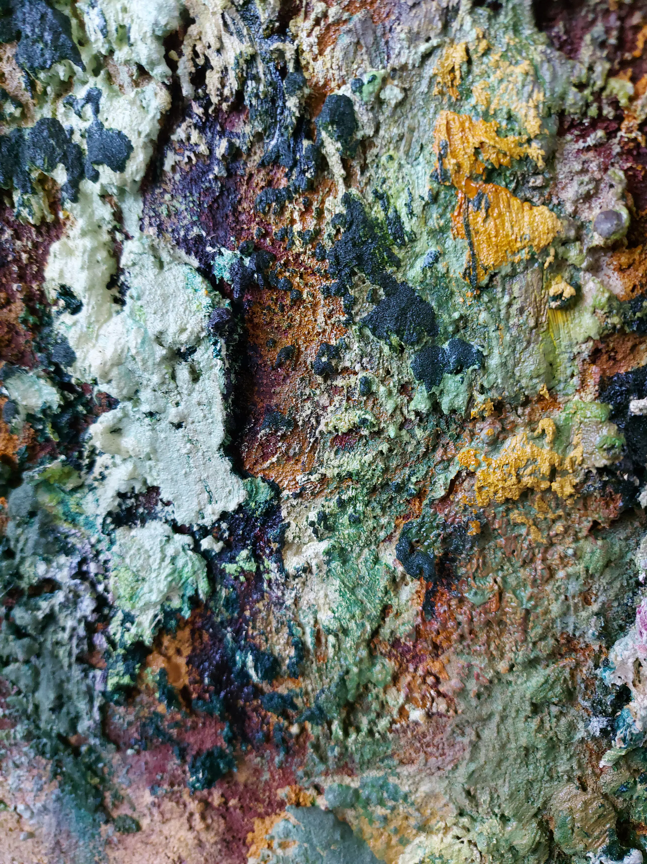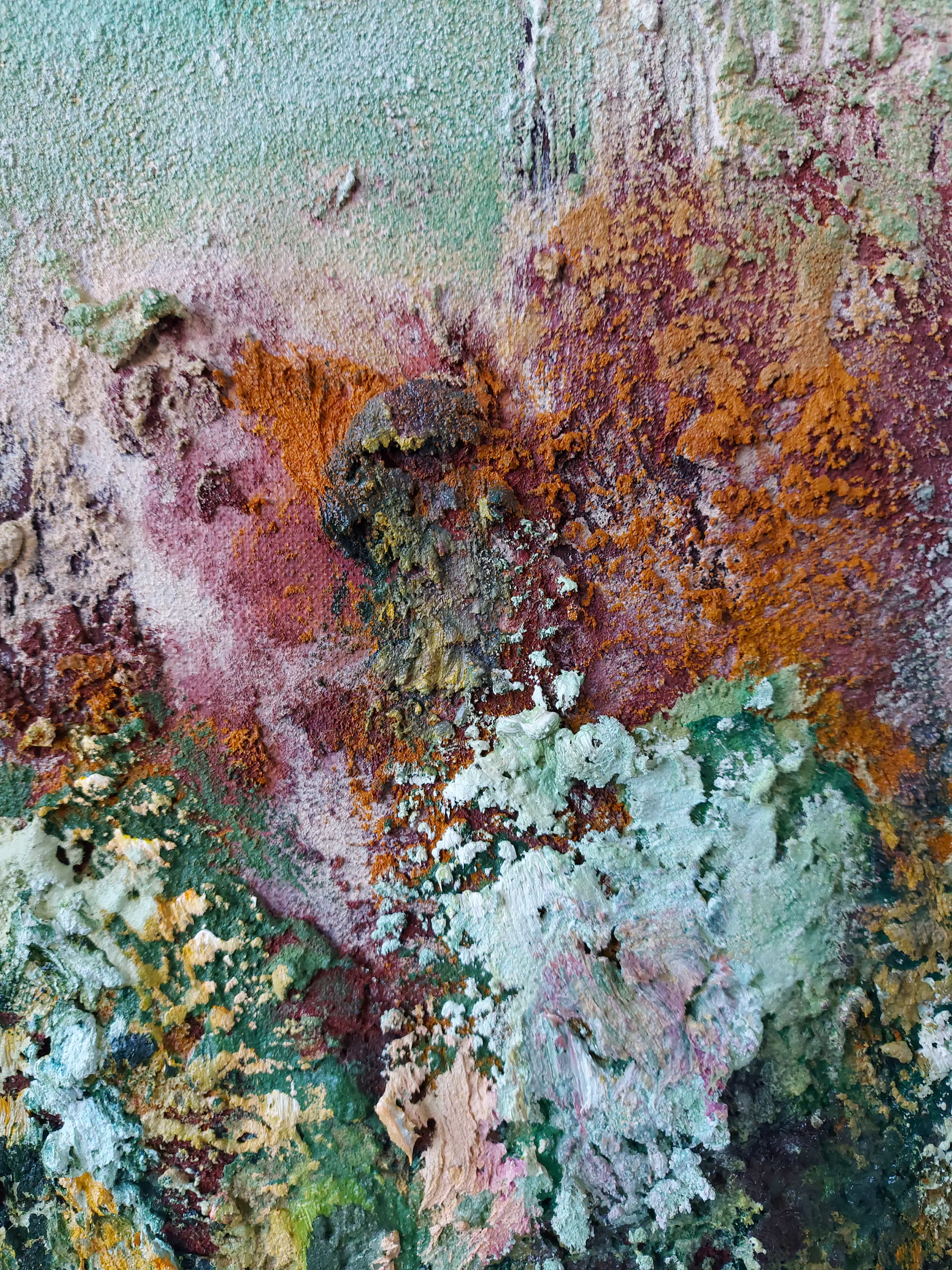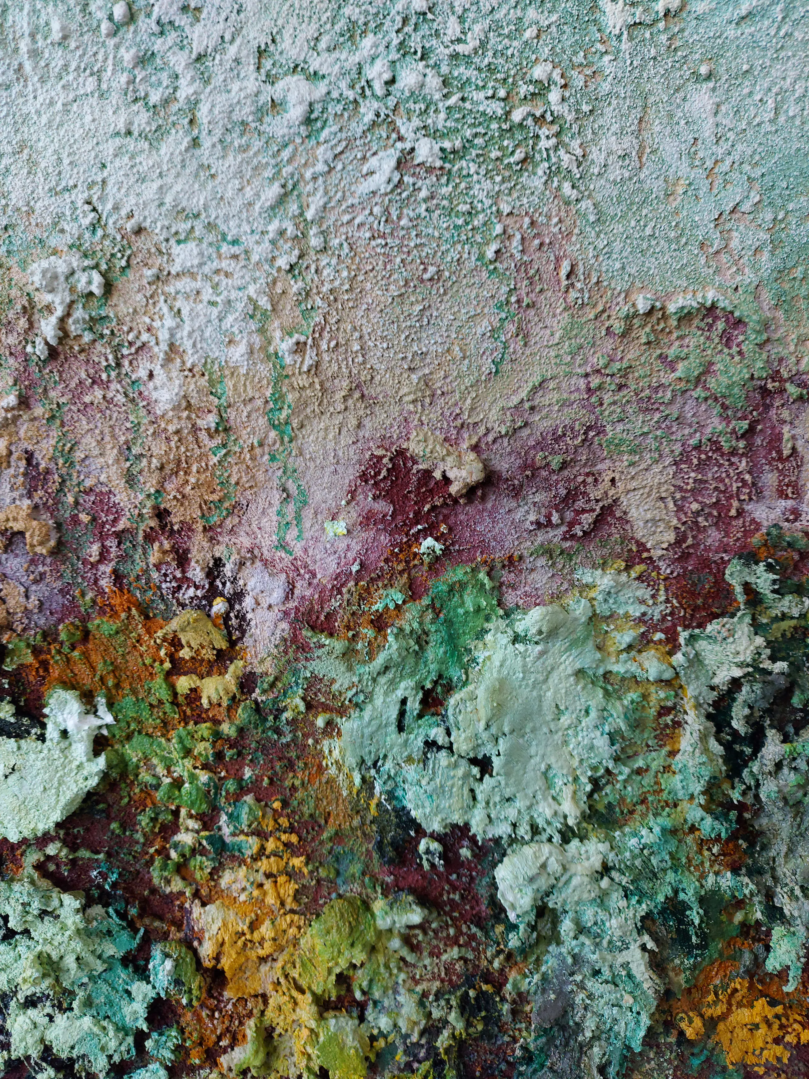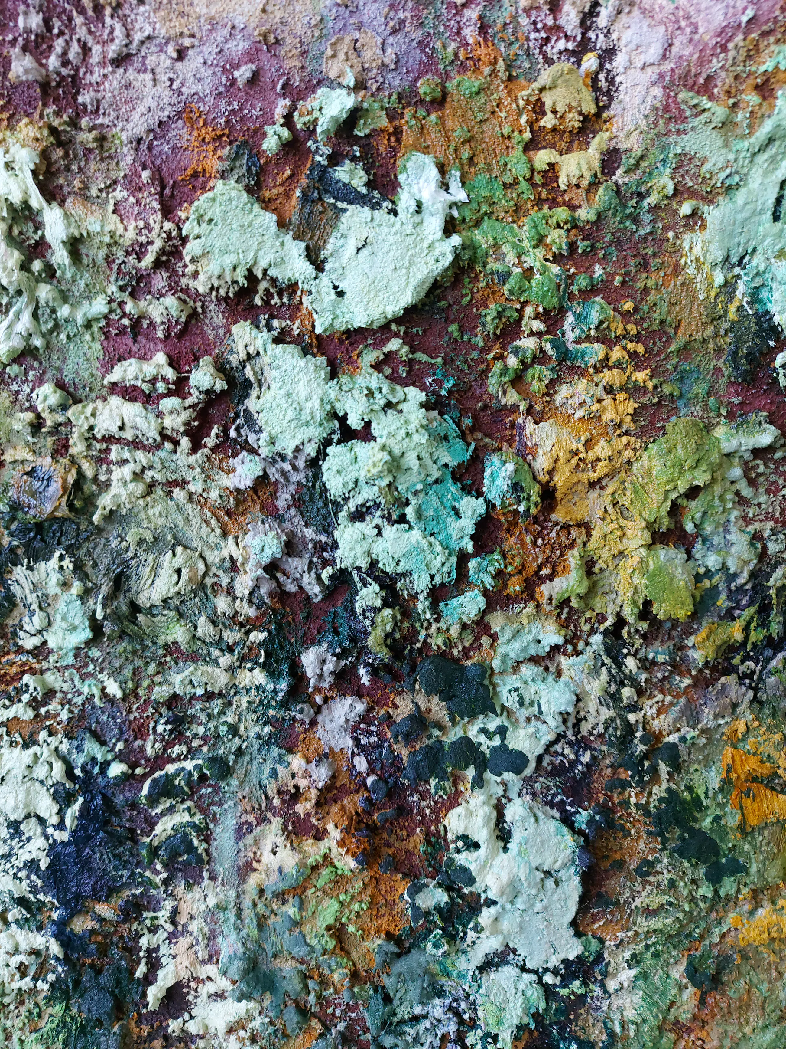 Olieverf met zand op doek. Door zijn verfbehandeling met vele vele lagen verf hebben veel van de schilderijen van Gerard Strik een bijna geboetseerde oppervlaktestructuur. Het zand dat hij aan zijn olieverf toevoegt, is niet alleen voor de structuur; het maakt zijn verf ‘aards’. Het geabstraheerde landschap wordt voelbaar.