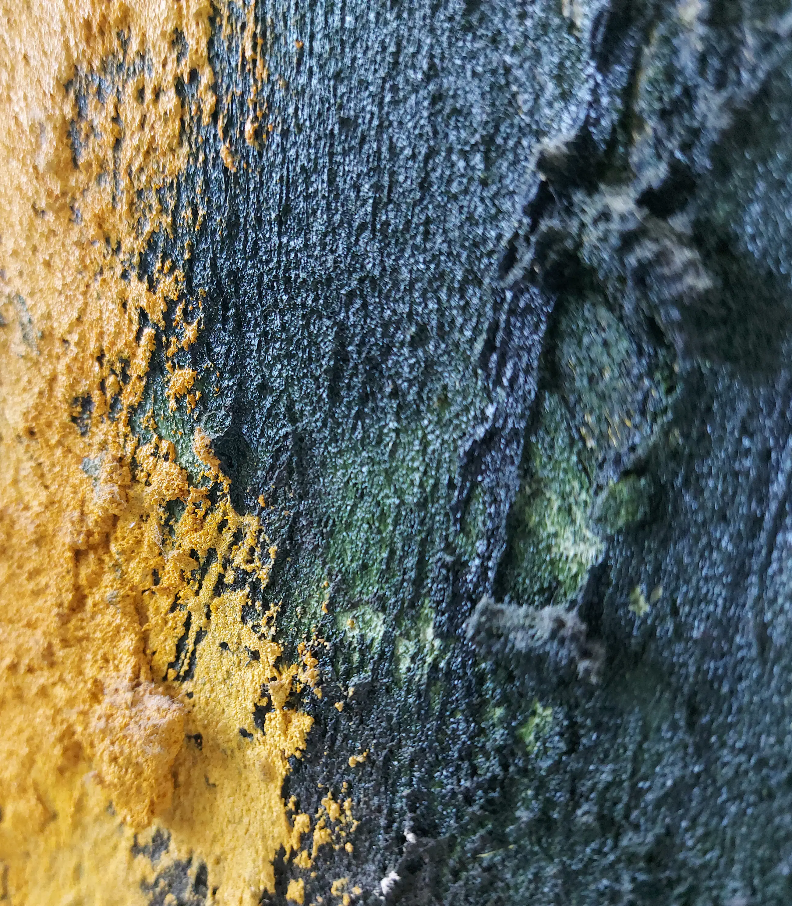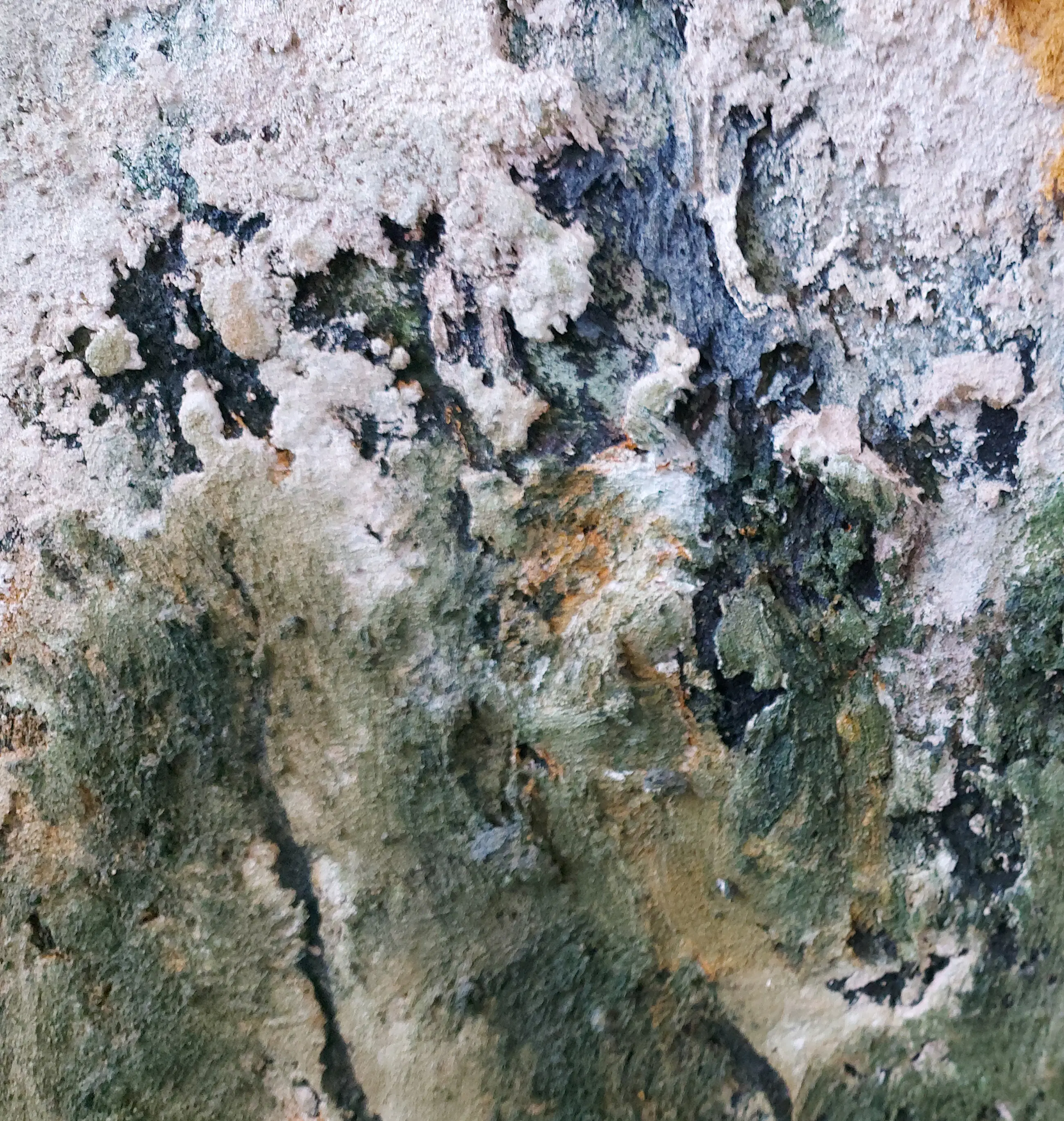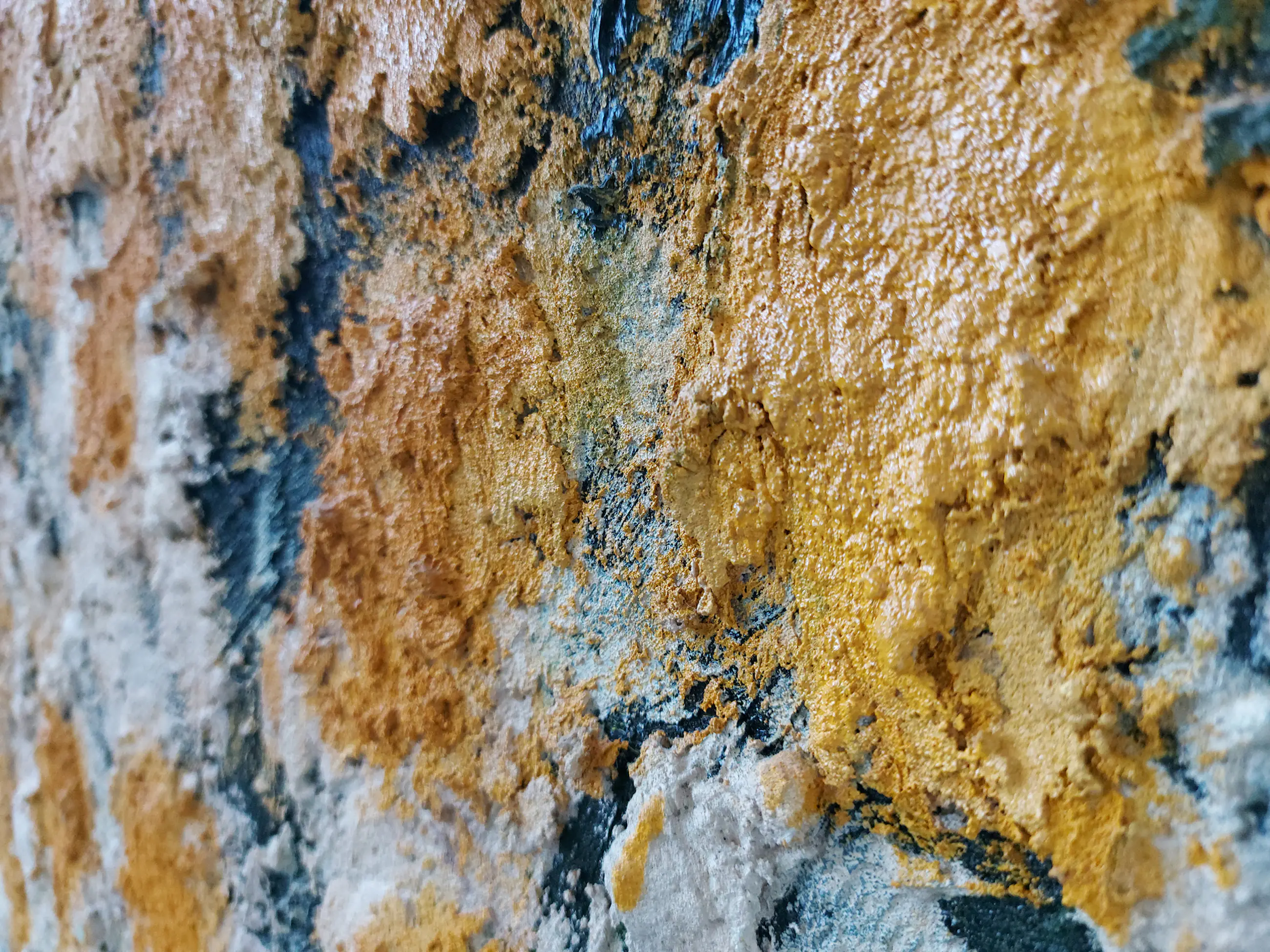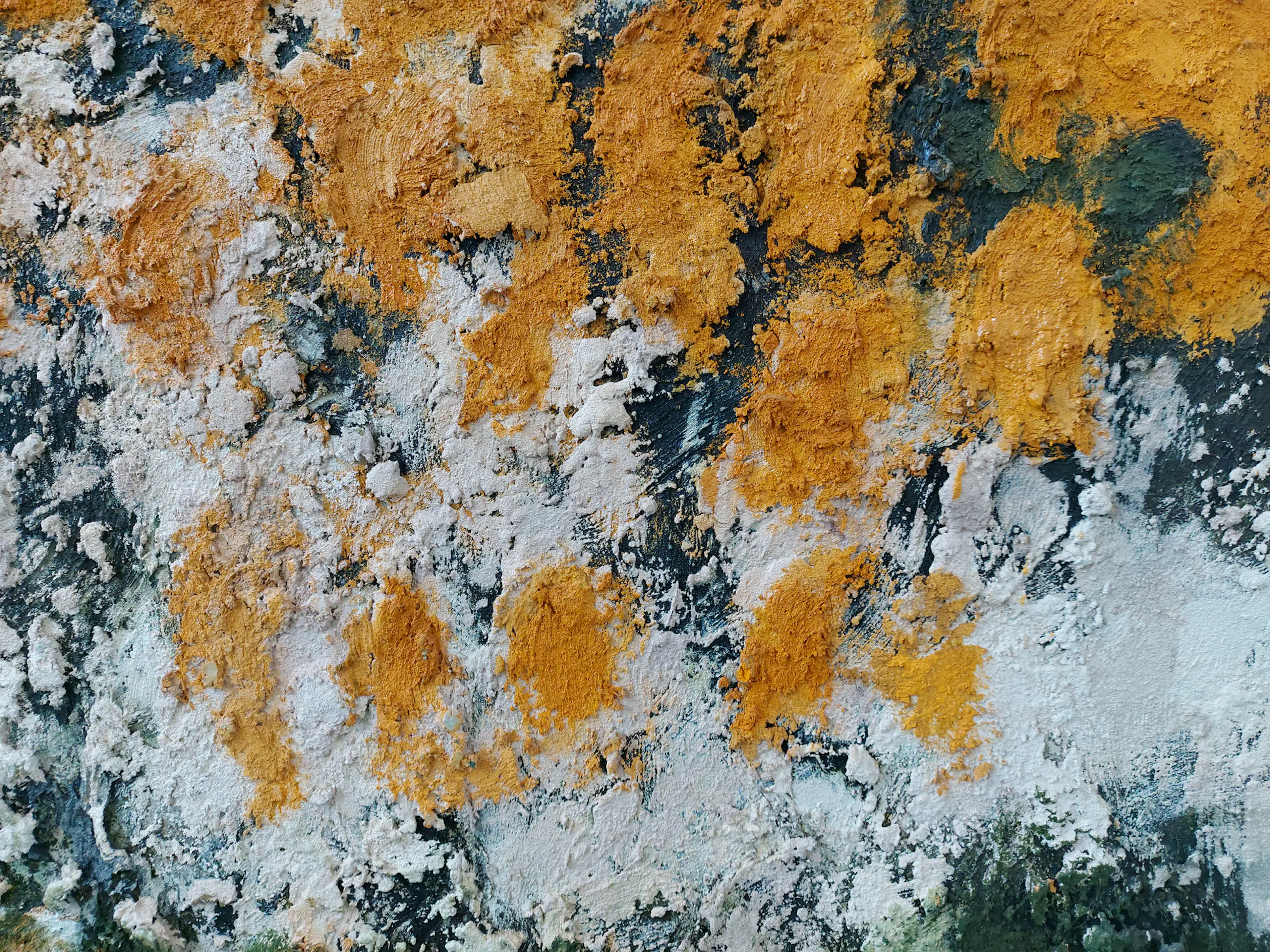 Olieverf met zand op doek. Door zijn verfbehandeling met vele vele lagen verf hebben veel van de schilderijen van Gerard Strik een bijna geboetseerde oppervlaktestructuur. Het zand dat hij aan zijn olieverf toevoegt, is niet alleen voor de structuur; het maakt zijn verf ‘aards’. Het geabstraheerde landschap wordt voelbaar.