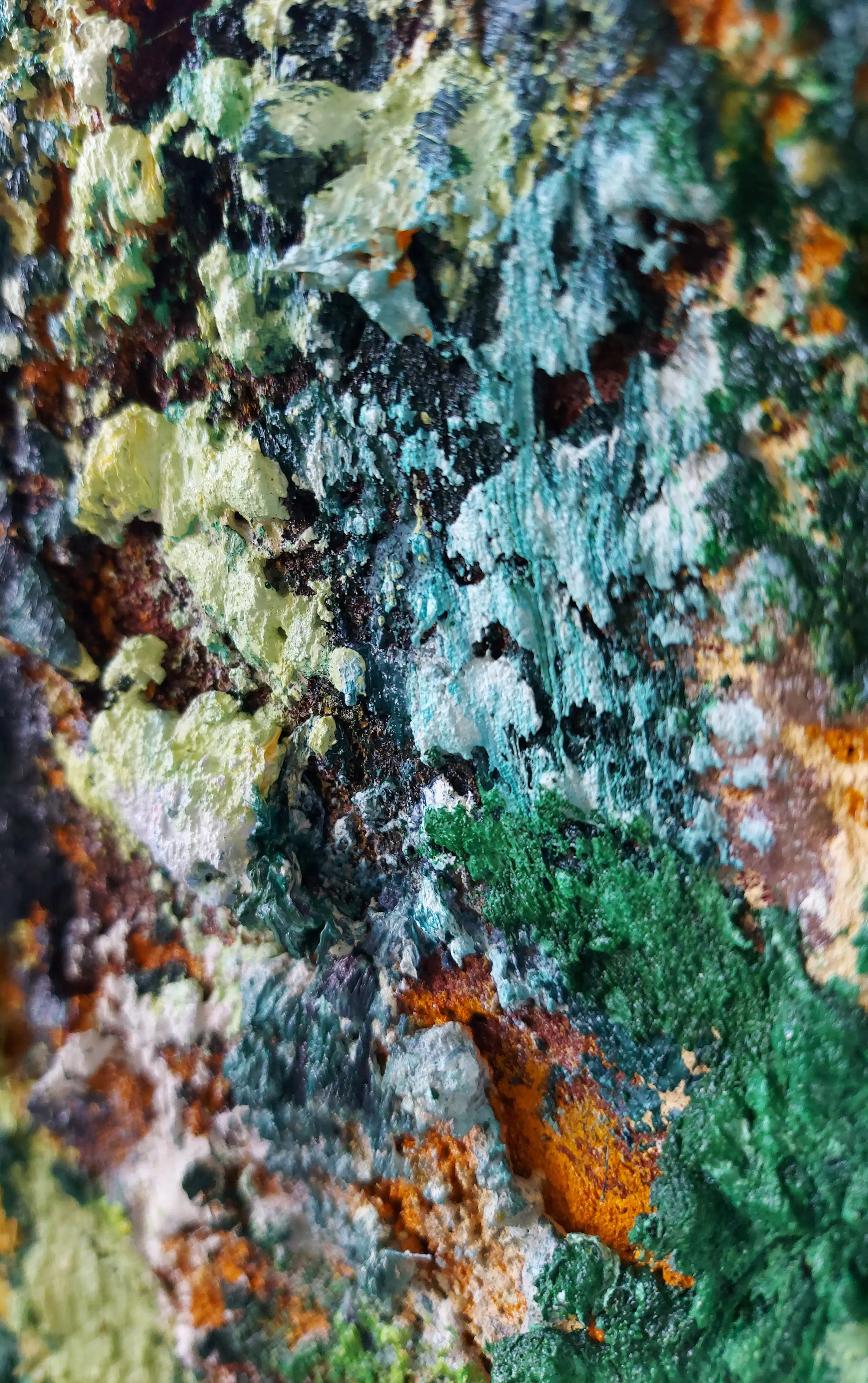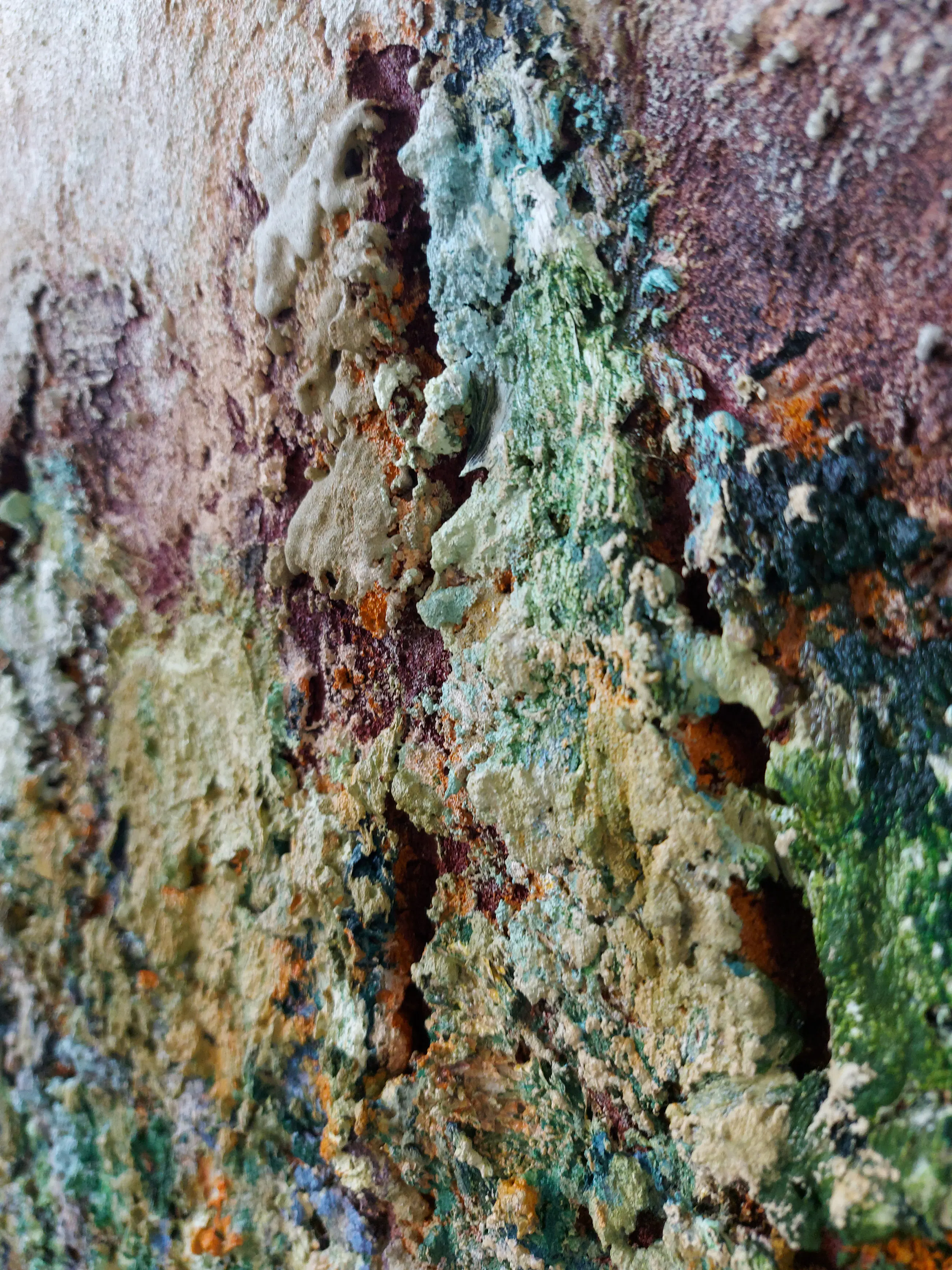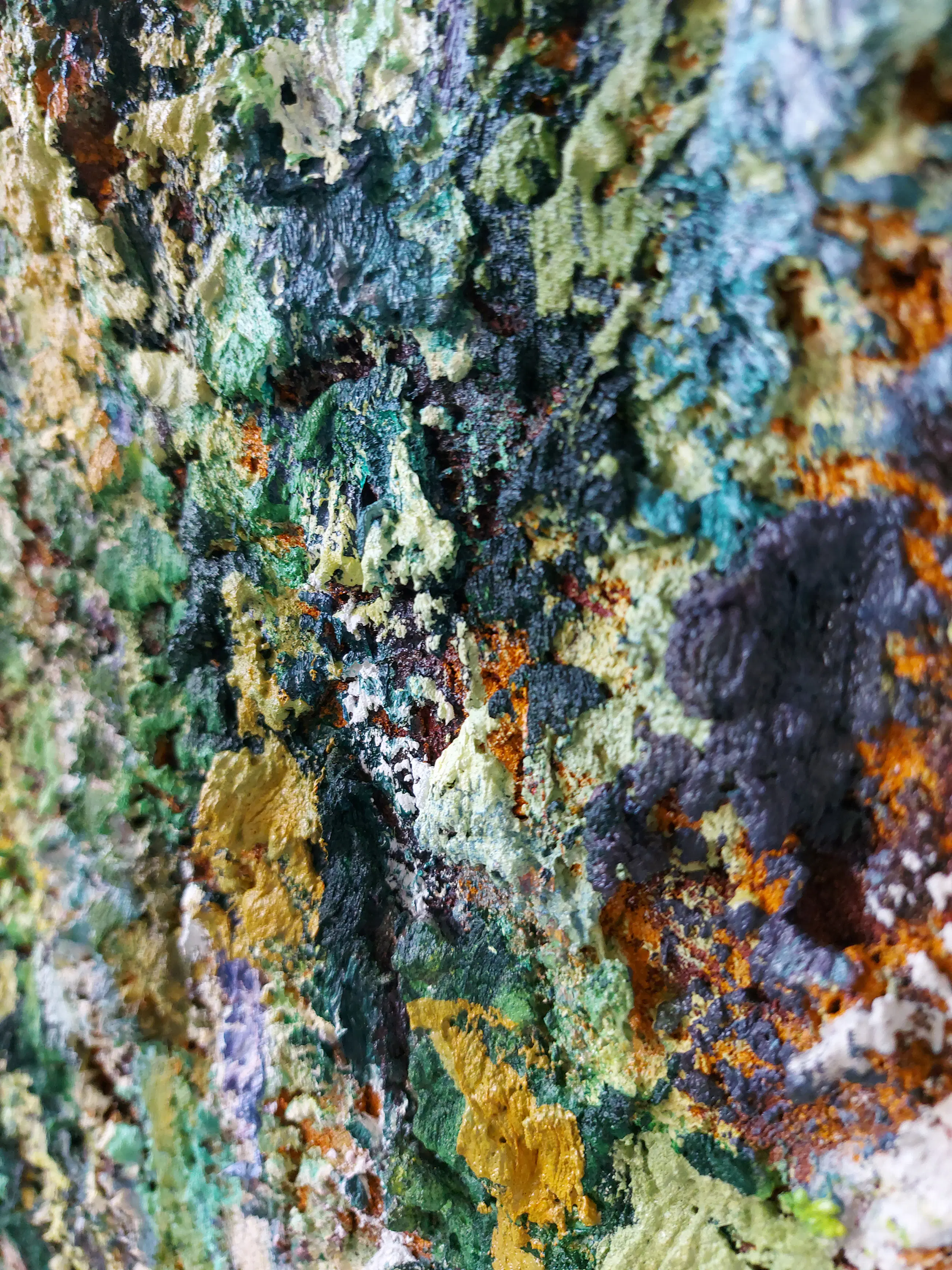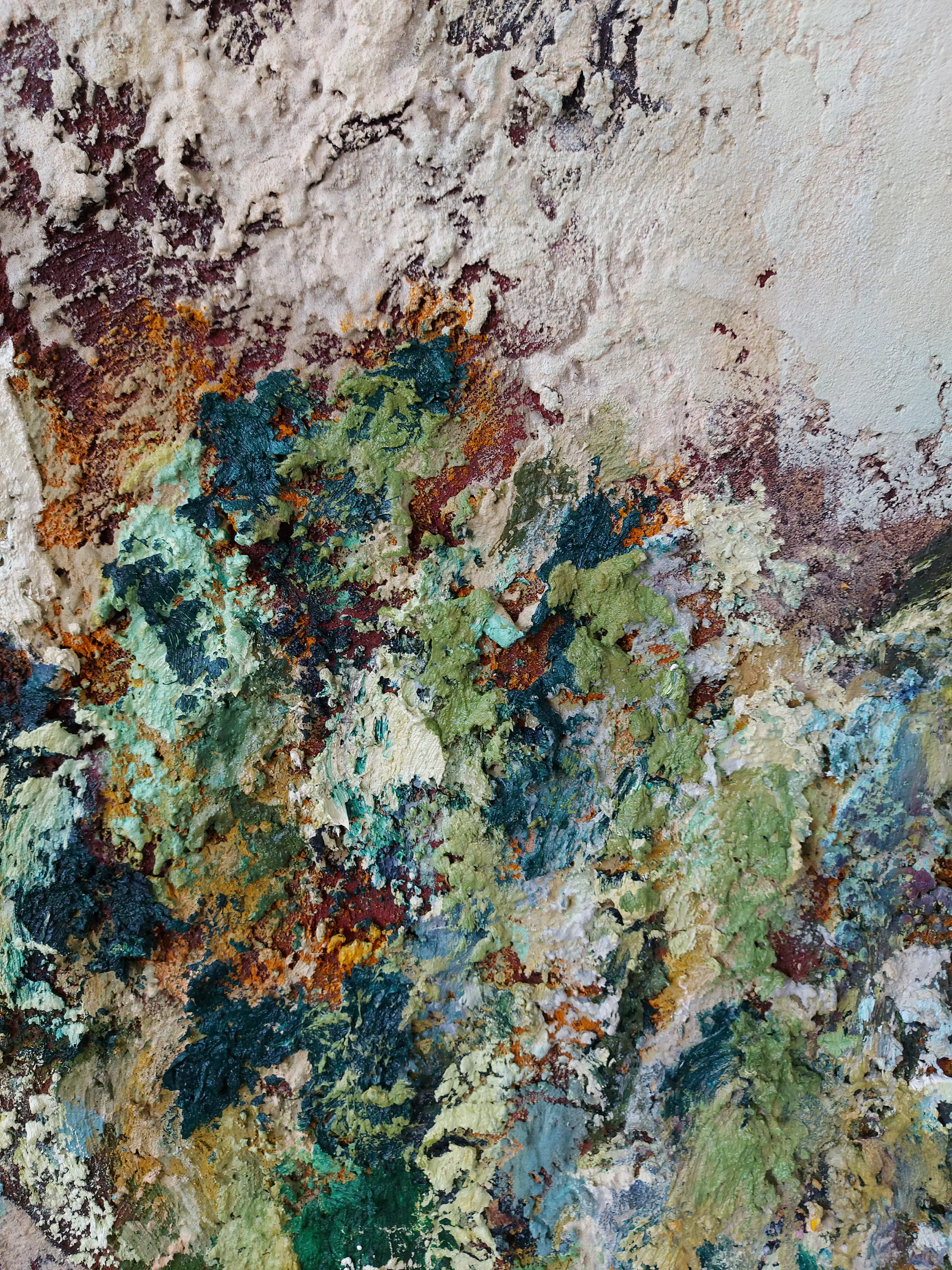 Olieverf met zand op doek. Door zijn verfbehandeling met vele vele lagen verf hebben veel van de schilderijen van Gerard Strik een bijna geboetseerde oppervlaktestructuur. Het zand dat hij aan zijn olieverf toevoegt, is niet alleen voor de structuur; het maakt zijn verf ‘aards’. Het geabstraheerde landschap wordt voelbaar.