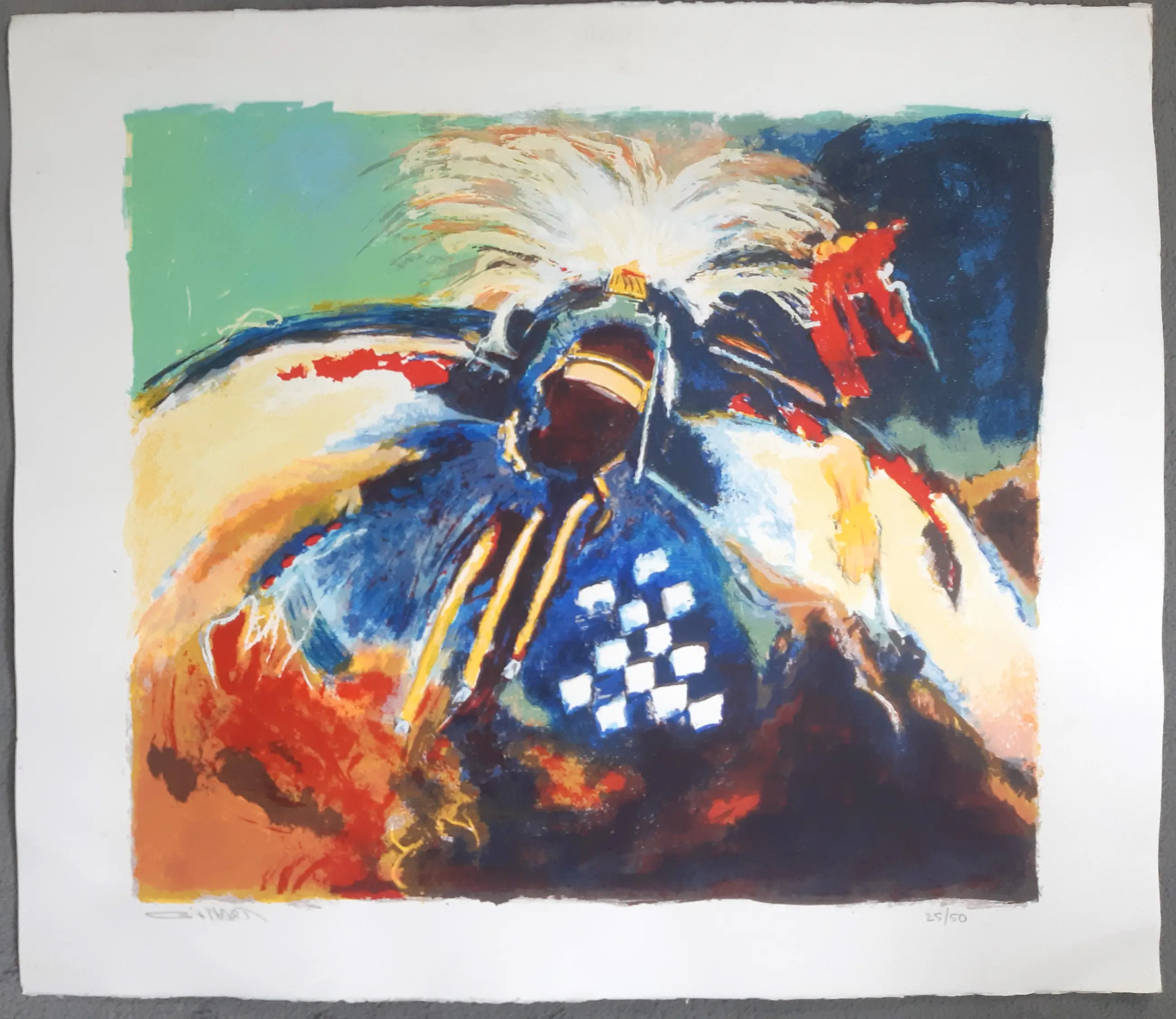 Kleurrijke zeefdruk van Gerrard 't Hart, met potlood door de maker gesigneerd en genummerd. De afbeelding meet 56 x 64 cm. Het werk verkeert in nieuwstaat.