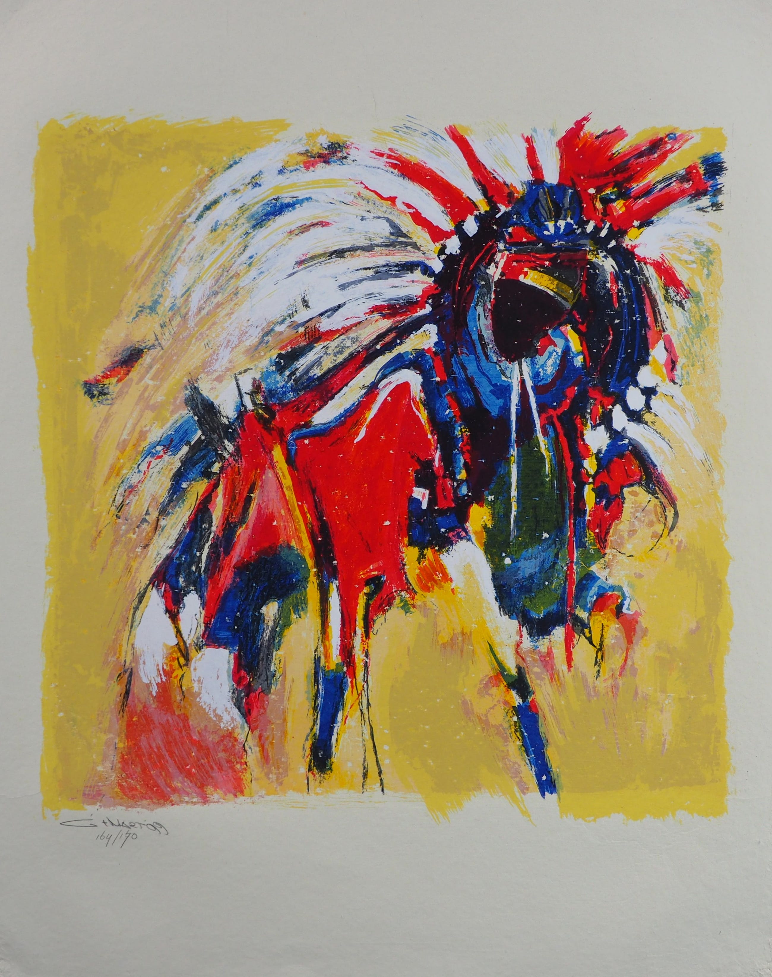 Fraaie kleurrijke zeefdruk op handgeschept papier.