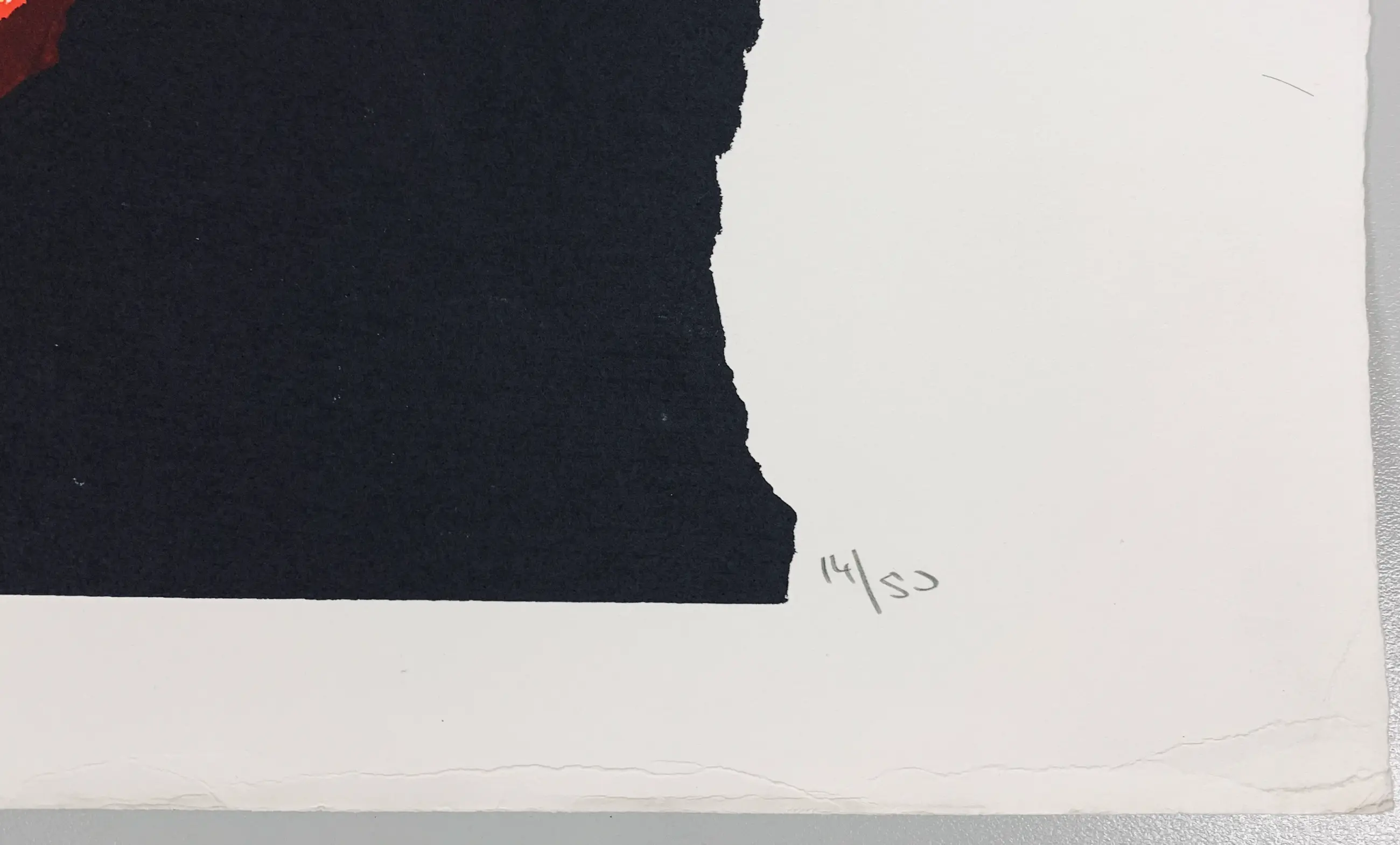 Conditie: uitstekend. Licht deukje onderkant vel, zie foto. Editie: 14 / 50. Afmeting: 76 x 56 cm. Wordt verzekerd verzonden in stevige kartonnen koker.