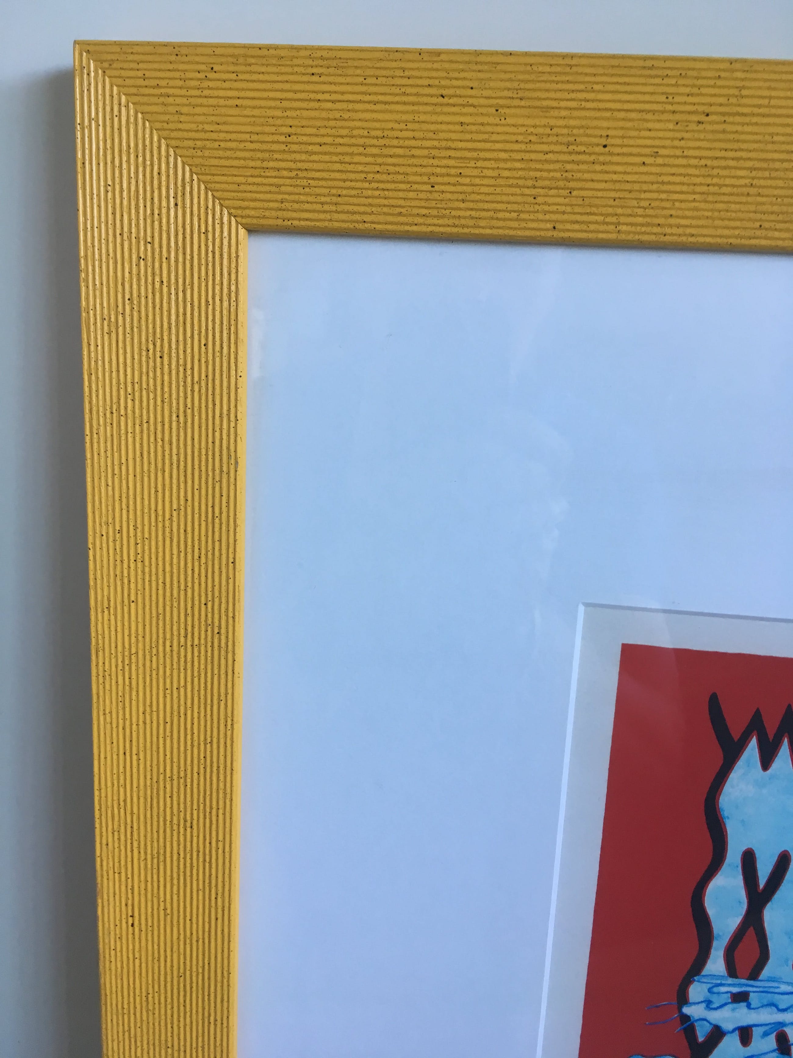 Zeefdruk van Gerard van den Dobbelsteen nr 39/80 met zeer fraaie geel houten lijst.