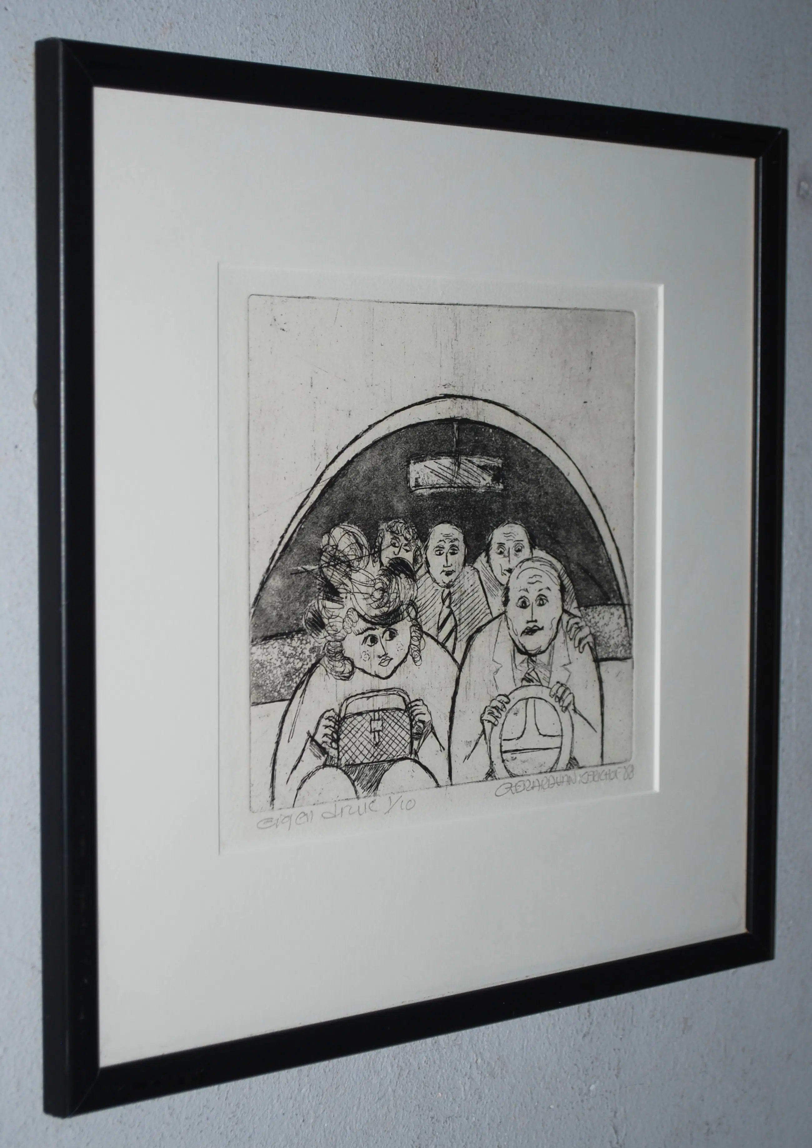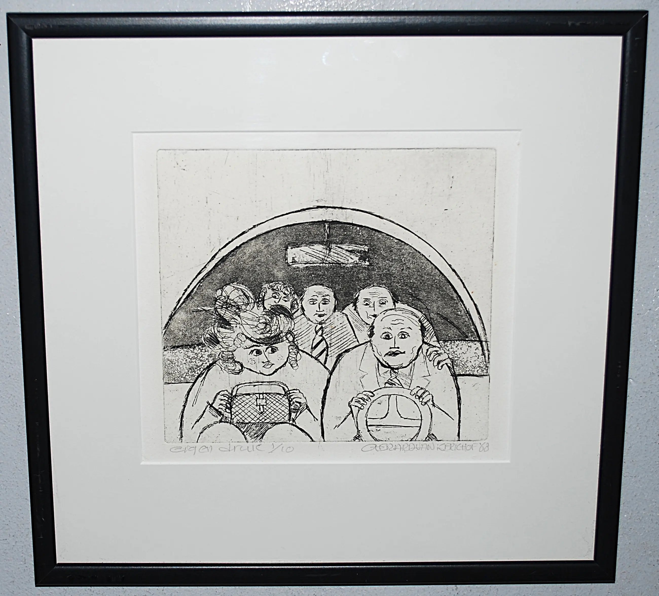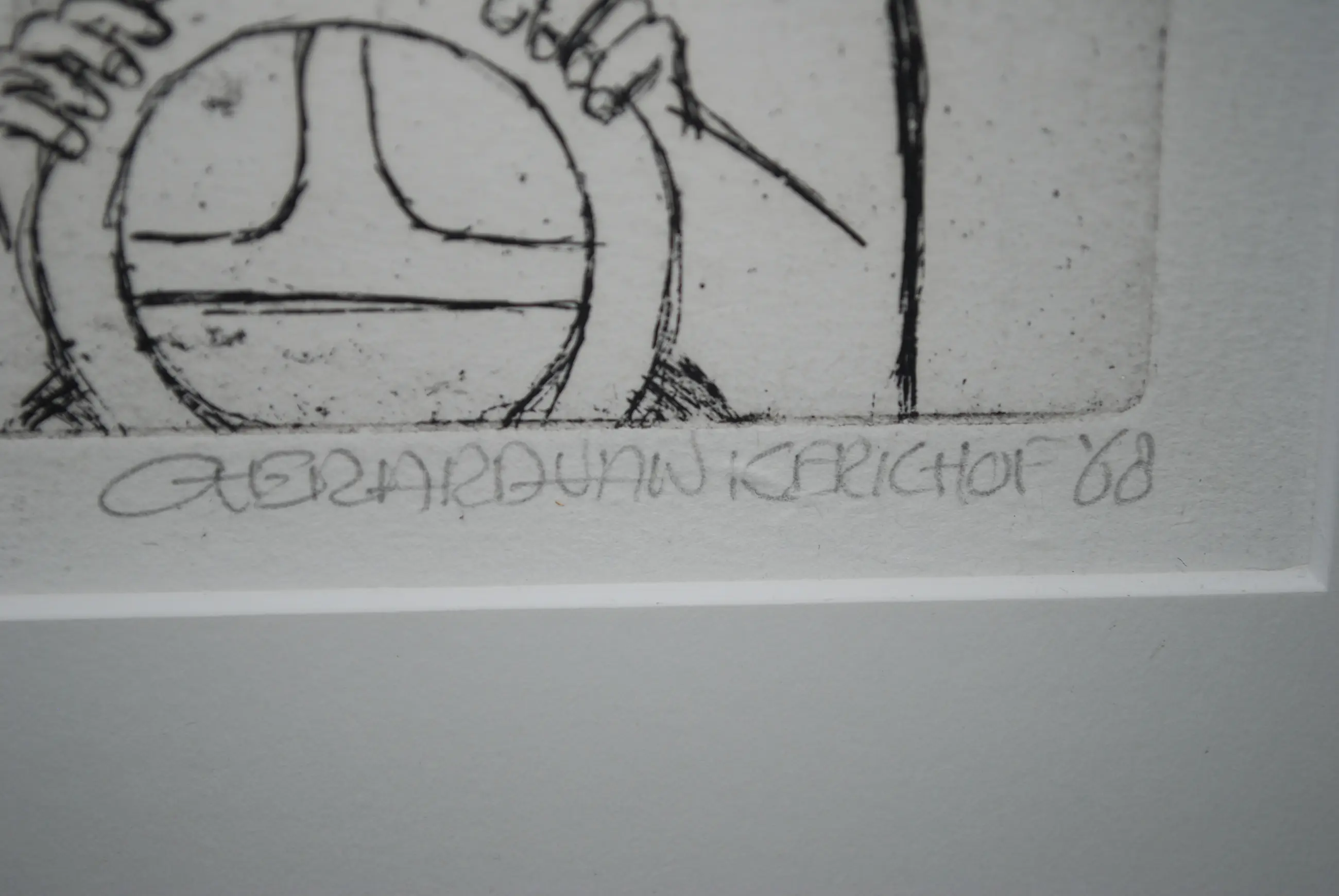 Gerard van Kerkhof - in de auto in de jaren 60 - ets - 1e afdruk van oplage 10