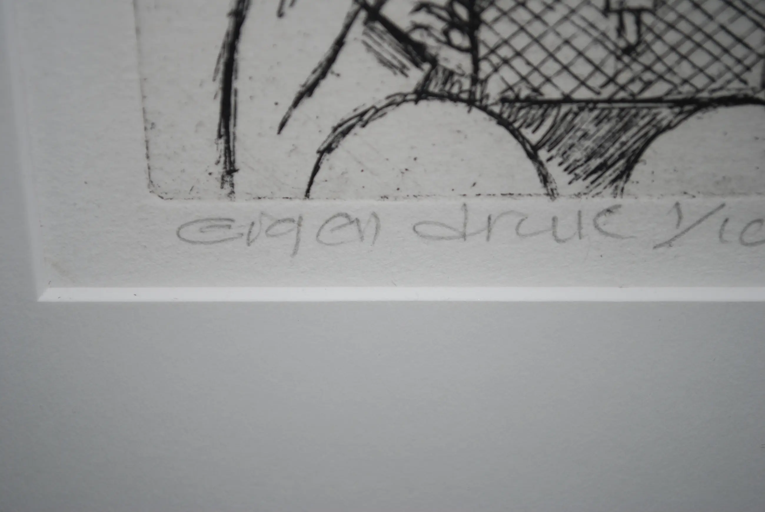 Eerste afdruk van een oplage van slechts 10. Achter passepartout en glas, in een fraaie zwarte houten lijst. Het geheel verkeert in uitstekende, heldere staat. (De lijst heeft wat lichte krasjes)